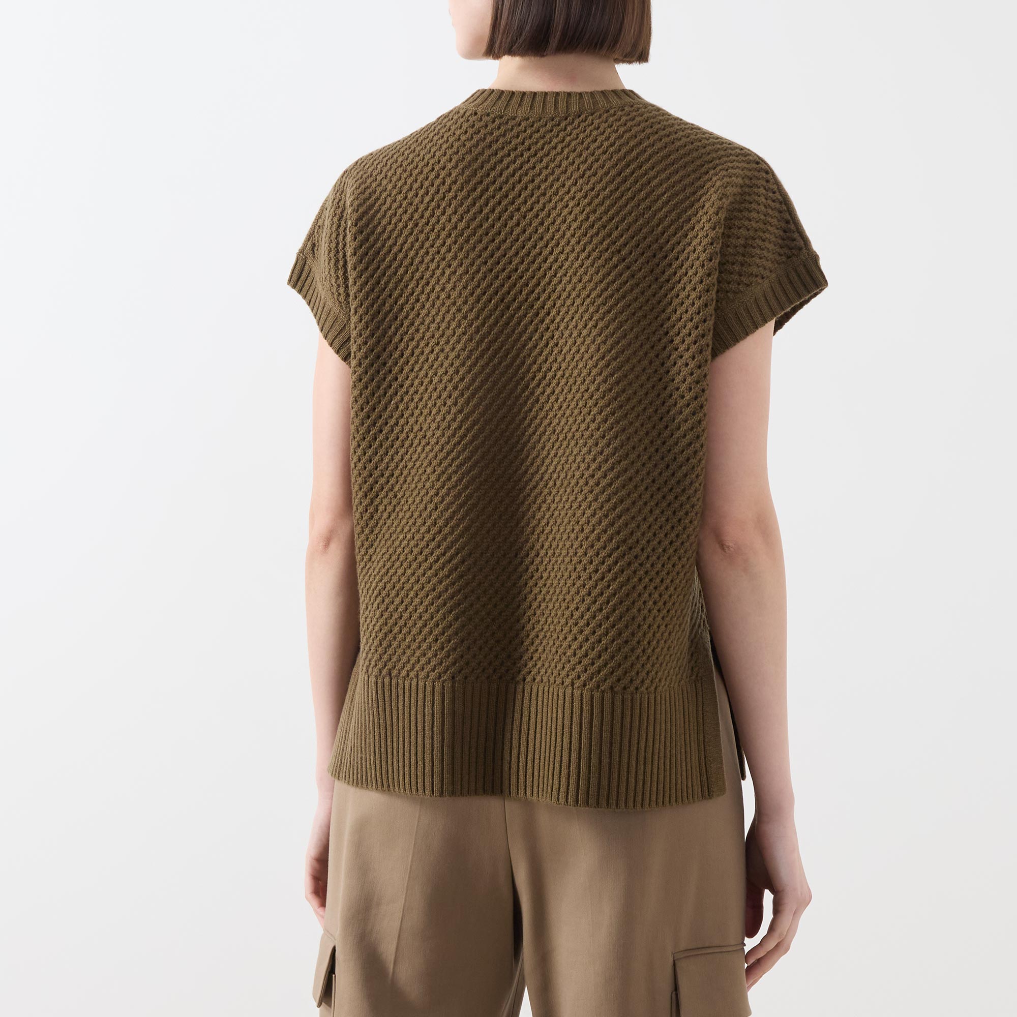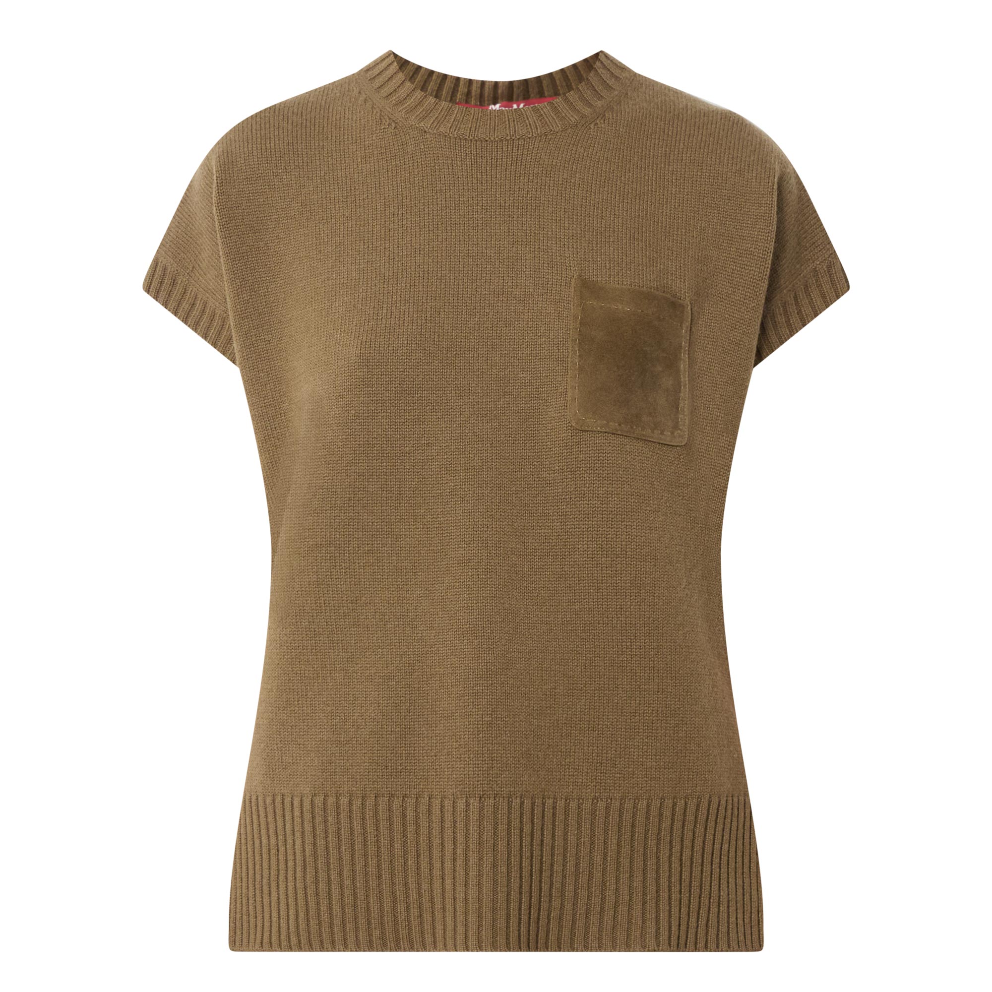 • Crew neckline, short sleeves, straight hemline, ribbed trims, knit structure, chest pocket, textured back panel