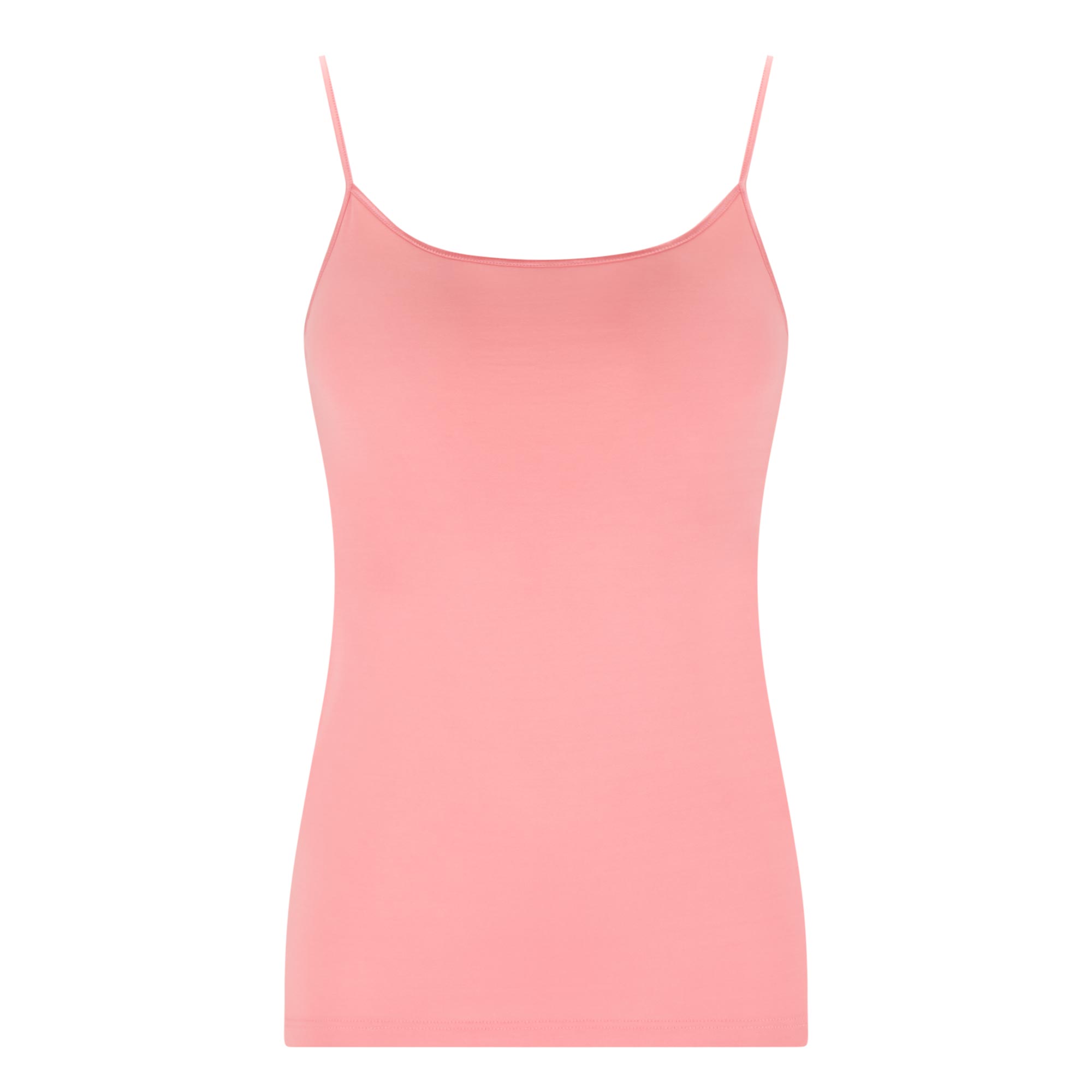 • Narrow adjustable straps, scoop neckline, straight hemline, solid style
