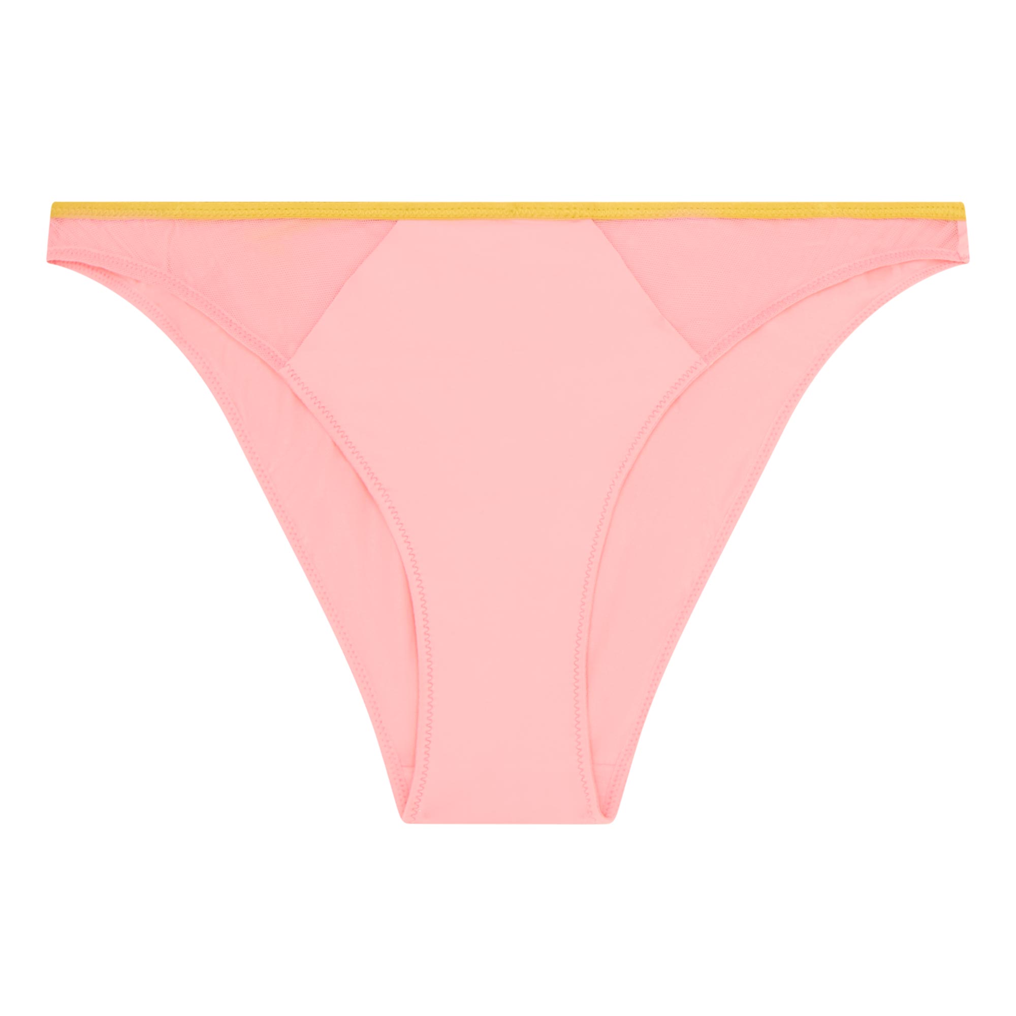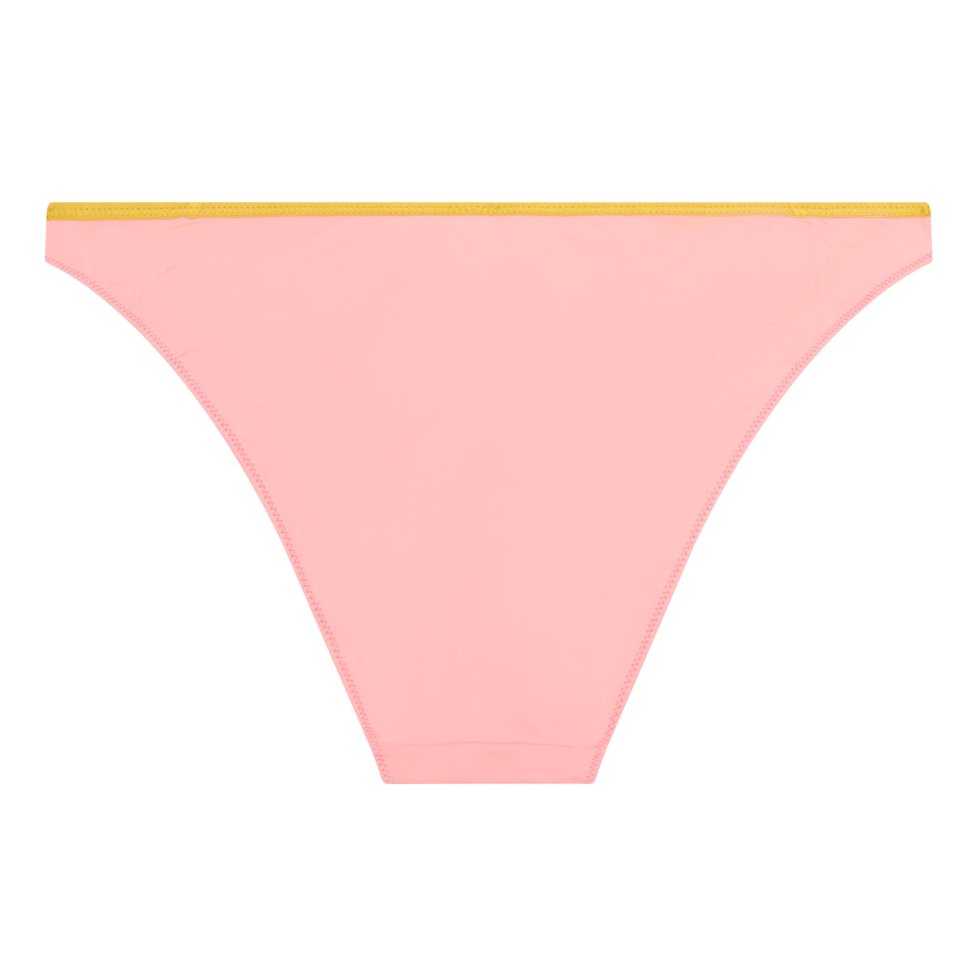 - Contrasting waistband, flat edges for invisible fit, breathable, stretch-fused fabric, cheeky coverage, almost sheer finish