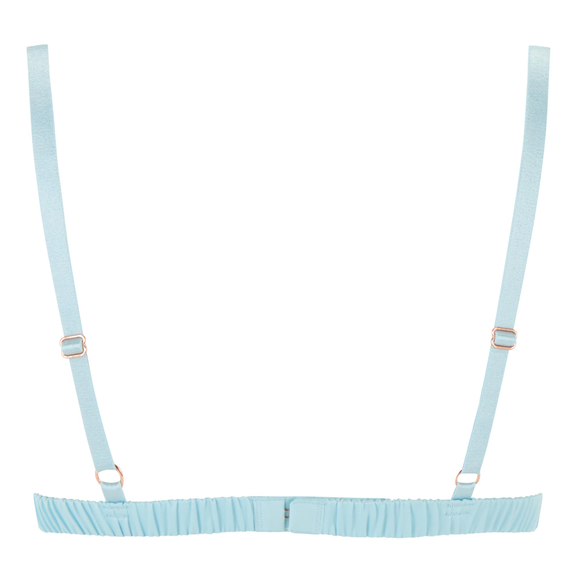 - Lightweight triangle cup, fine adjustable straps, elastic under bust band, shiny and silky sheen design, scallop trim detailing, rear hook-and-eye closure