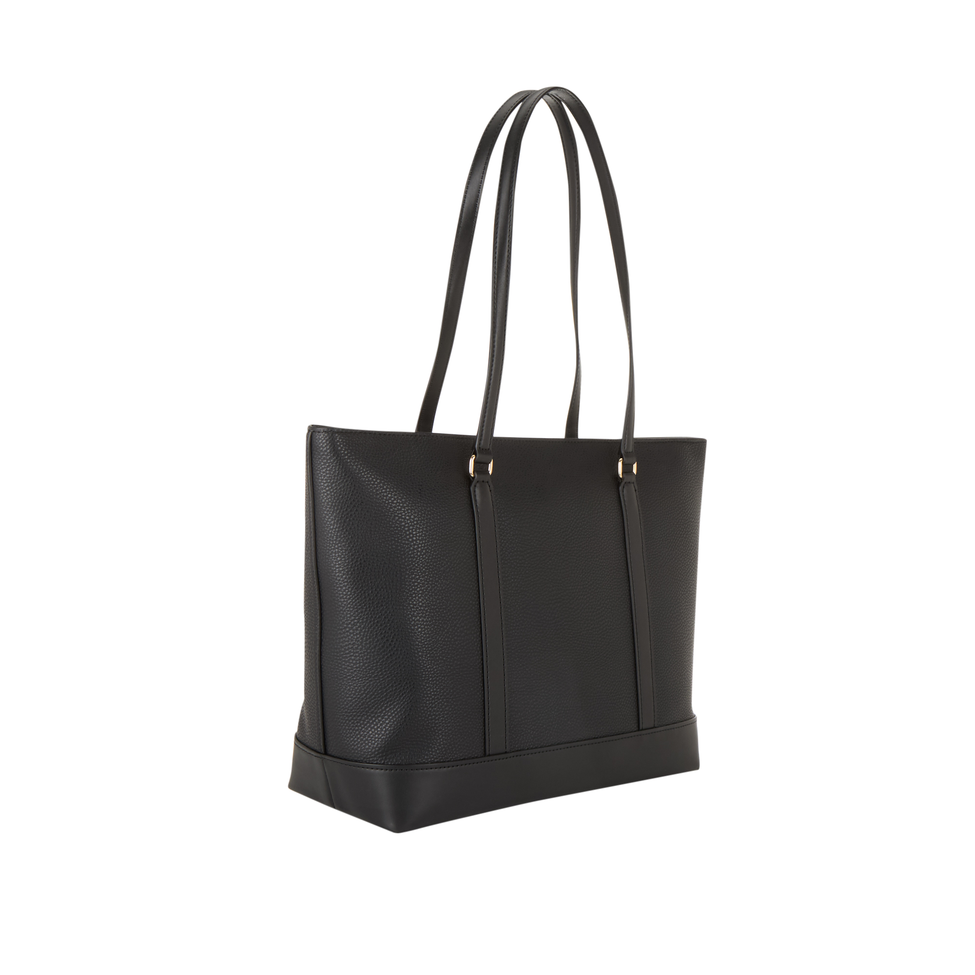 • Top carry handles, zip fastening, gold-tone hardware, monogram keyring, boxy silhouette, logo lettering