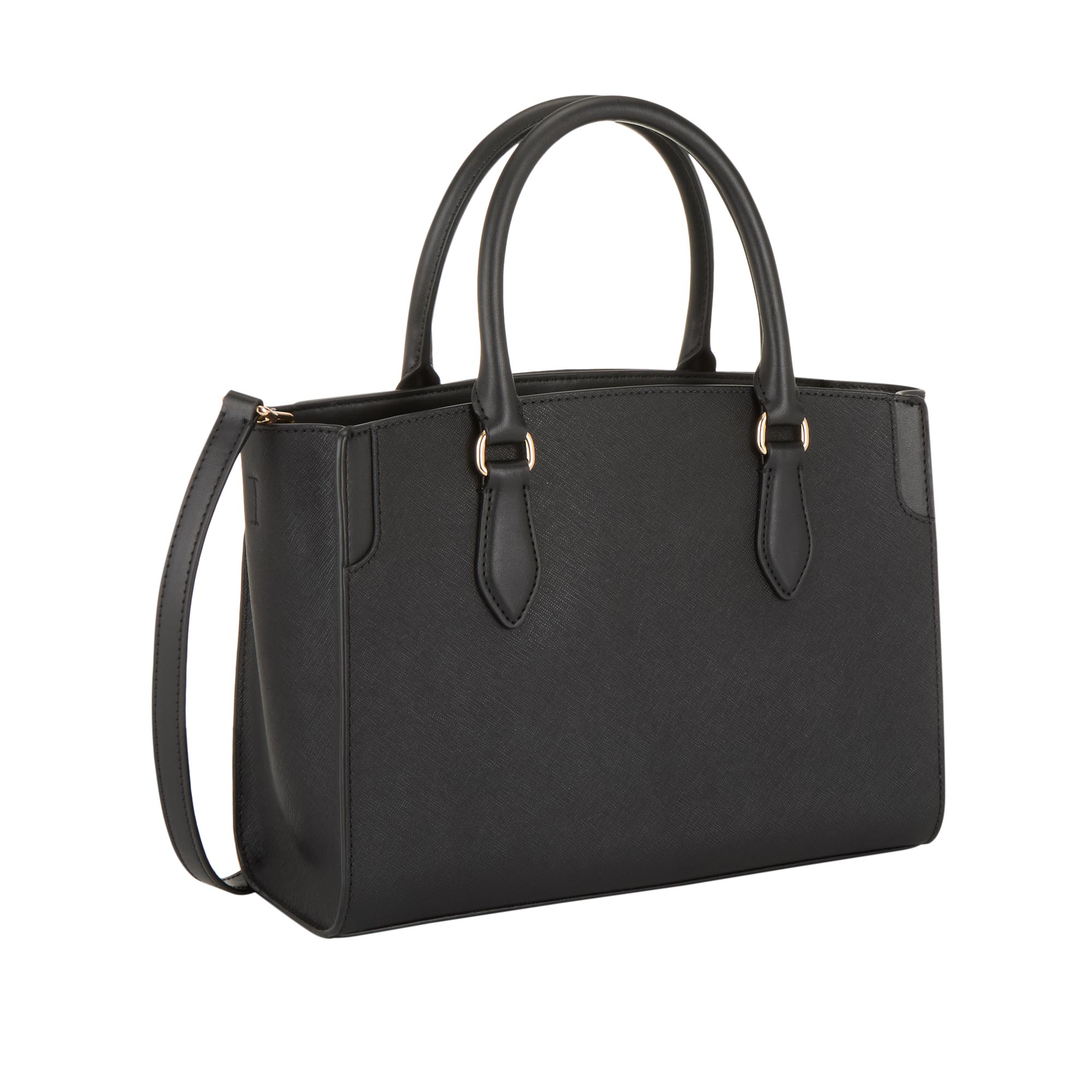 - Top handles, top zip fastening, detachable and adjustable strap, removable logo tag, logo lettering, gold-tone hardware, structured silhouette, textured finish
