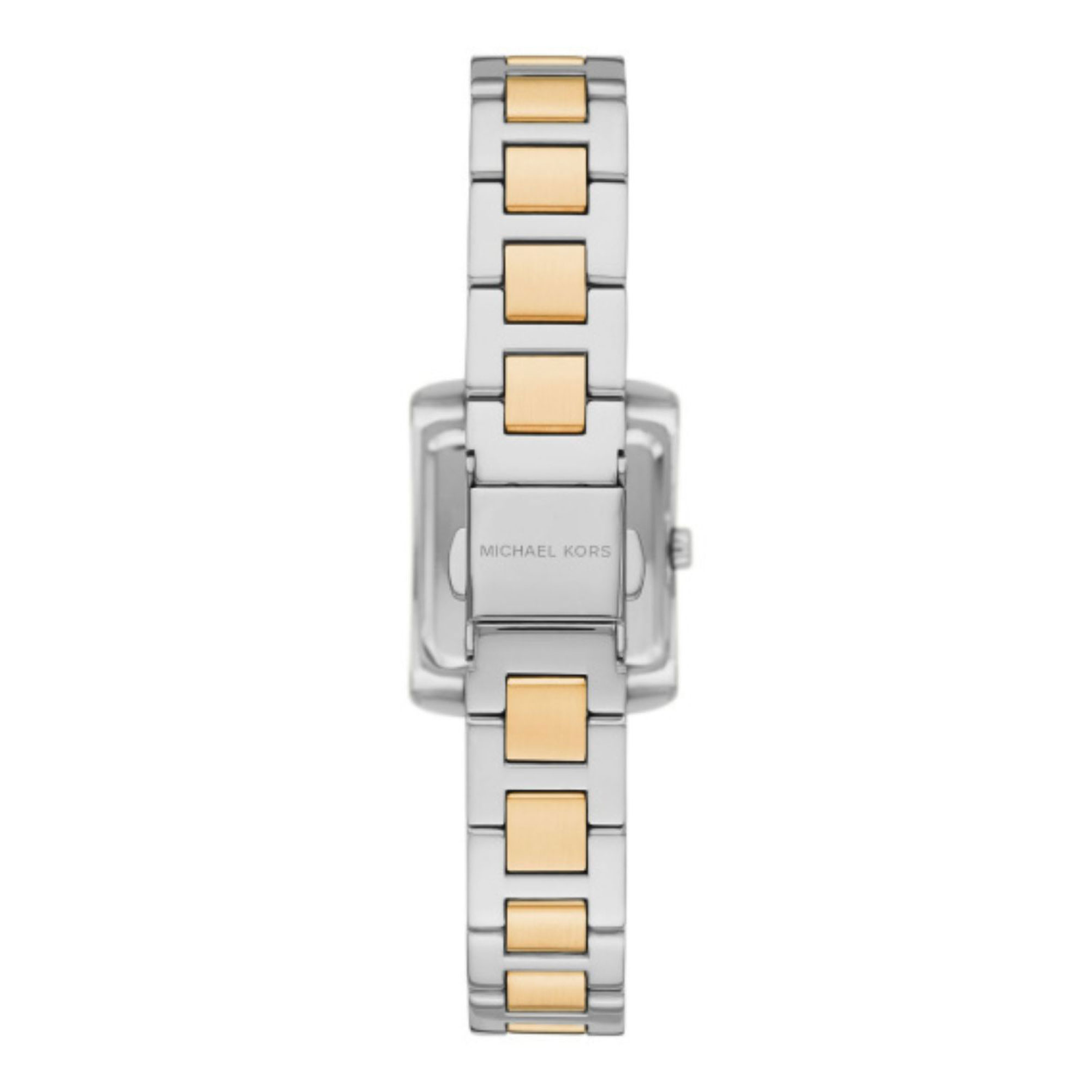 The MK4882 watch is part of the Emery collection from Michael Kors, designed to deliver timeless elegance with a modern, jewellery-inspired aesthetic. This petite watch features a rectangular case crafted from stainless steel with polished gold-tone accents, giving it a versatile two-tone finish. The mother-of-pearl dial is adorned with Roman numeral indexes, offering a classic touch. Along the sides of the case, understated pavé-set crystals illuminate the rectangular face, adding subtle sparkle without overwhelming the design. The bevelled stainless-steel strap, also finished in two-tone, enhances the watch’s polished look while ensuring durability and comfort. Powered by a quartz movement, it provides reliable precision for everyday wear. A scratch-resistant mineral crystal protects the dial, while its 50-meter water resistance rating makes it practical for daily use.