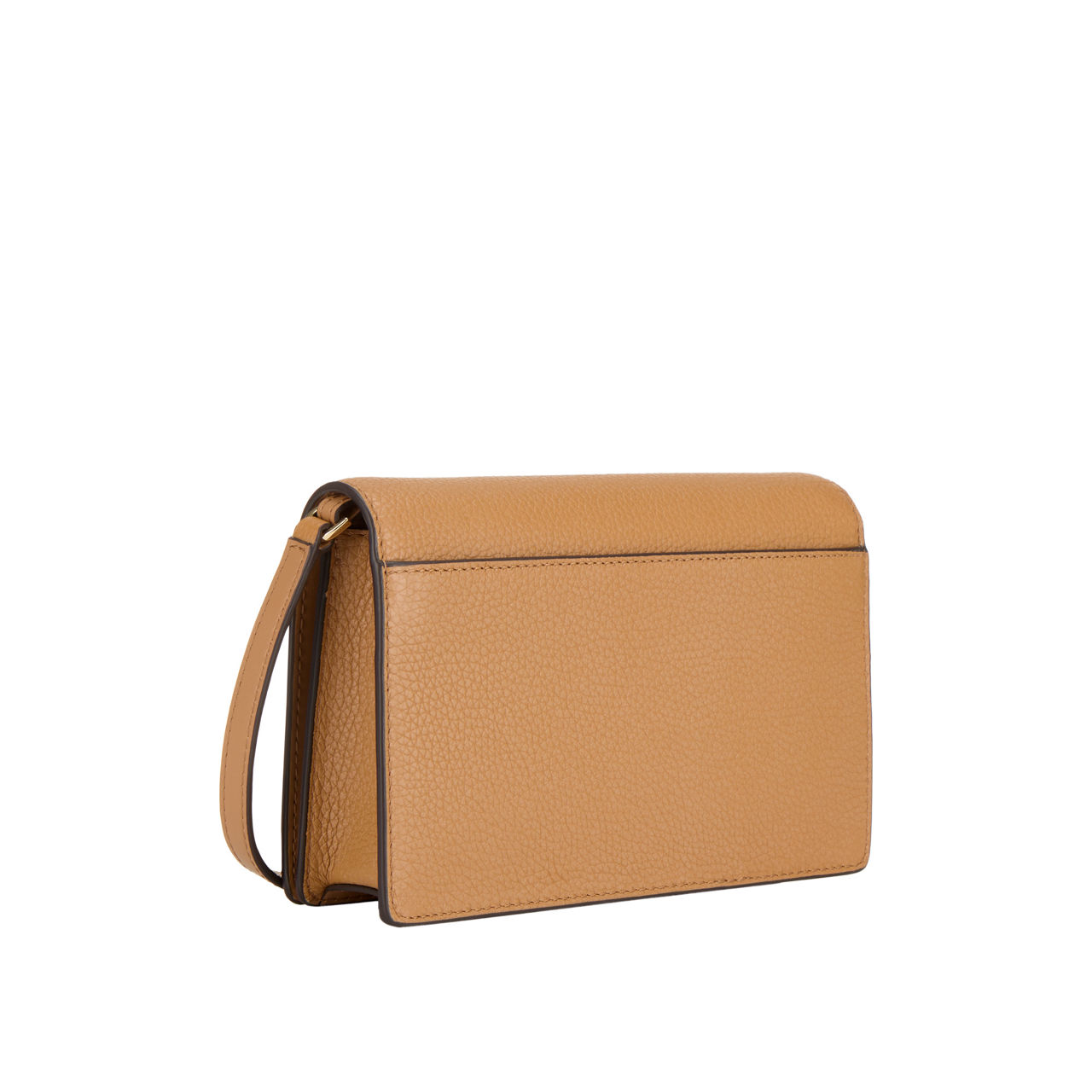 - Interior zipped pocket, flap closure, magnetic fastening, pebbled finish, logo hardware, crossbody strap
