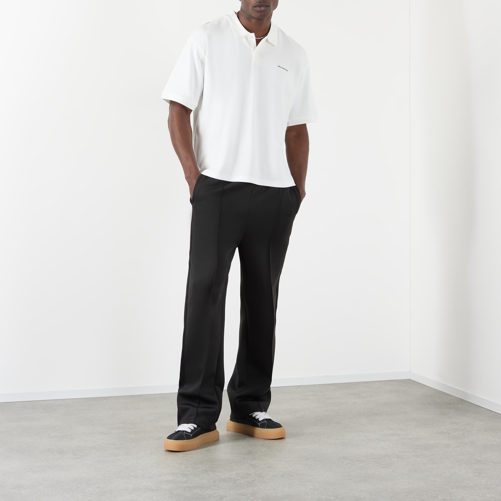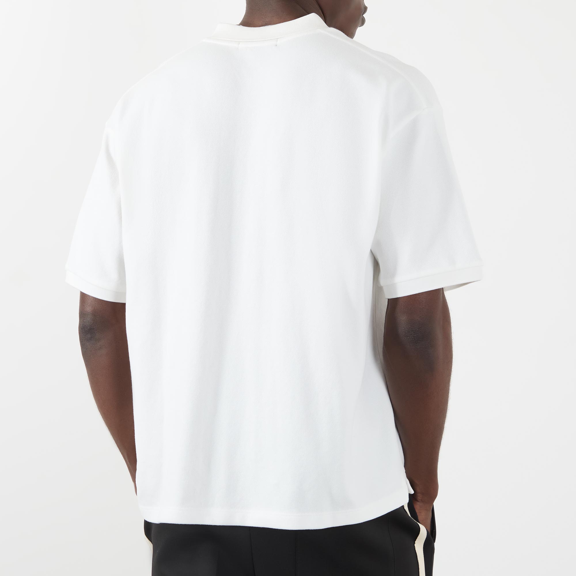 - Short sleeves, polo collar, logo detail, straight hemline, button fastenings