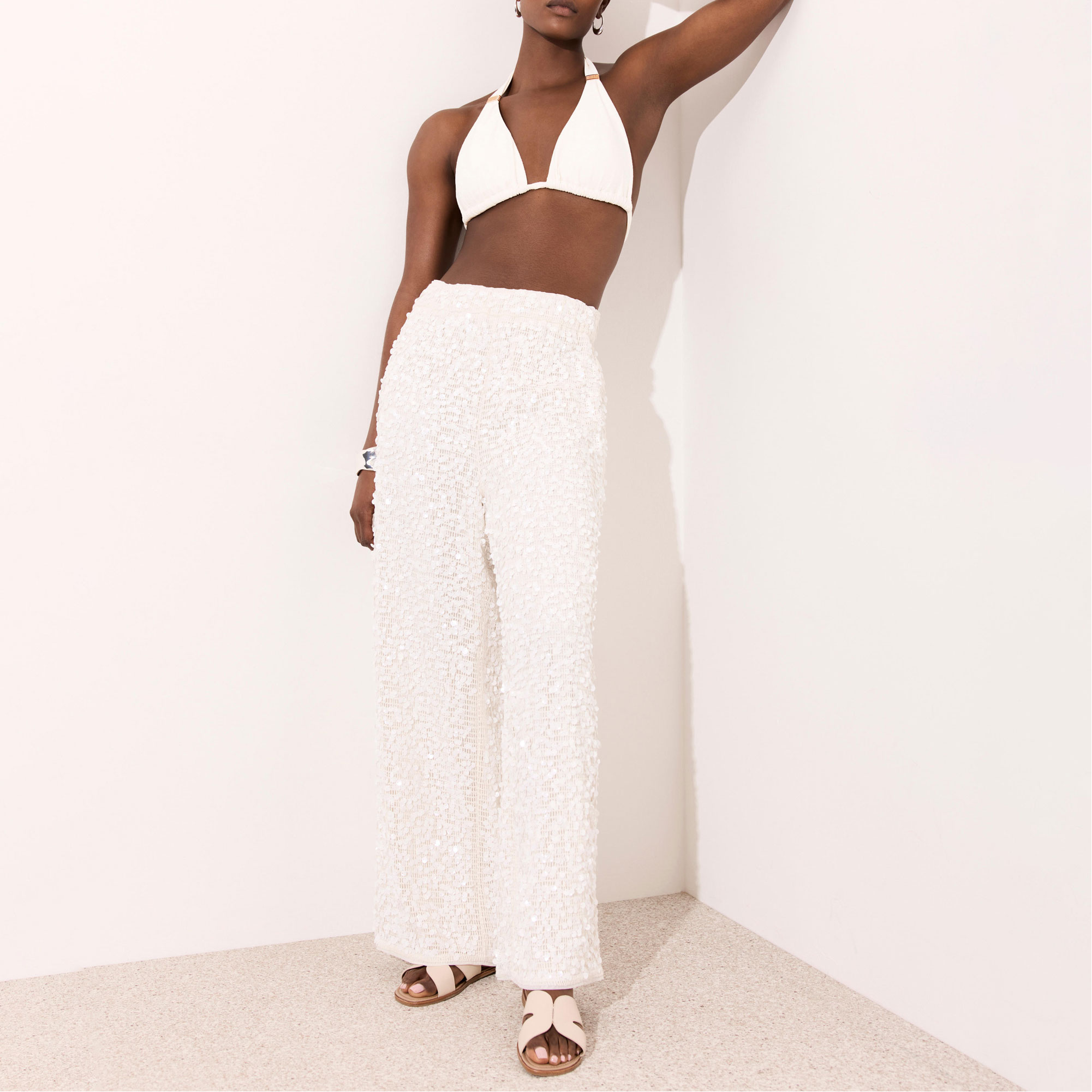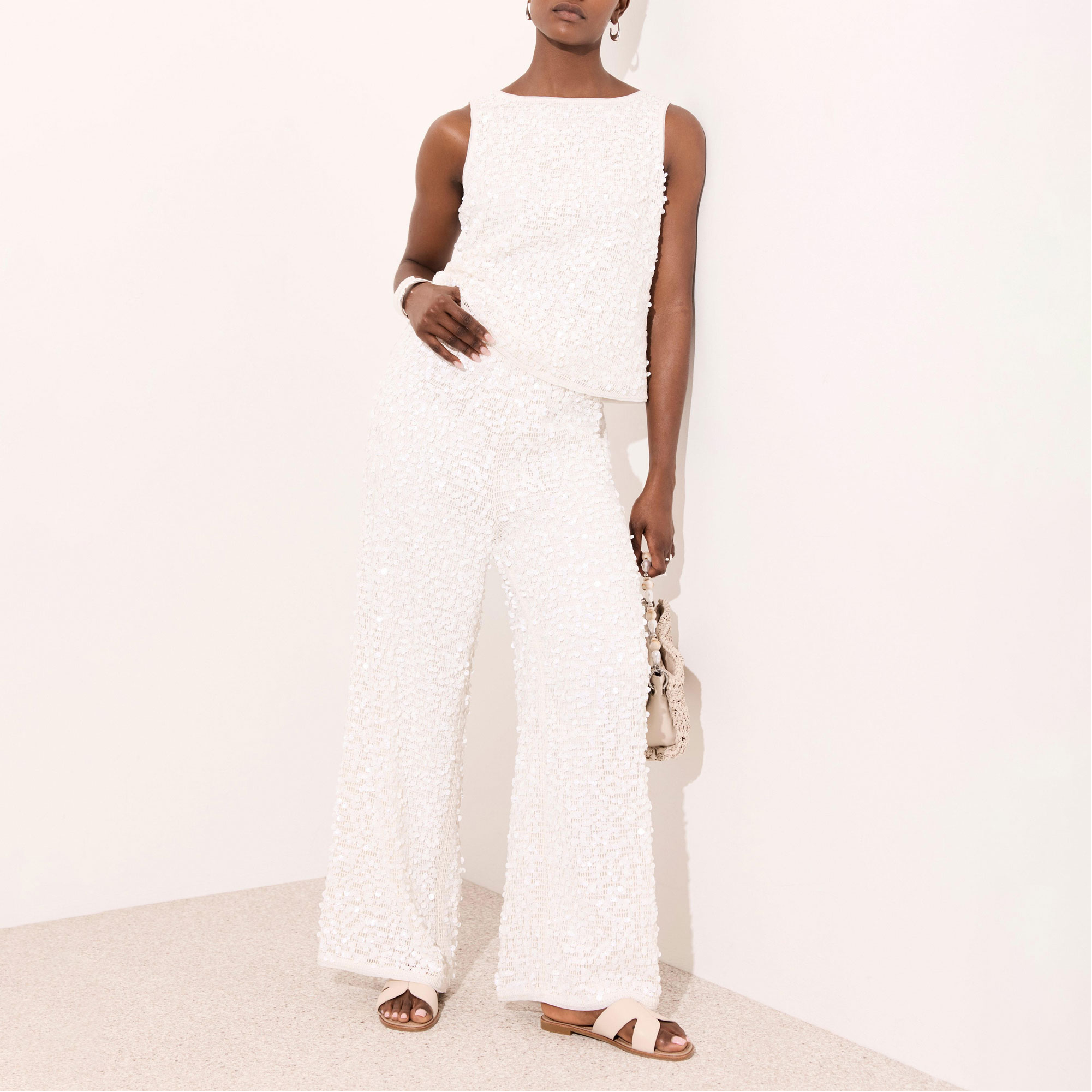 MINT VELVET Beach Embellished High-Rise Wide Leg Trousers