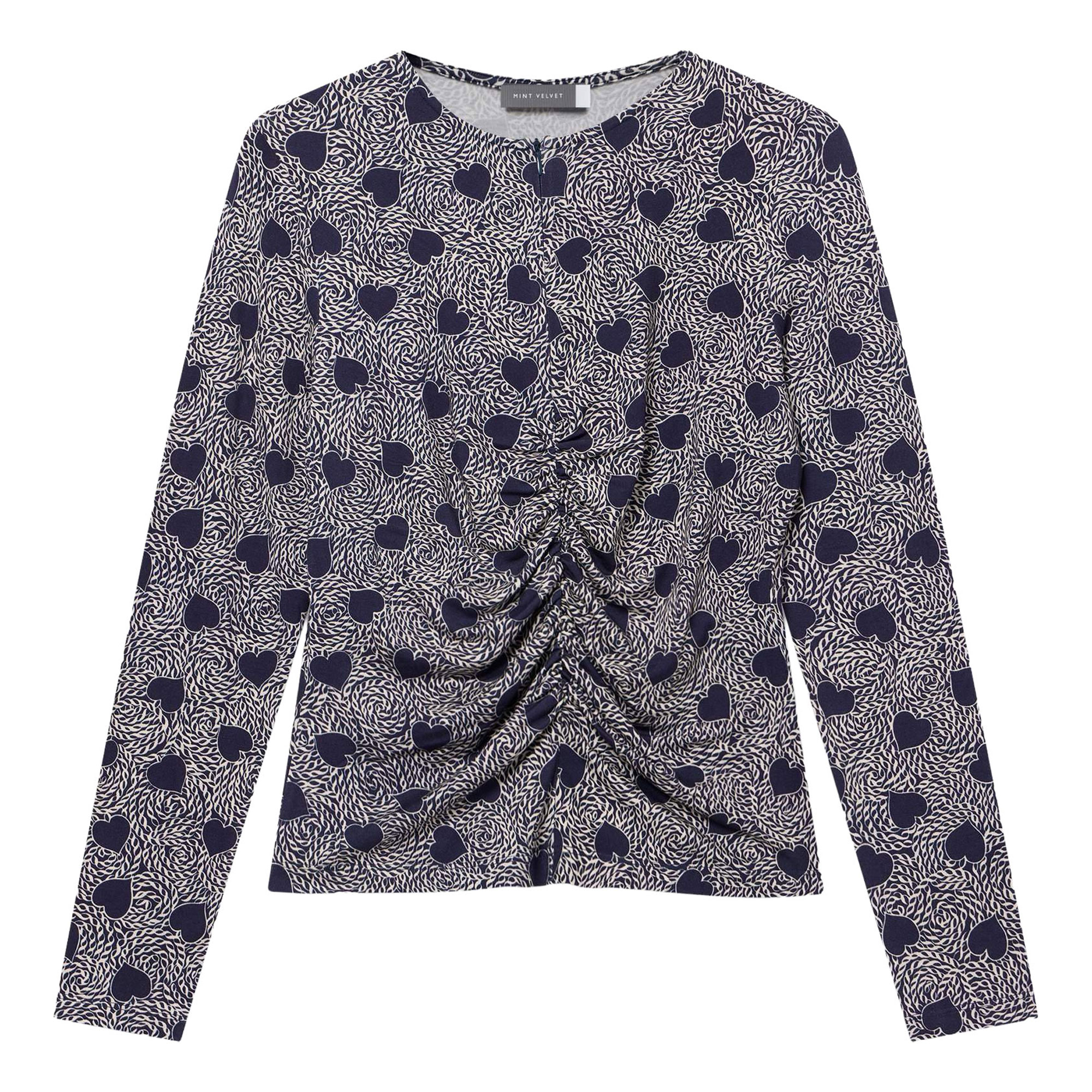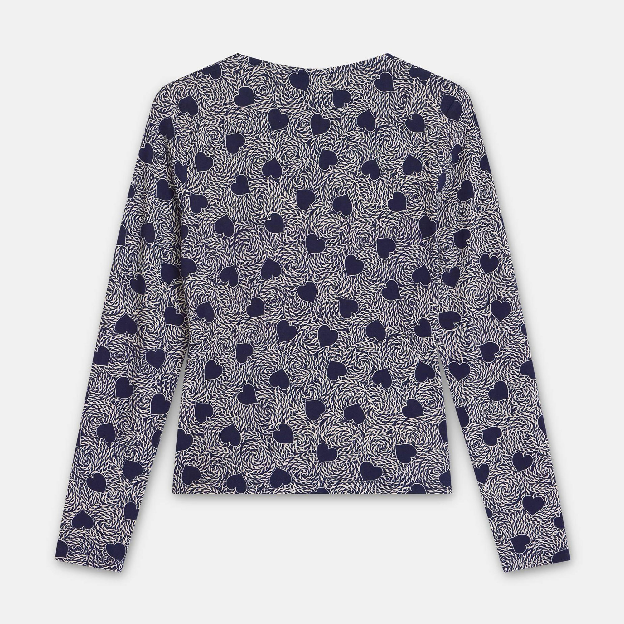 - Heart print, crew neckline, long sleeves, gathered detailing, front zip fastening