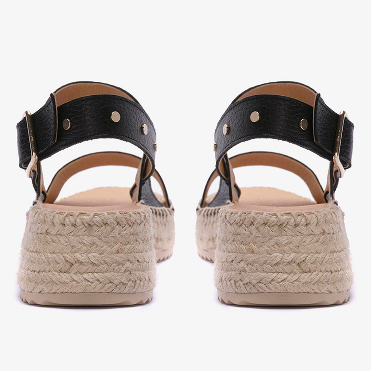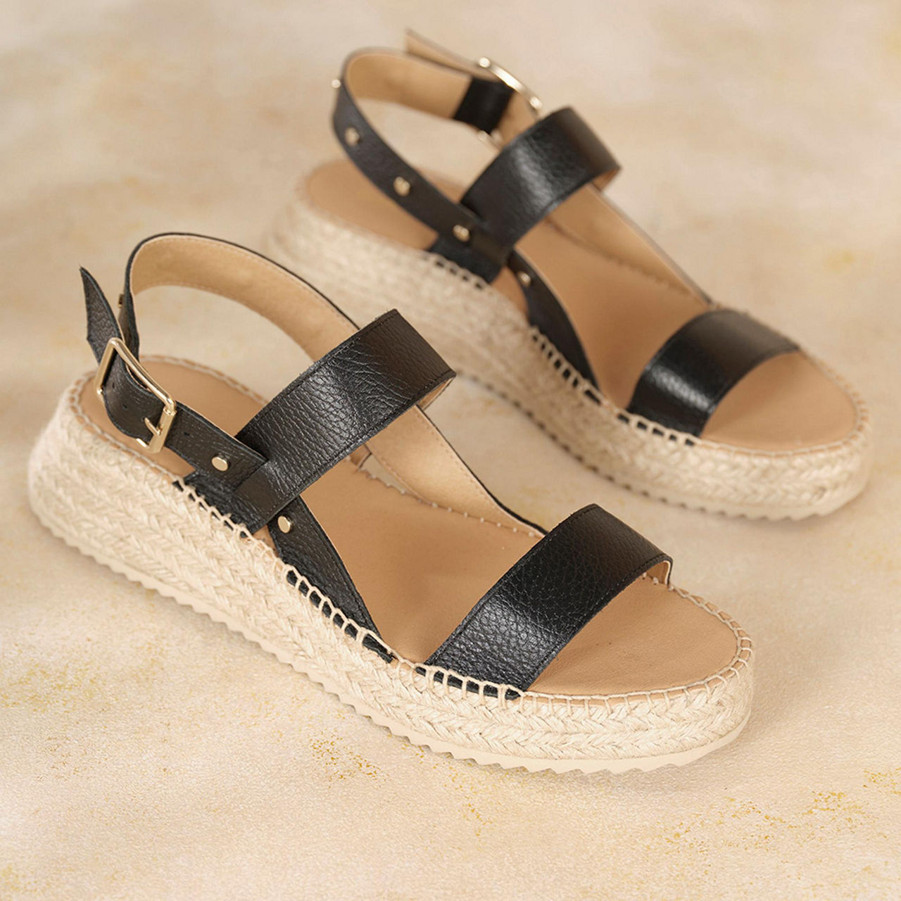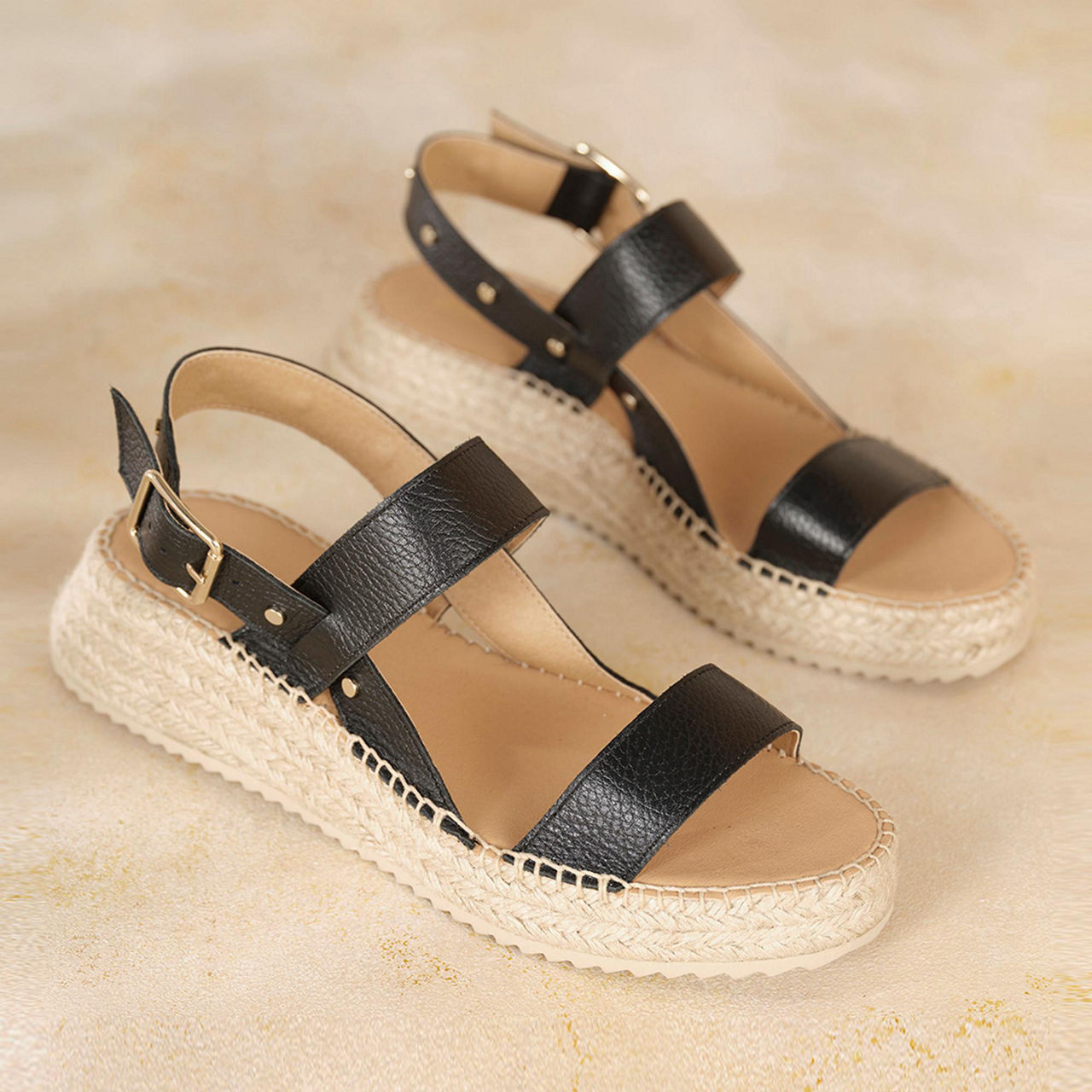 - Almond-toed, two straps, buckled ankle strap, woven jute sole