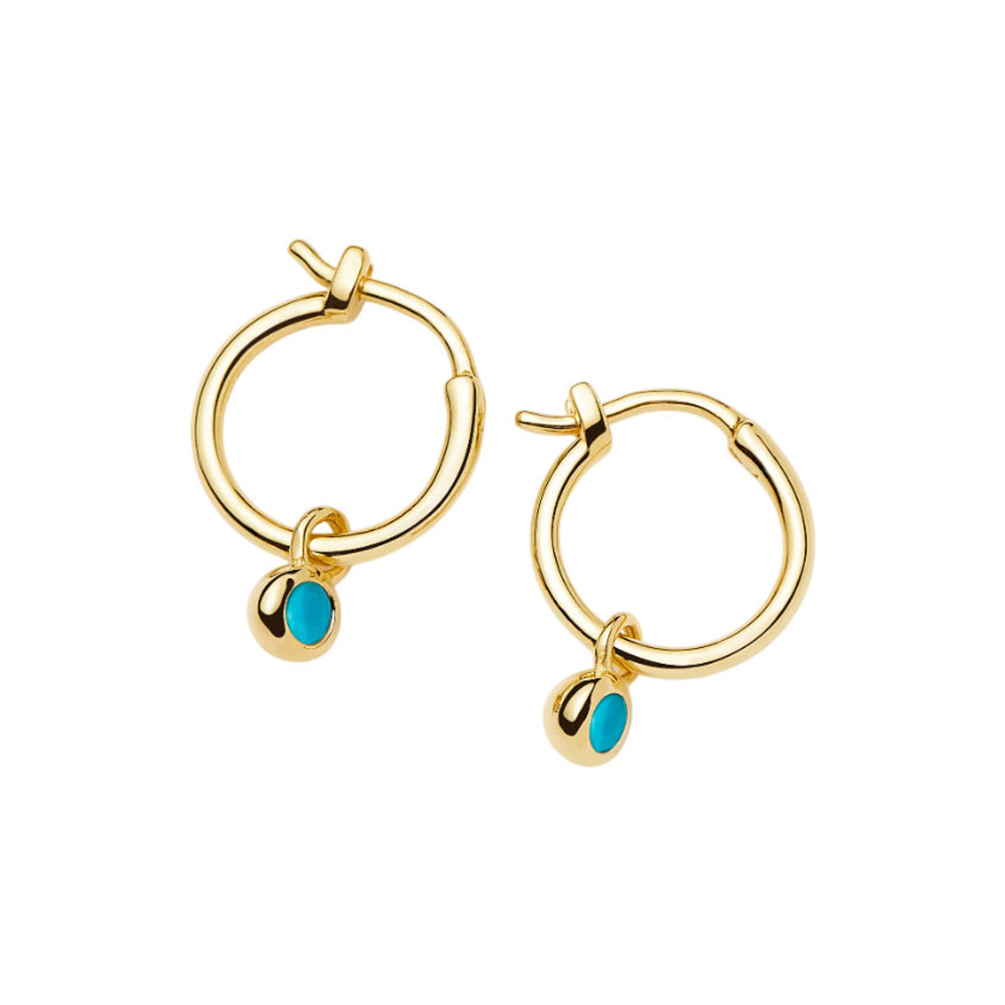 Bring your birth month a whole new meaning with your birthstone mini hoops. These timeless earrings feature removable charms that hold faceted natural turquoise magnesite gemstones, symbolising calm. The perfect gift for anyone born in December.