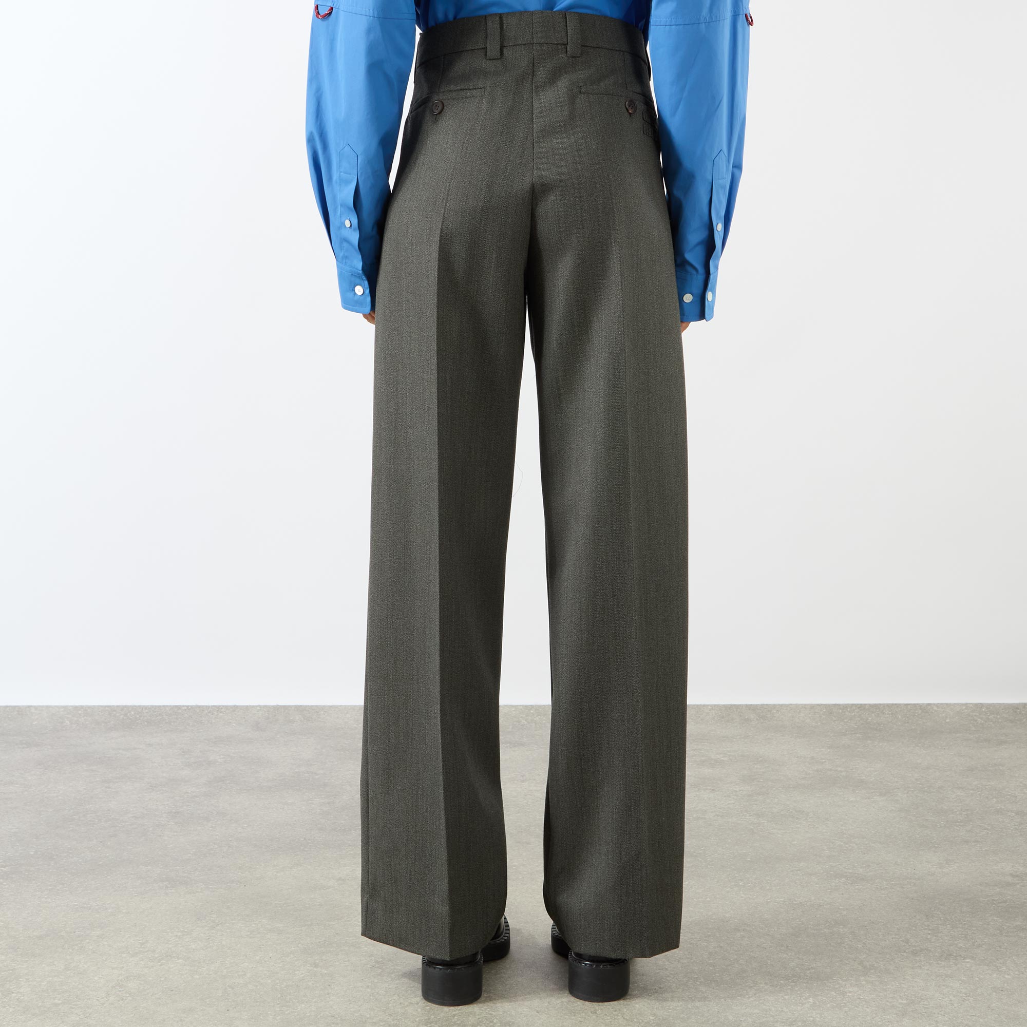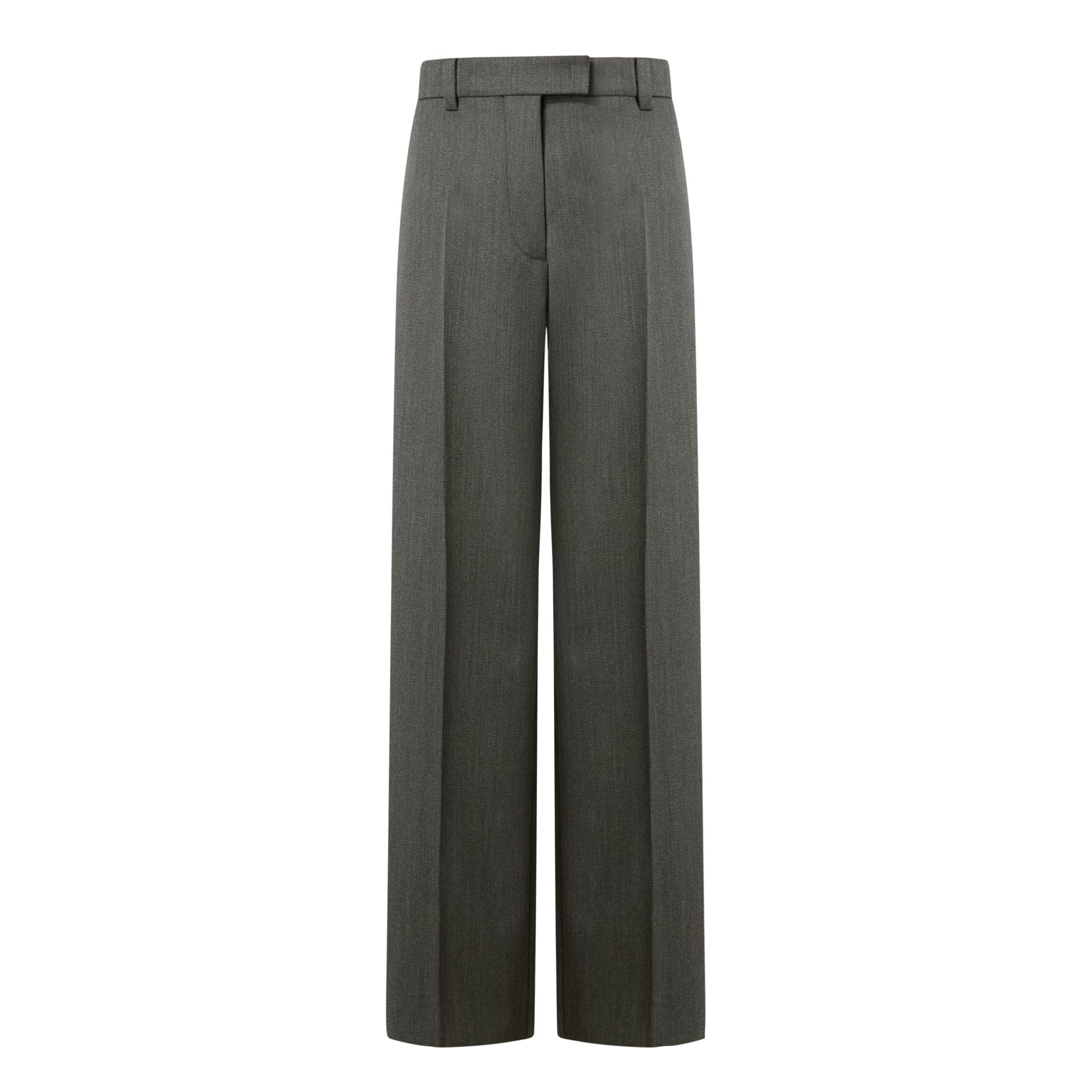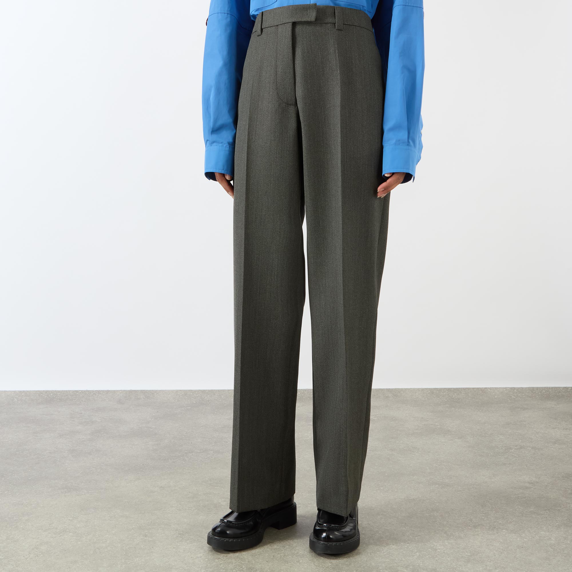 Miu Miu pays tribute to working women with workwear pieces designed for the office. These trousers, from the new SS26 line, sit high on the waist and feature a concealed zip fly with a hook-and-bar fastening for a polished finish. Complete with classic four-pocket styling, they fall to a straight-cut leg accented by sharp pressed creases.