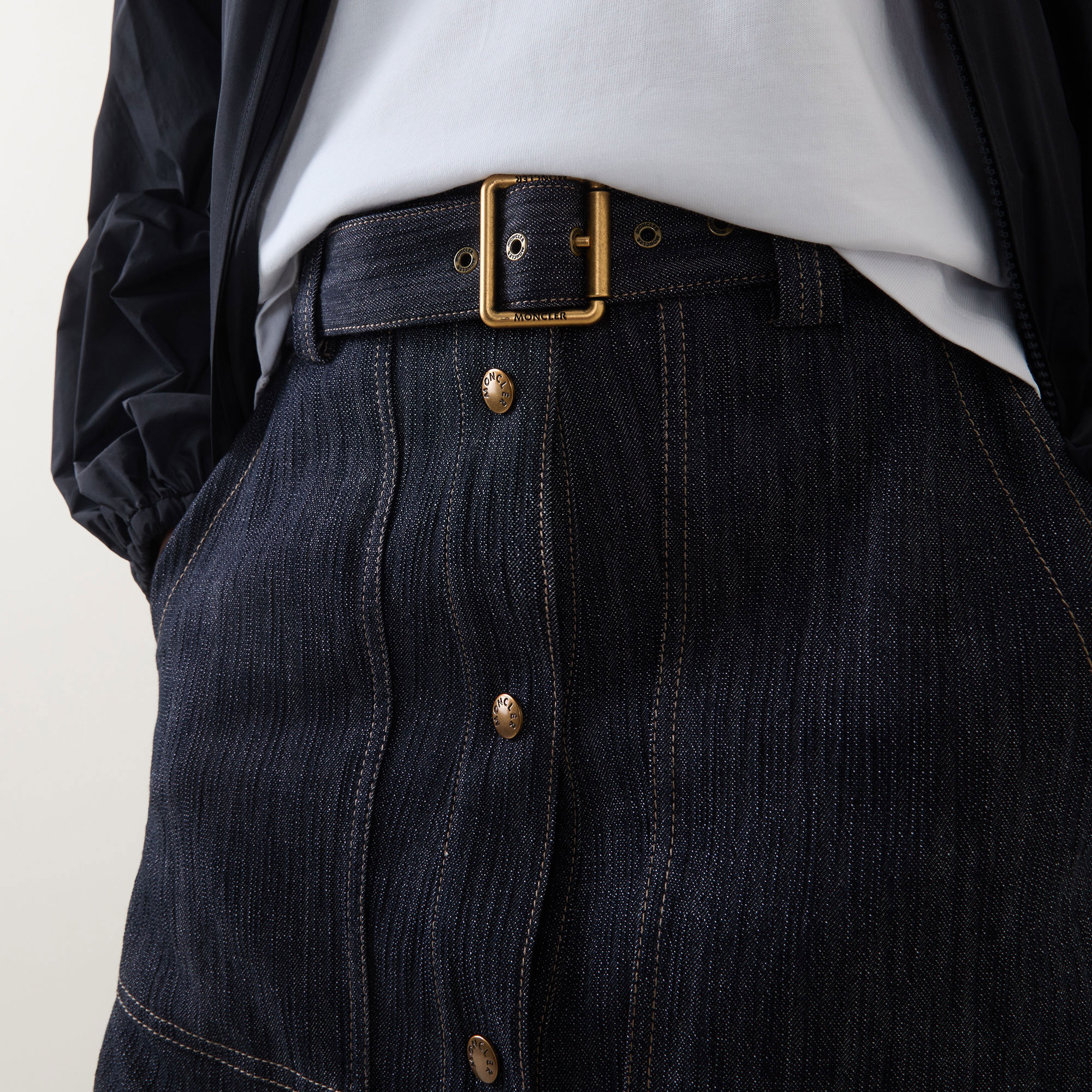 MONCLER Belted Denim Skirt