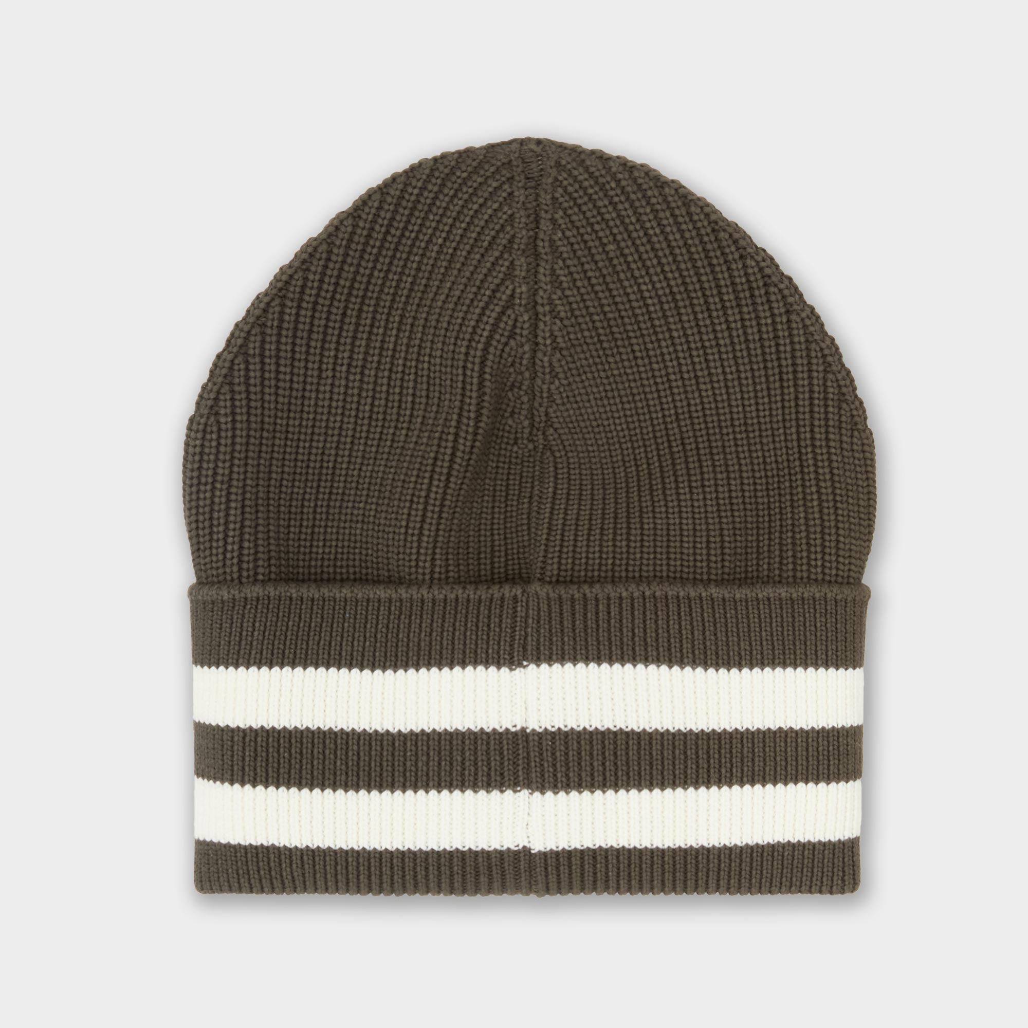 - Turn up hem, contrast stripe detailing, felt logo badge, ribbed design, soft finish