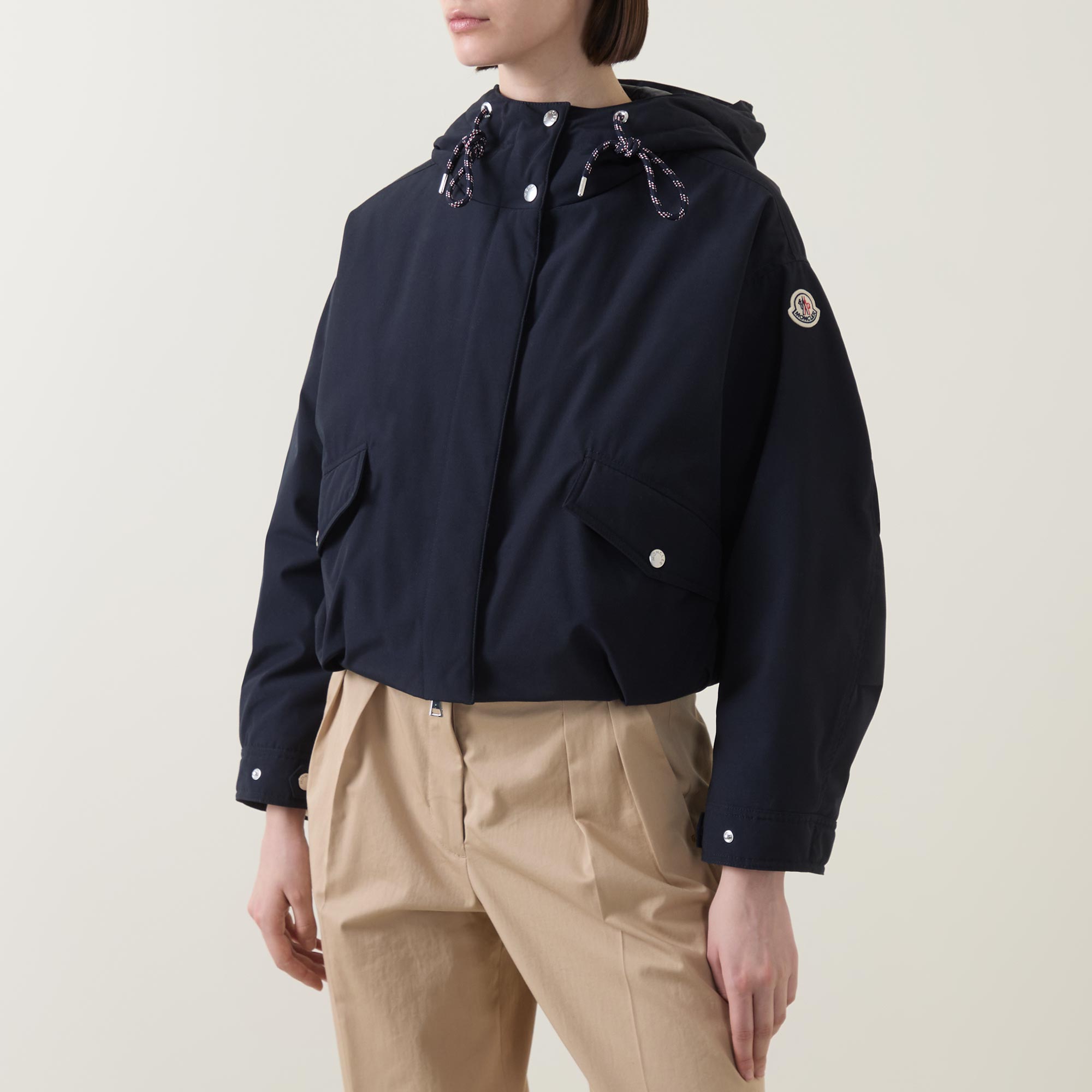 - Adjustable hood, adjustable cuffs, zip and snap button closure, pockets with button closure, hem with drawstring fastening, logo branding