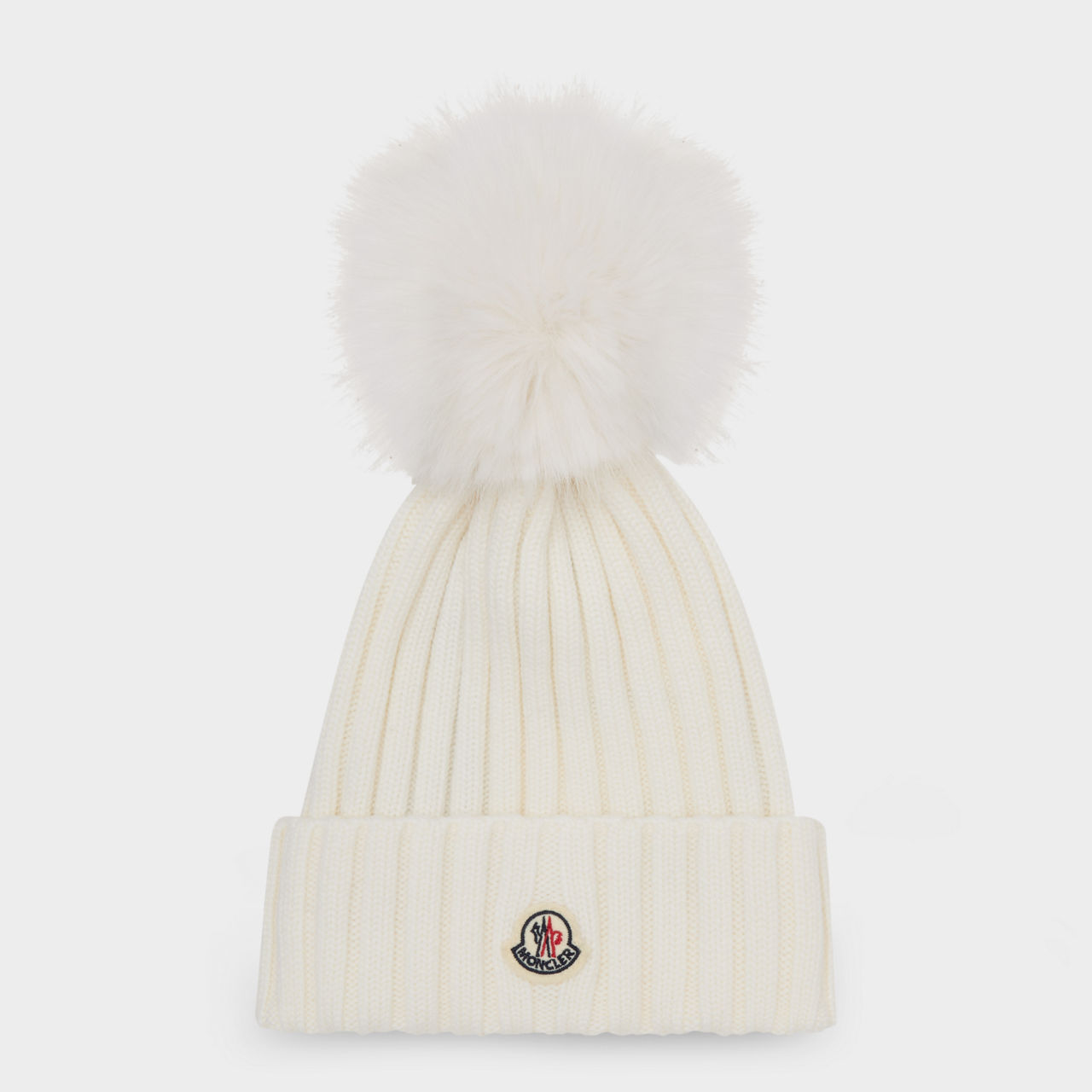 - Turn-up style, rib-knit construction, faux-fur tonal pom-pom, felt logo detail
