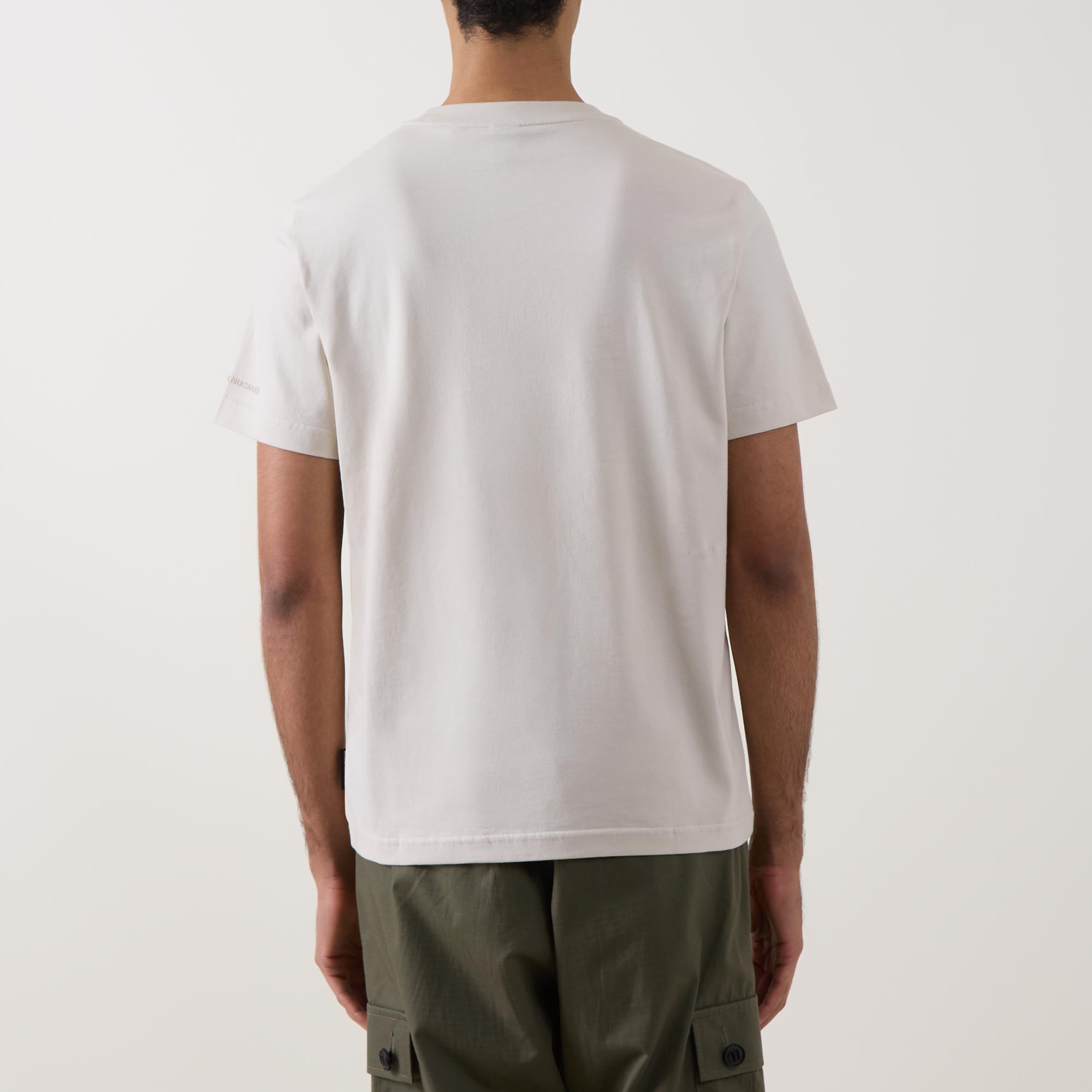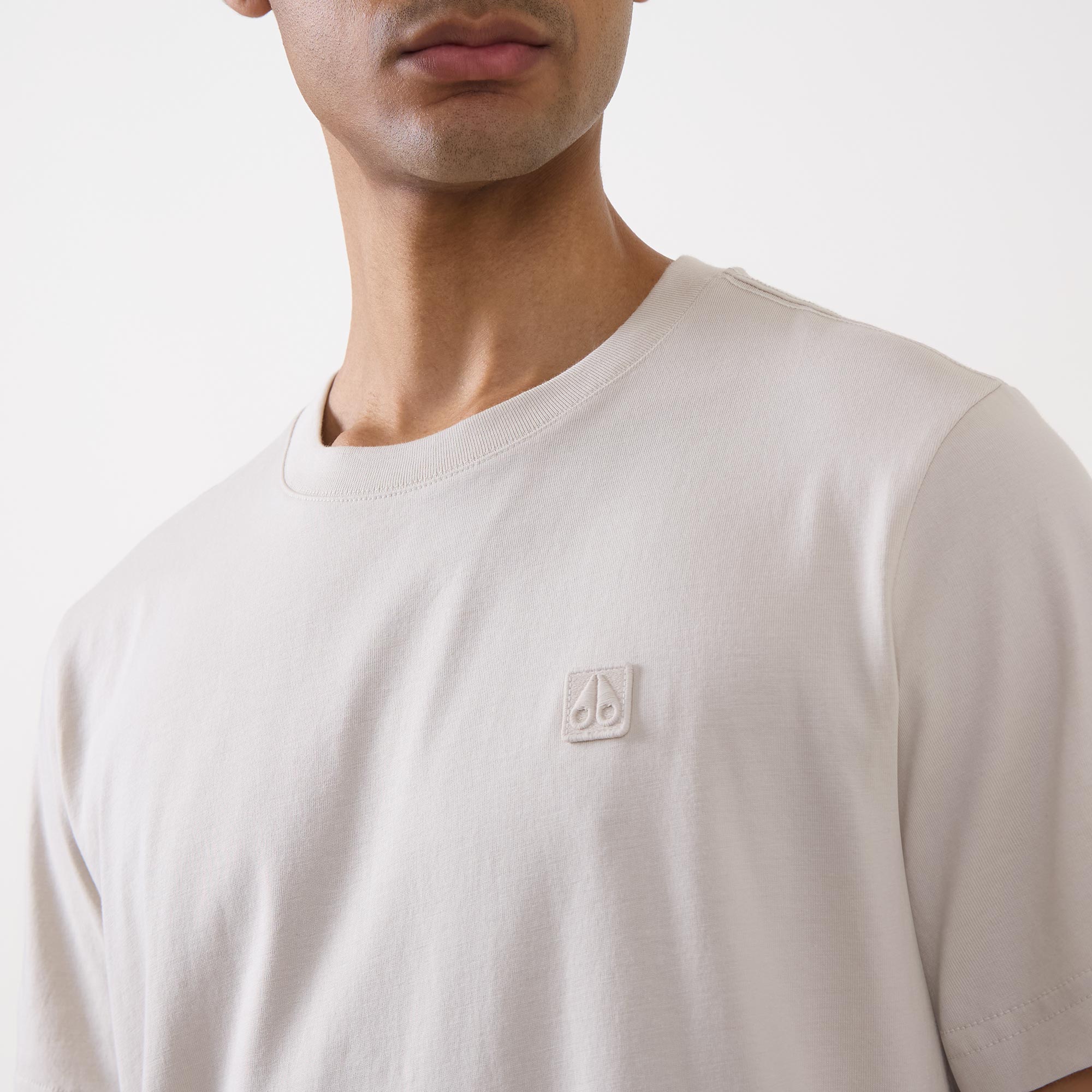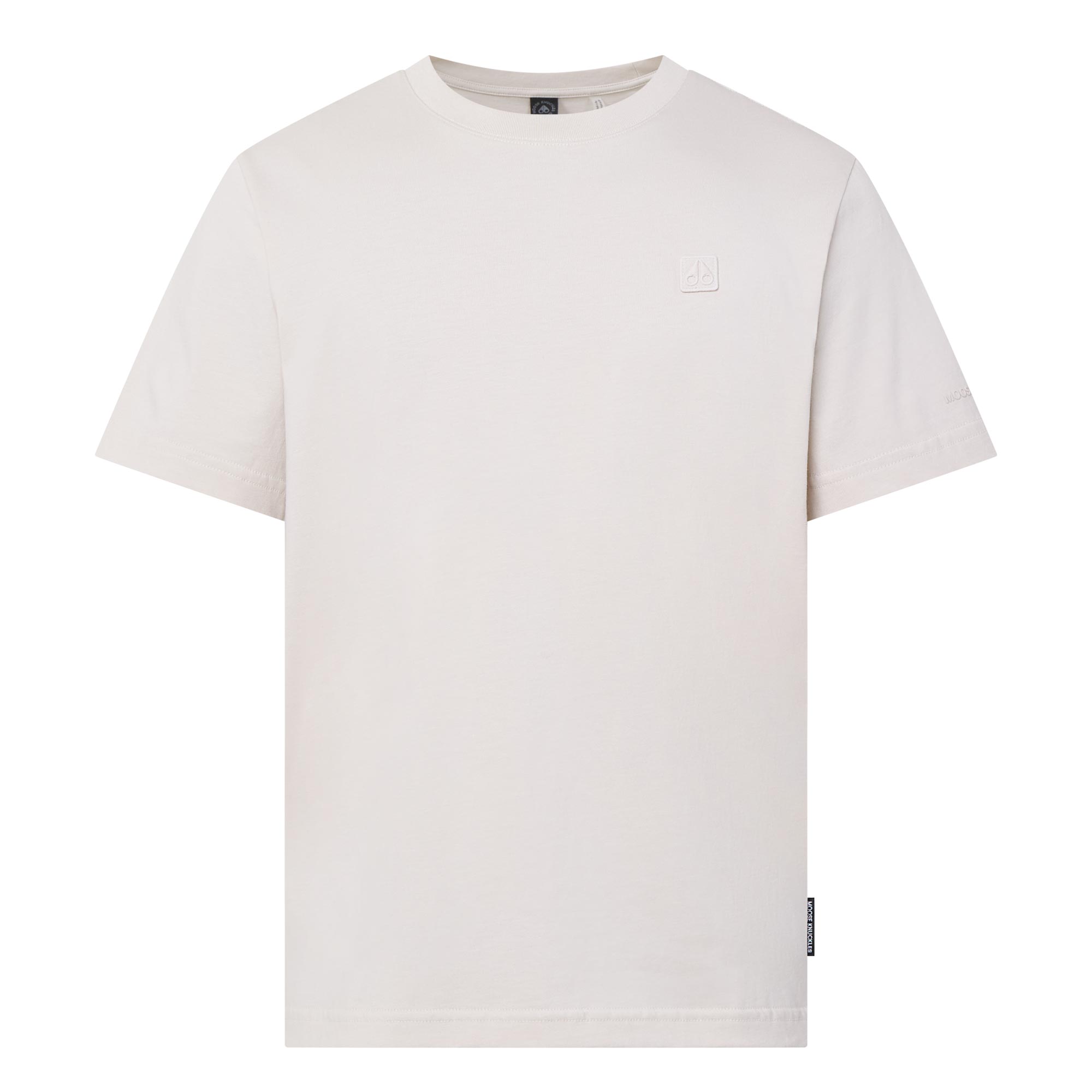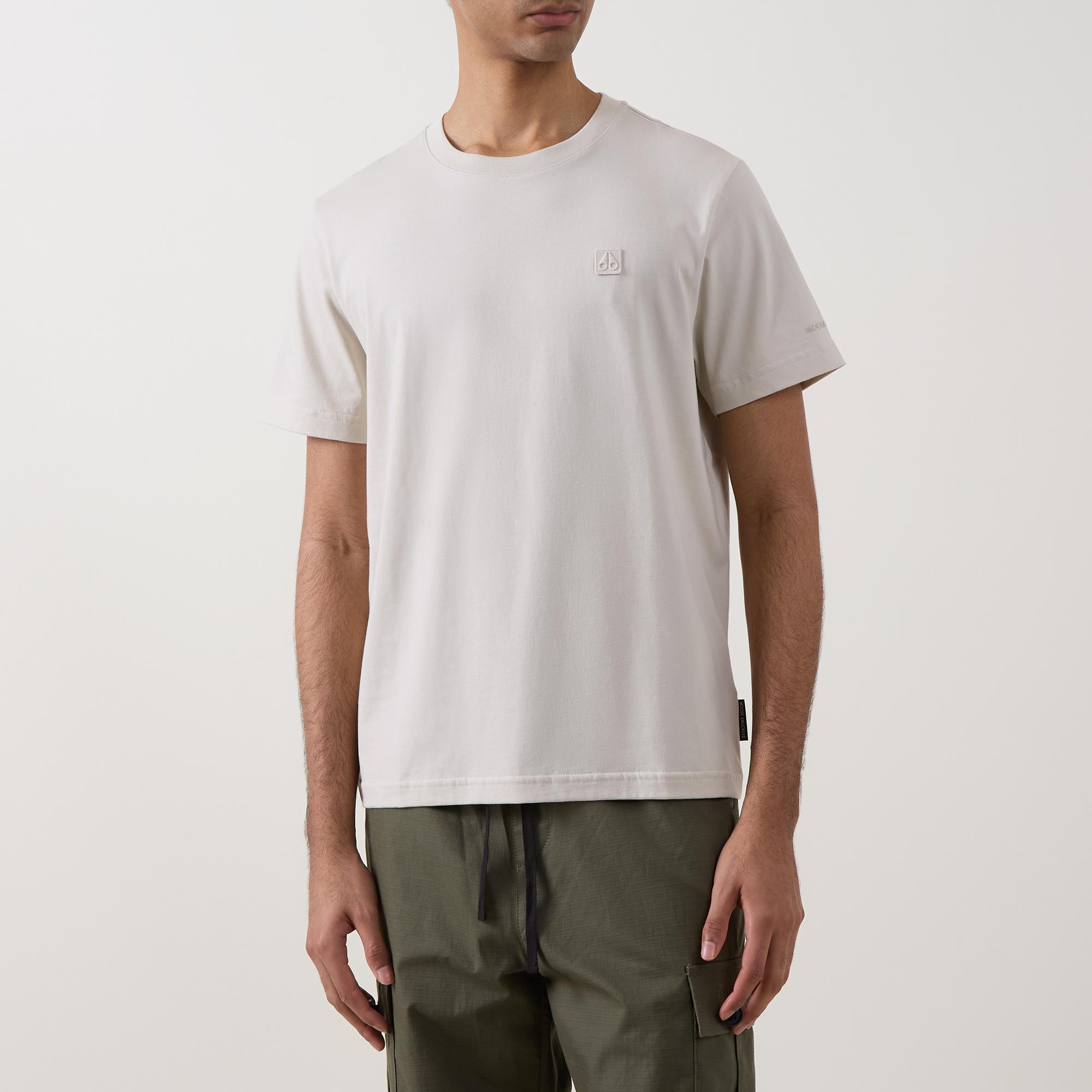 - Crew neck, short sleeves, straight hem, tonal stitching, tonal logo detail on the chest, logo tag