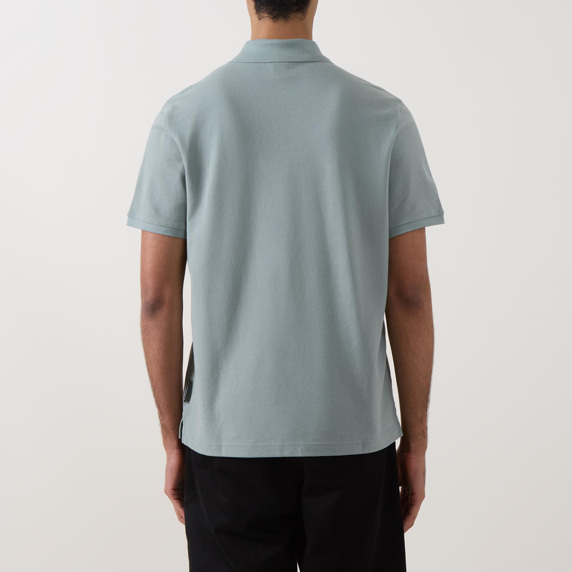 - Polo collar, two button placket, short sleeves, straight hem, side split detailing, tonal stitching, logo hardware on the chest