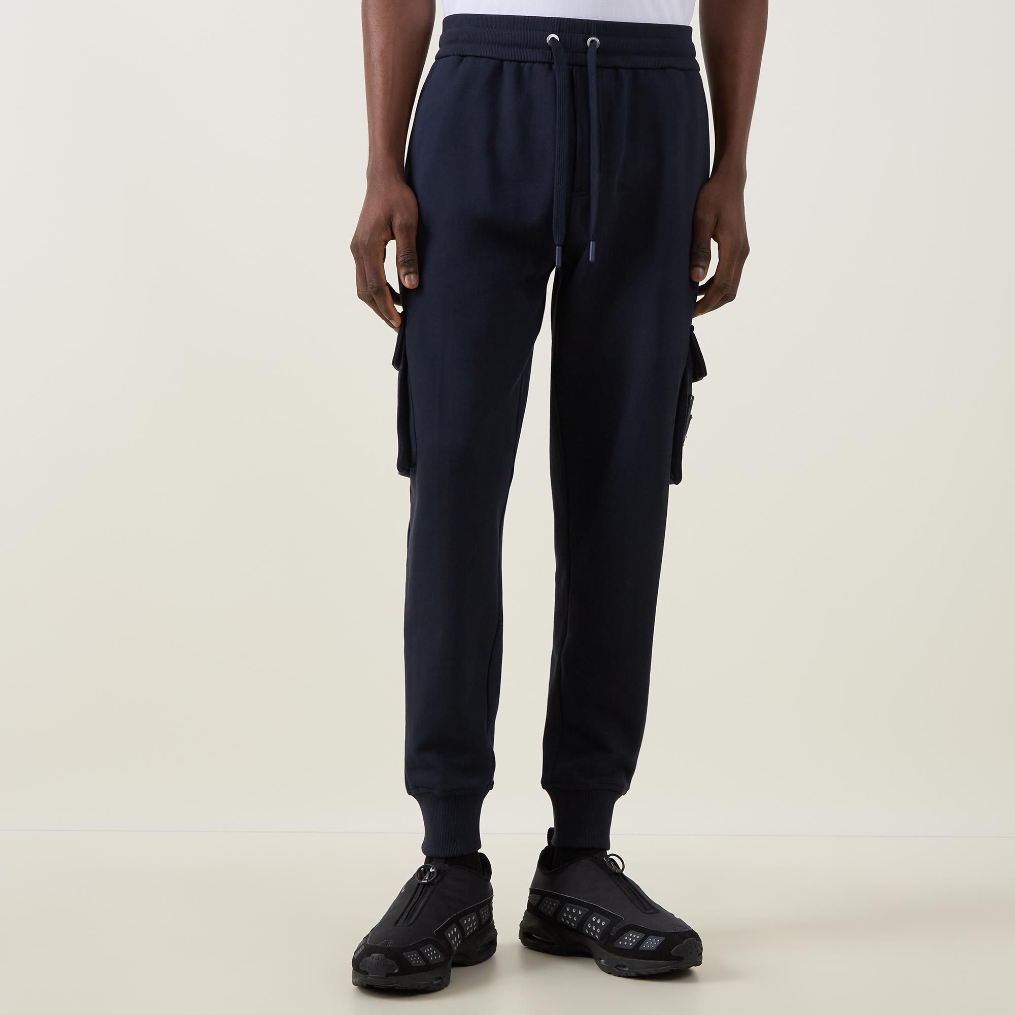 - Cargo pockets, elasticated waist, drawstring fastenings, logo detail, cuffed leg