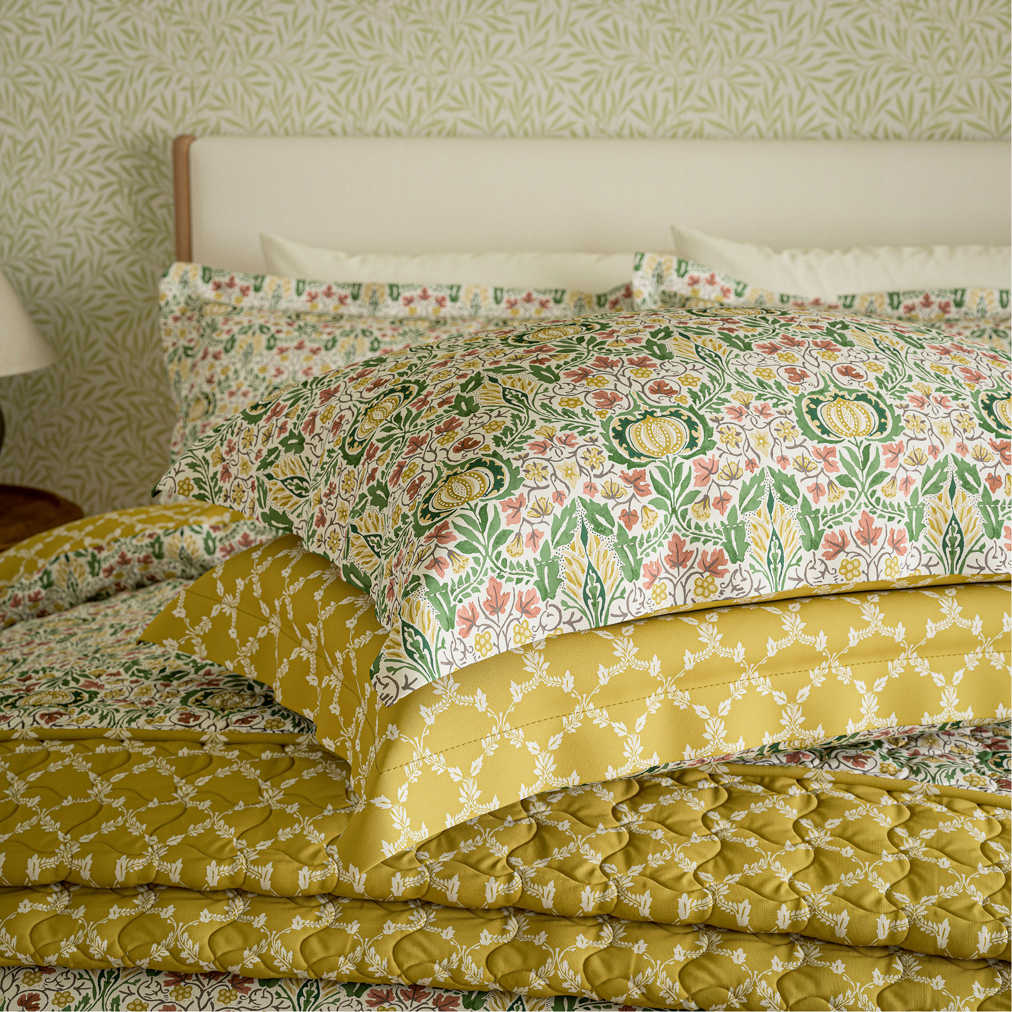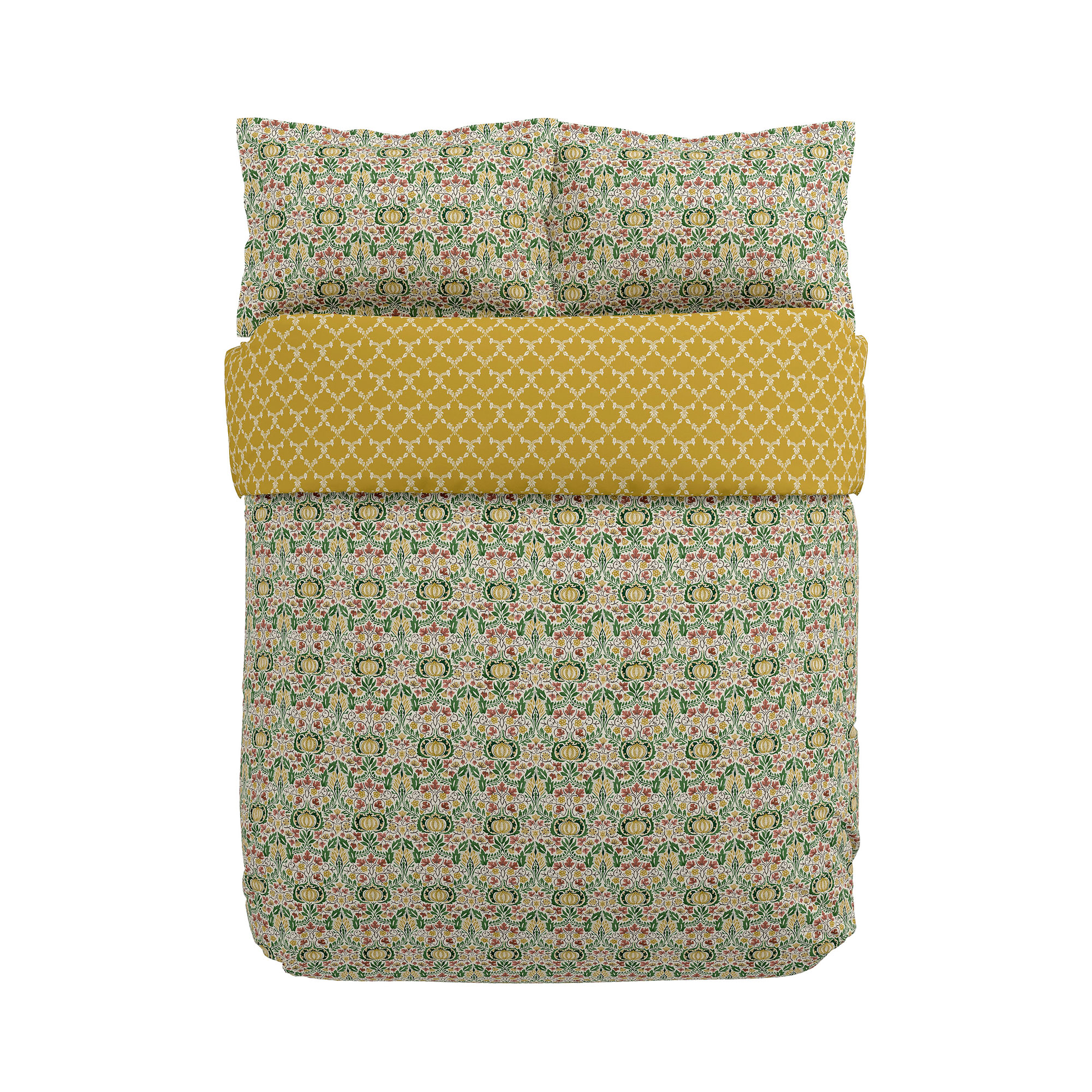 Pomegranates and Indian-inspired motifs cover this small-scale Morris & Co. design, Little Chintz, that has been beautifully transformed for bedding. Featuring a duvet, with a reverse trellis design, matching Oxford pillowcases included, finish the look and add the quilted throw, beautifully bordered with the trellis design. Duvet set includes pillowcase(s). Available in a selection of colourways.
