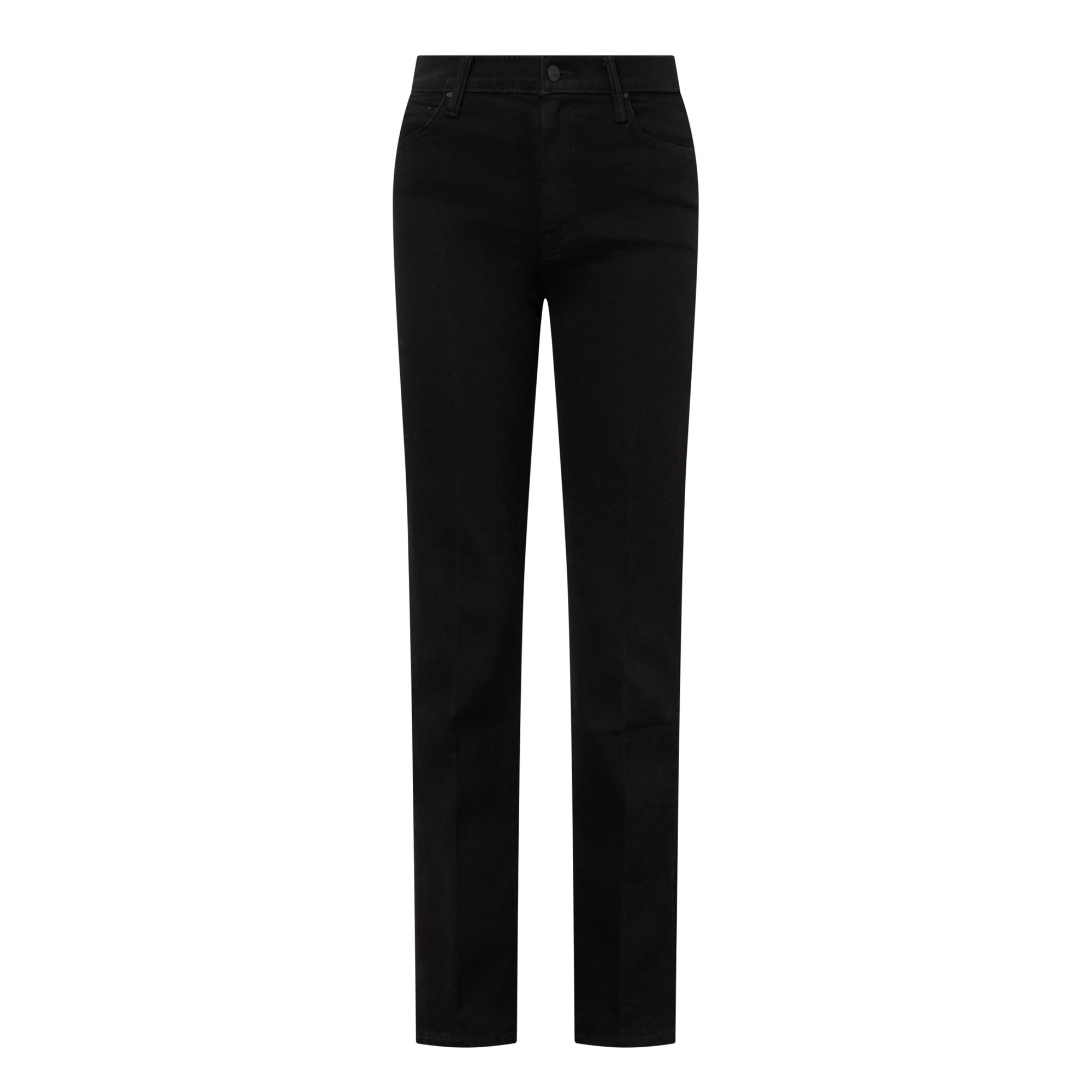- High rise, slim leg, belt loops, zip fly and button fastening, five-pocket design, clean hems, tonal stitching and hardware, logo tag, smooth denim finish, stretch fabric