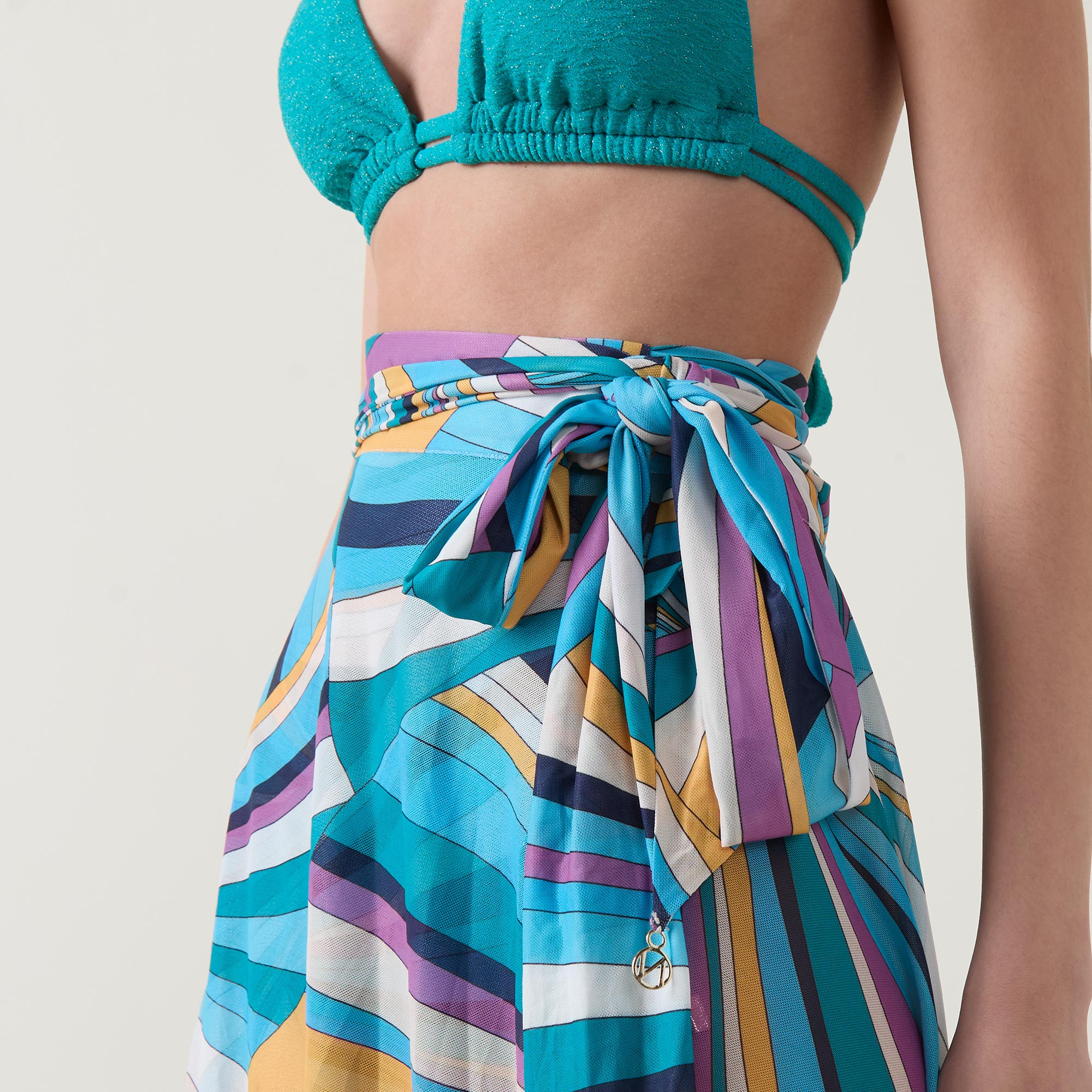 - Wrap-style design, asymmetric hem, printed design, smooth finish, can be worn as a dress or a sarong