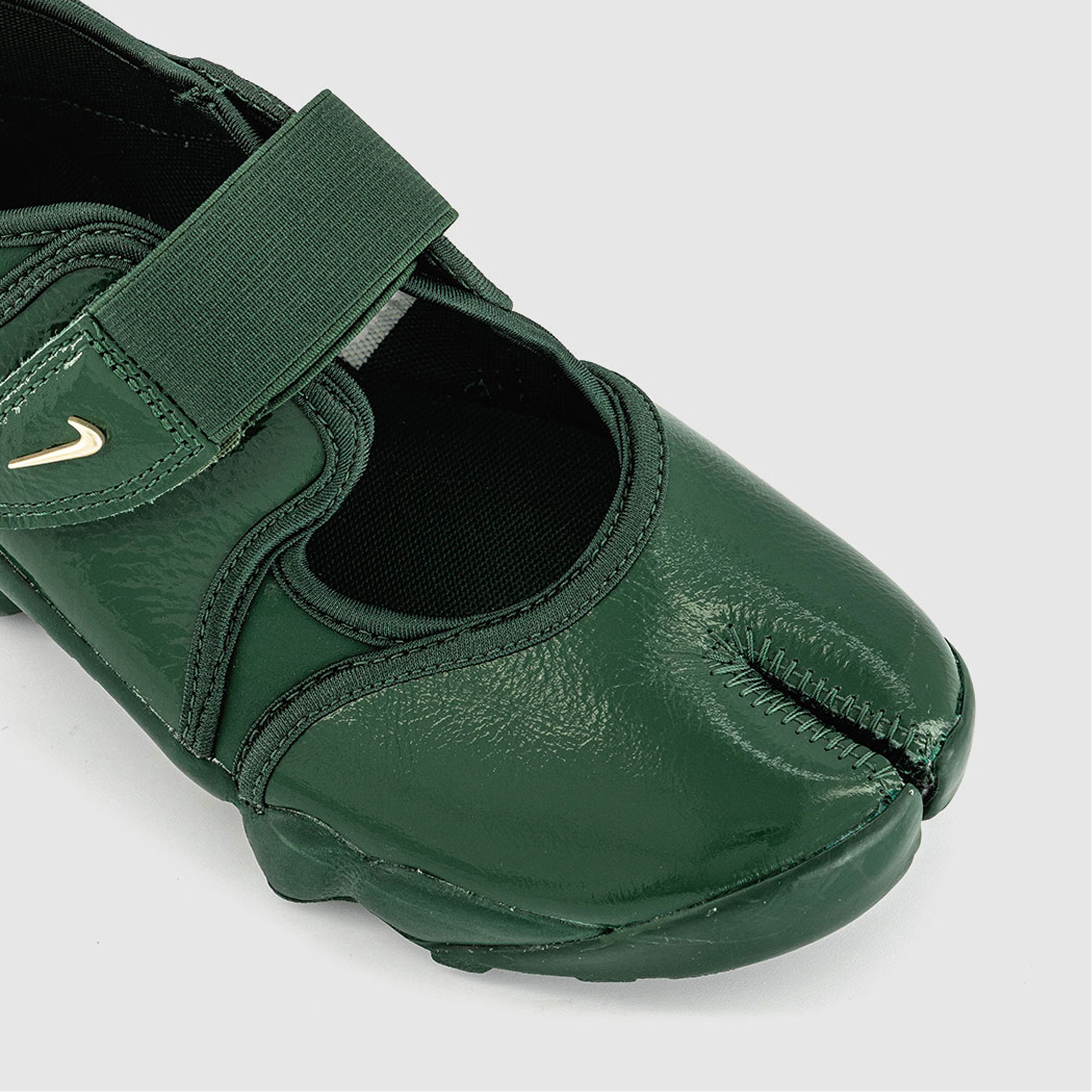 - Buckle fastening, slit-toe style, foot-hugging leather upper, secure adjustable strap, buckle detail