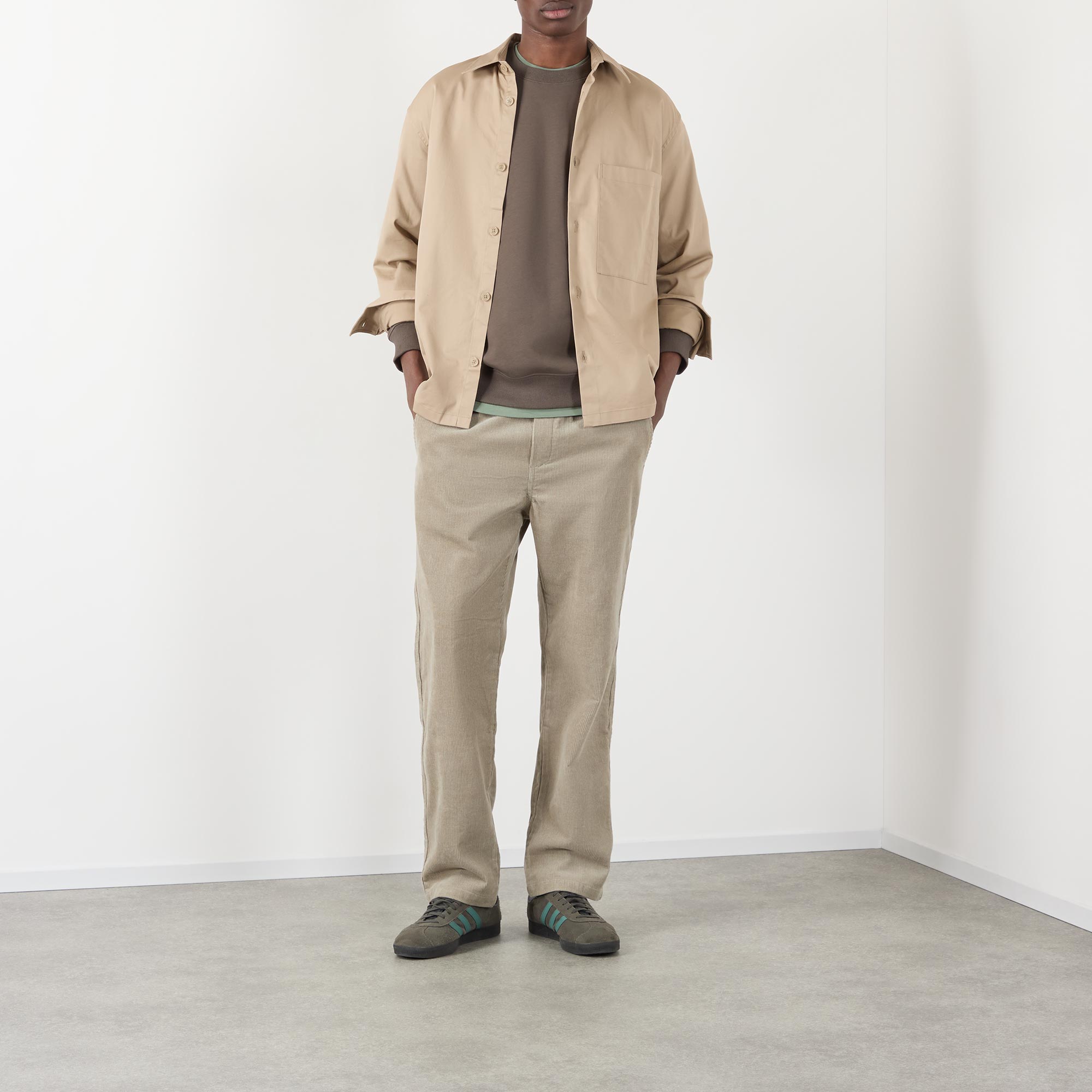 - Ribbed trims, crew neckline, long sleeves, straight hemline
