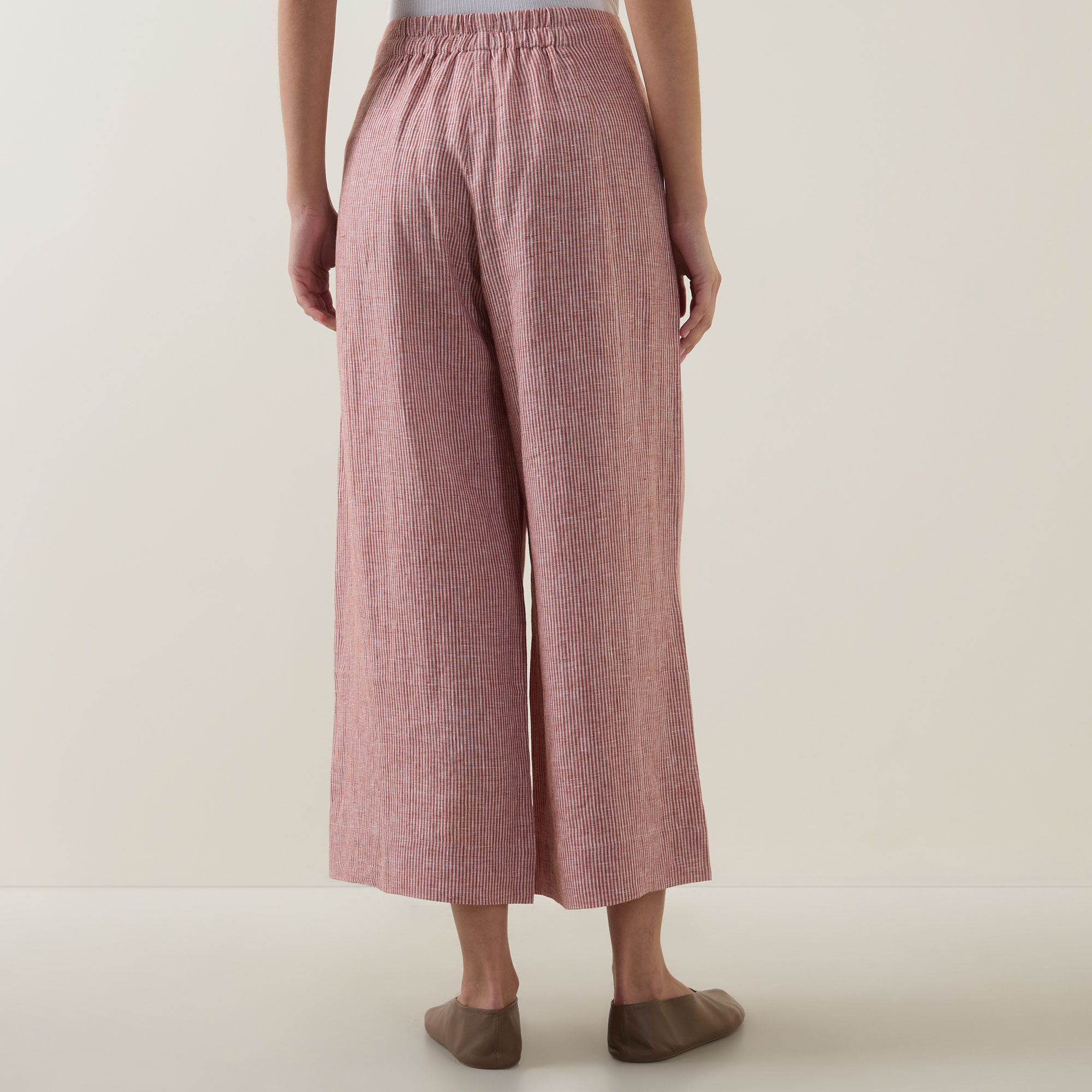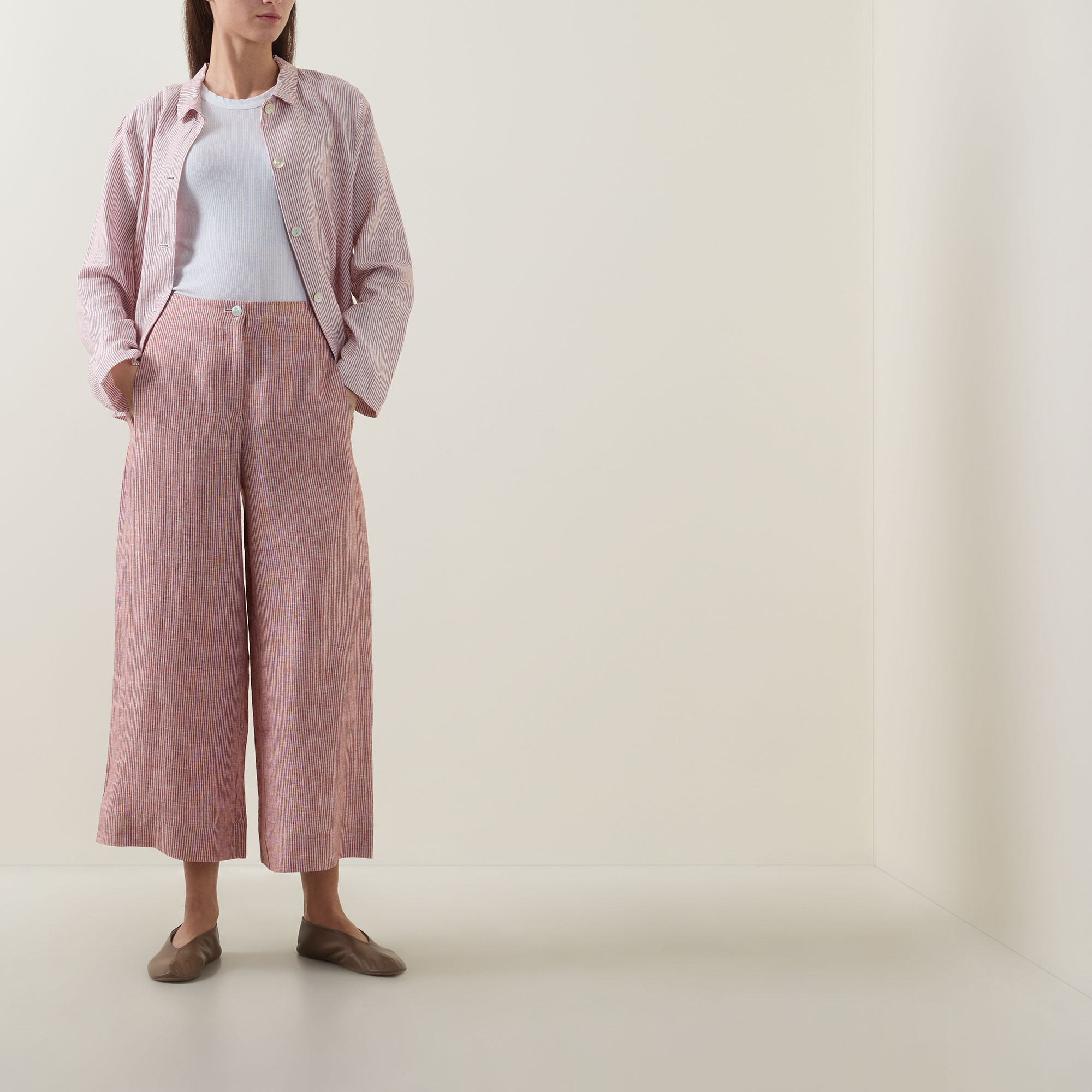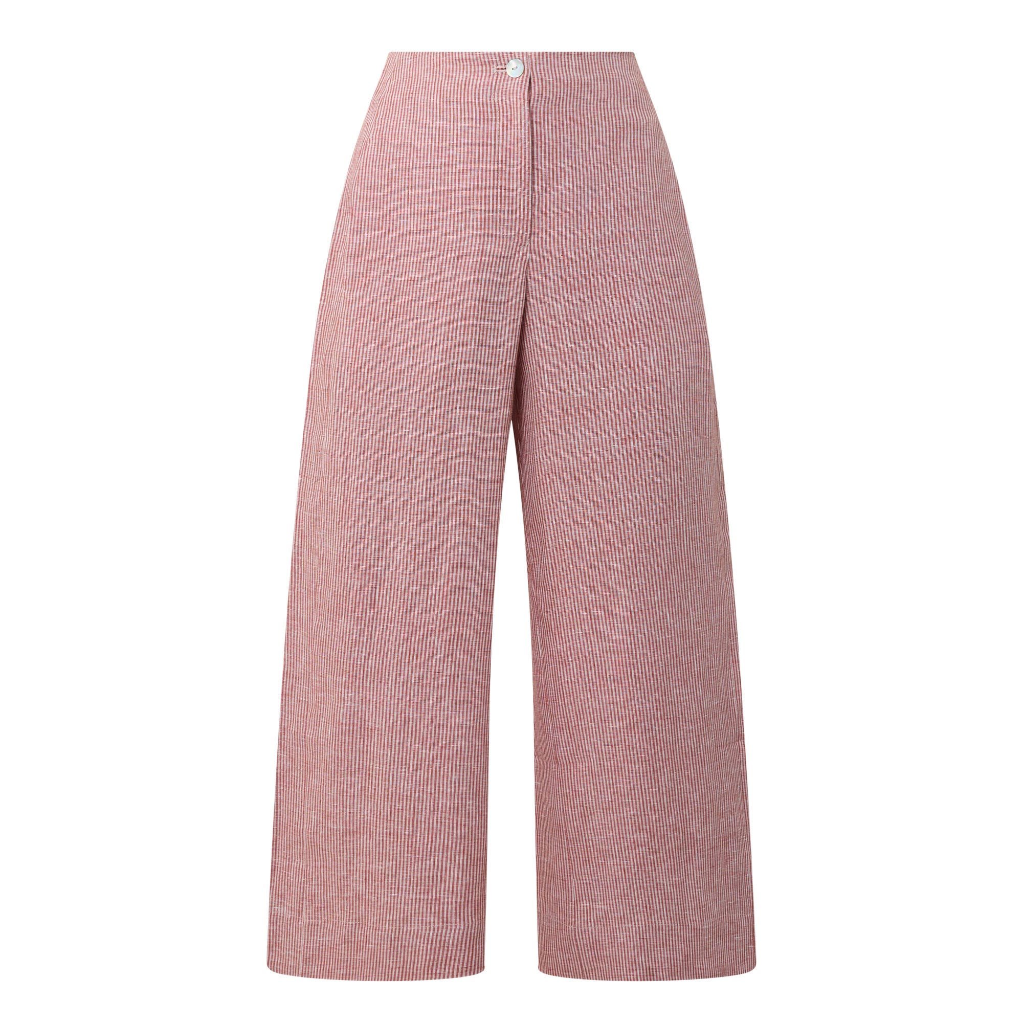 • Button and fly zip fastening, part-elasticated waistband, wide-cut legs, side entry pockets, stripe pattern