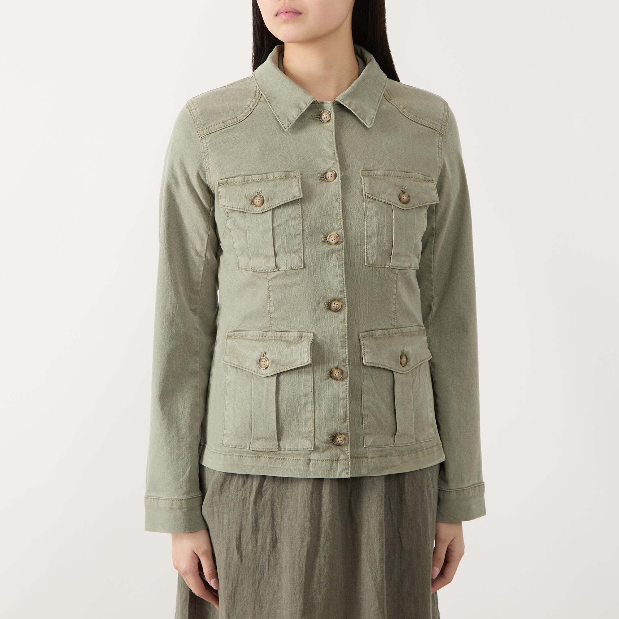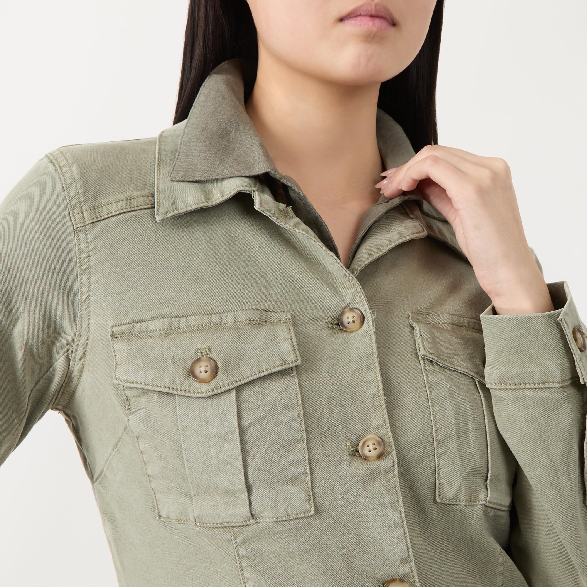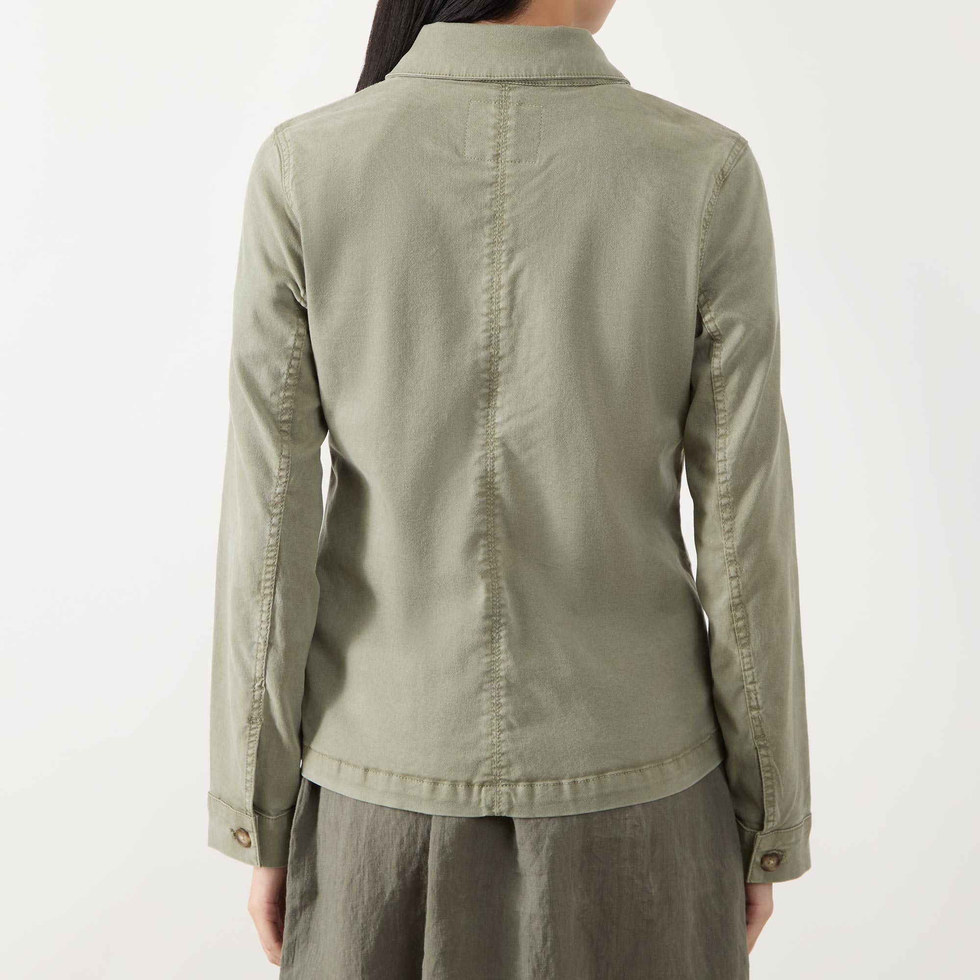 • Point collar, long sleeves, buttoned cuffs, four front flap pockets with button fastenings, front placket, straight hem, tonal stitching, washed finish