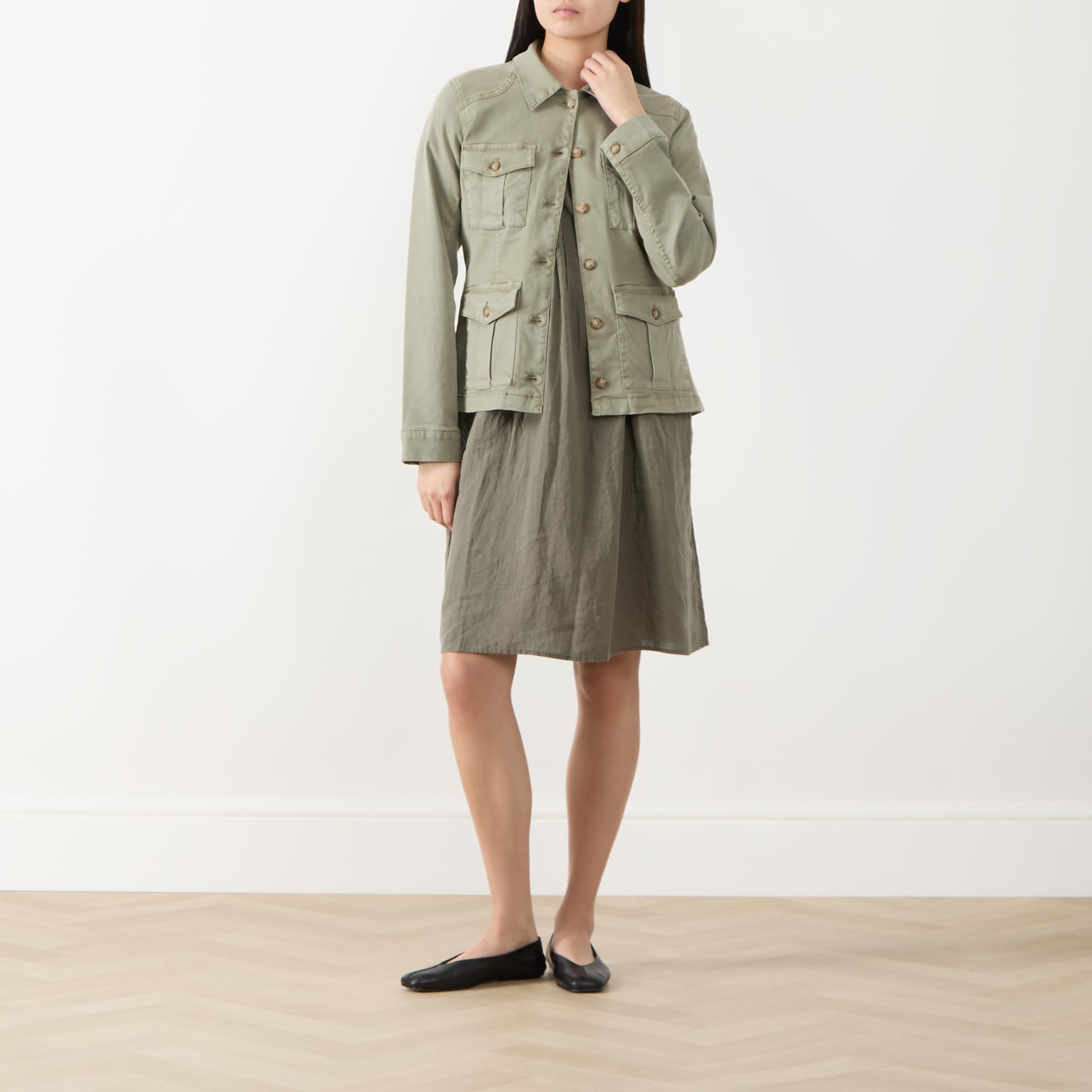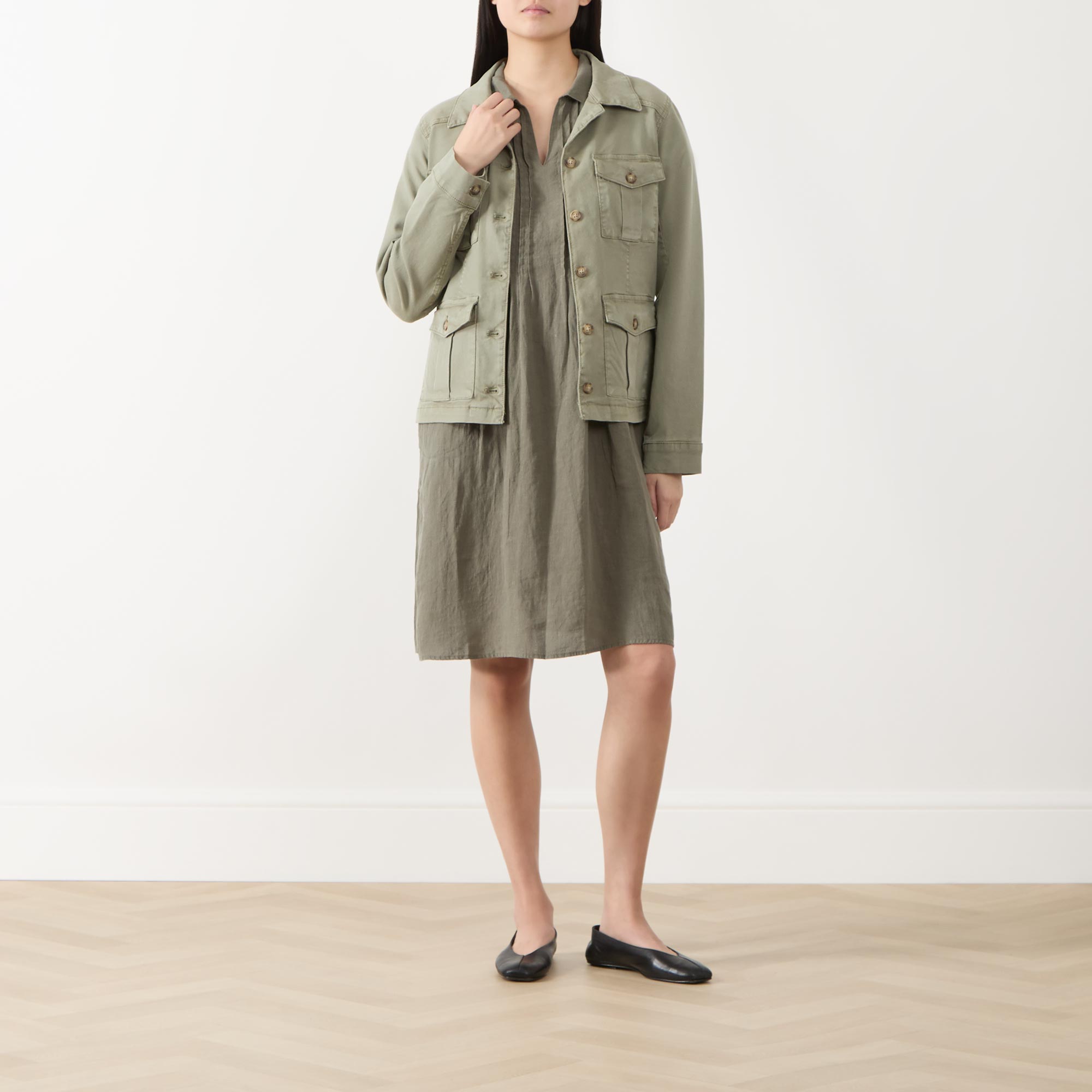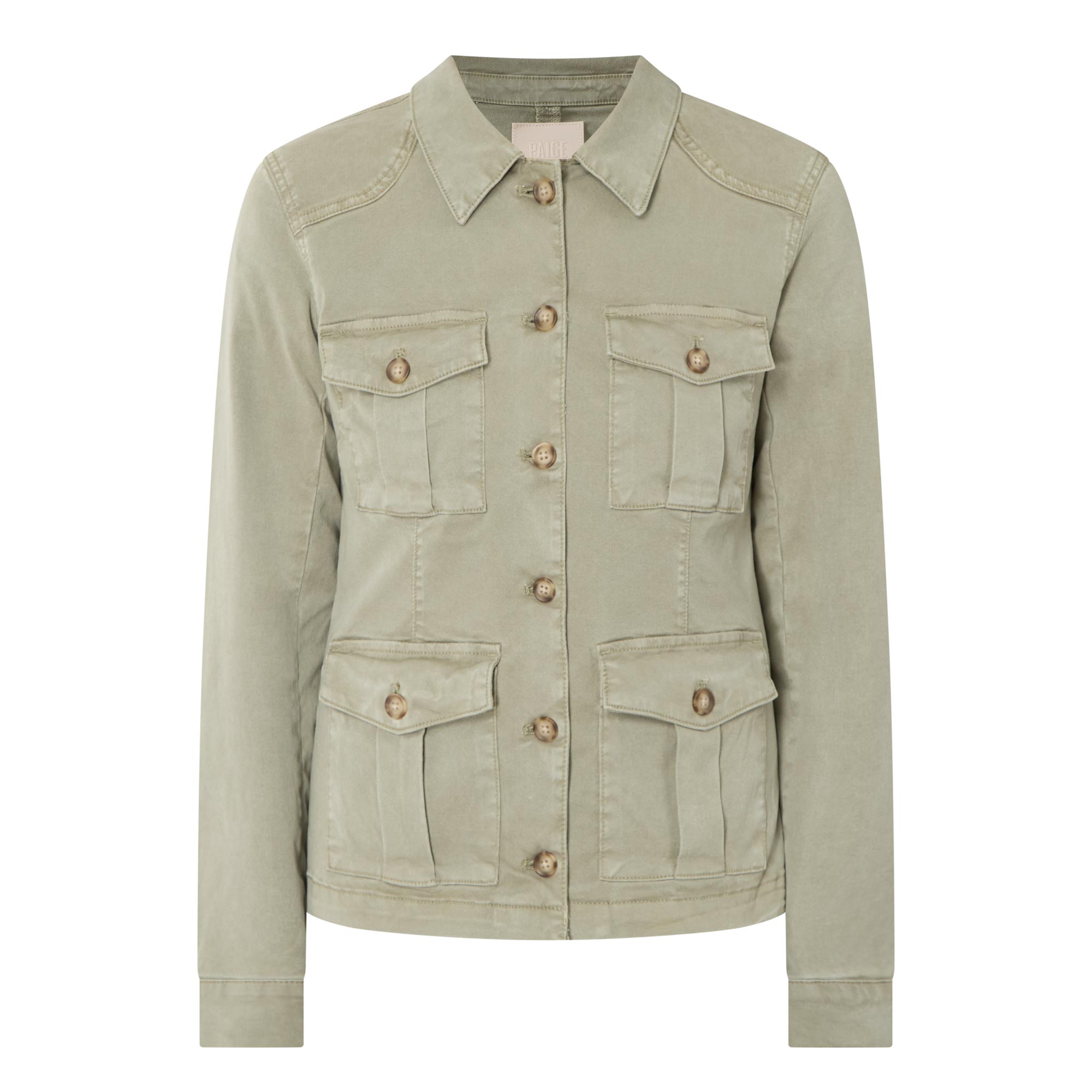 • Point collar, long sleeves, buttoned cuffs, four front flap pockets with button fastenings, front placket, straight hem, tonal stitching, washed finish