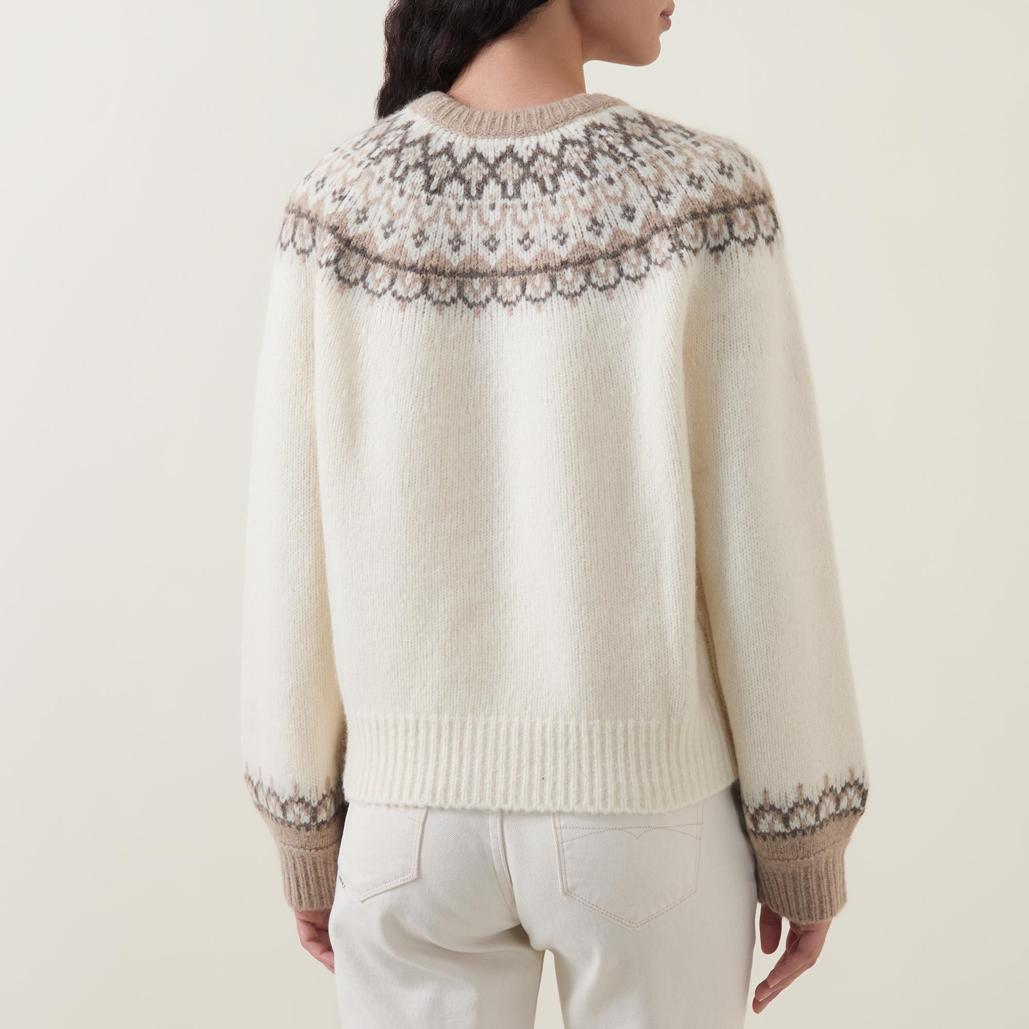 - Fair Isle jacquard design, crew neck, ribbed trims