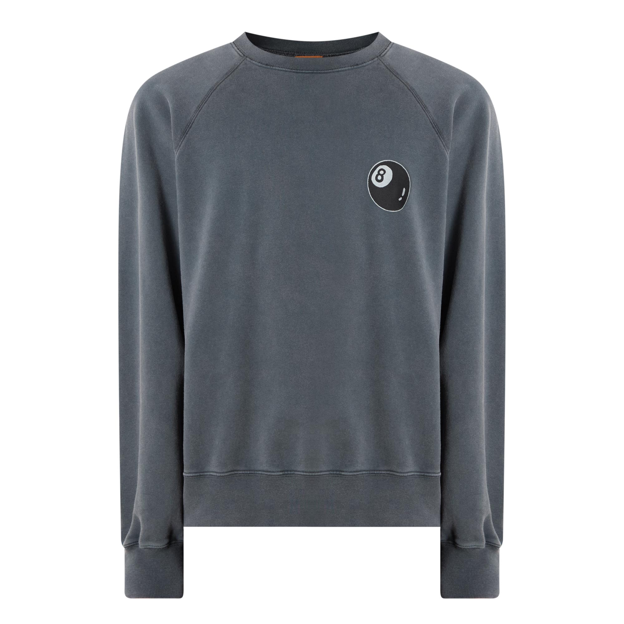 • Round neckline, long raglan sleeves, ribbed trims, brushed interior, print at chest and back, logo details, garment dye with fade out wash