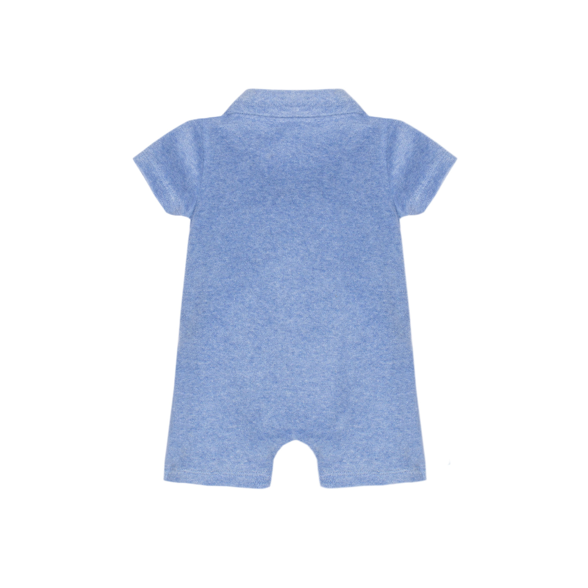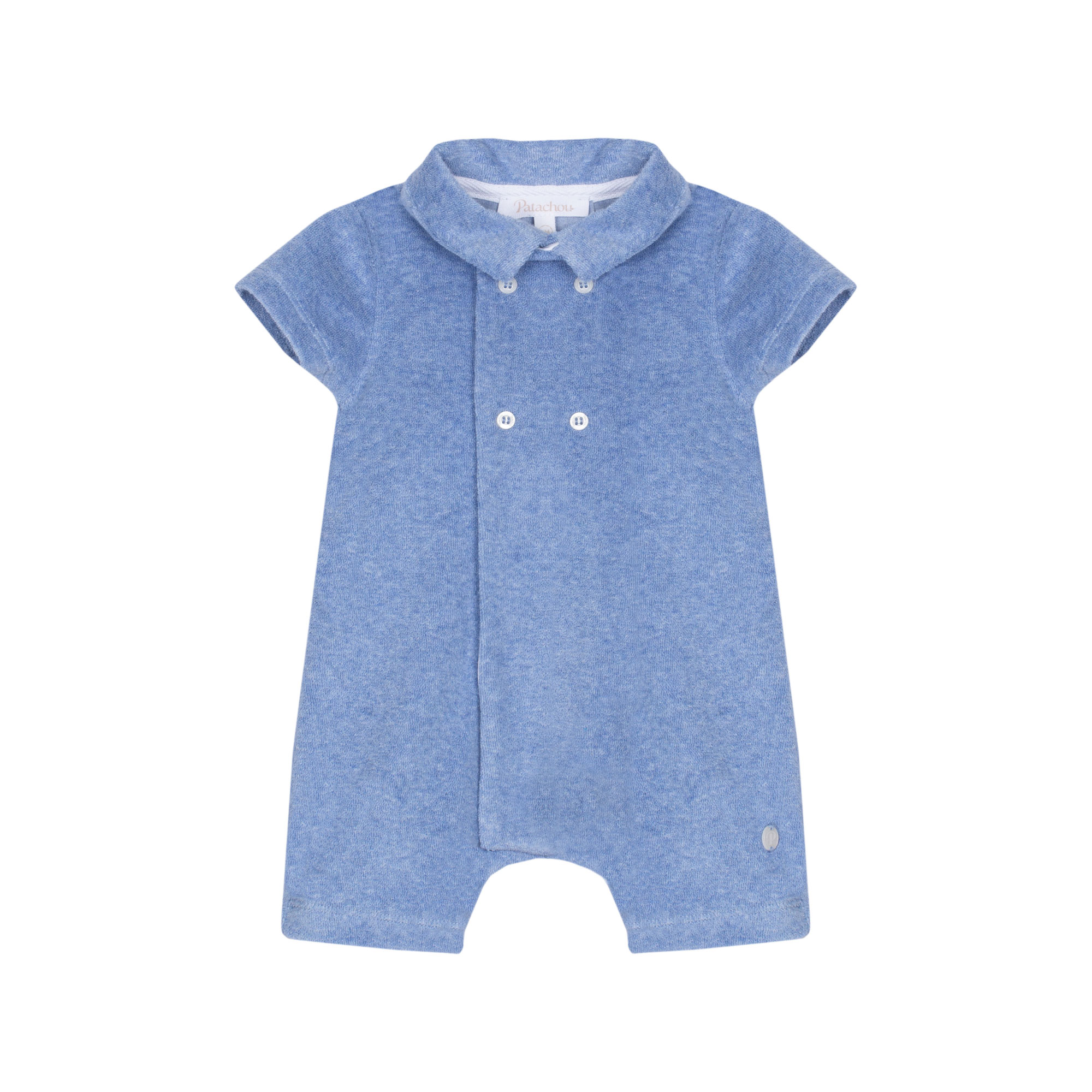 - Romper style, nautical-inspired, jersey piquet and poplin fabric, classic collar, double-breasted opening, short sleeves