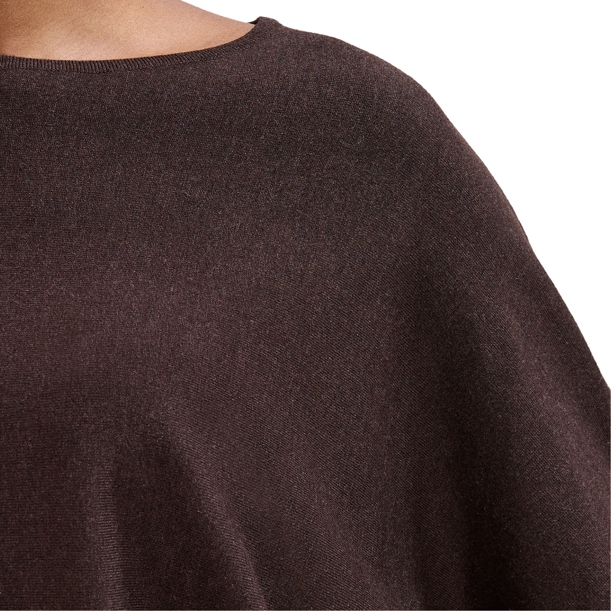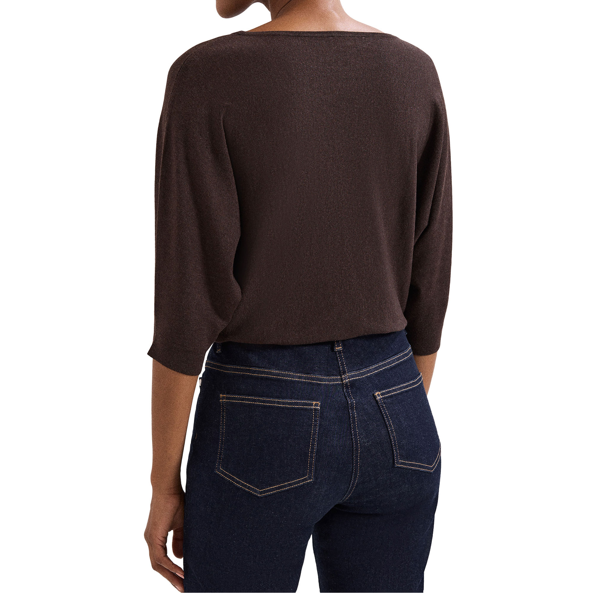 - Round neckline, three-quarter-length batwing sleeves, ribbed cuffs and hemline, knit structure
