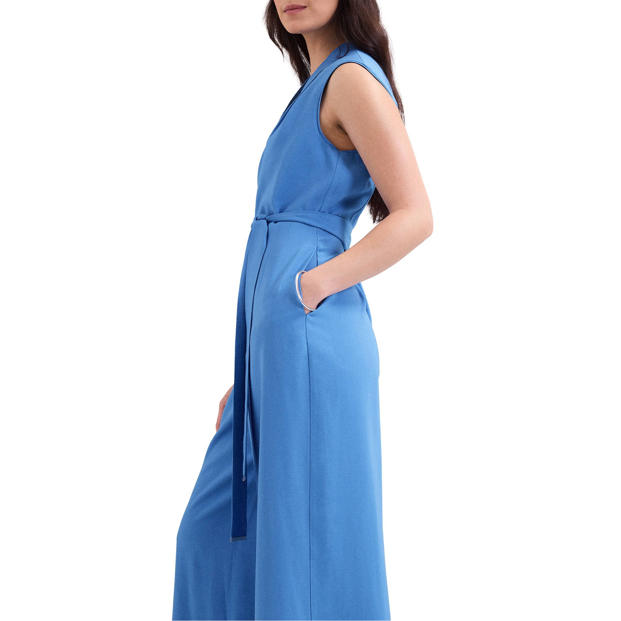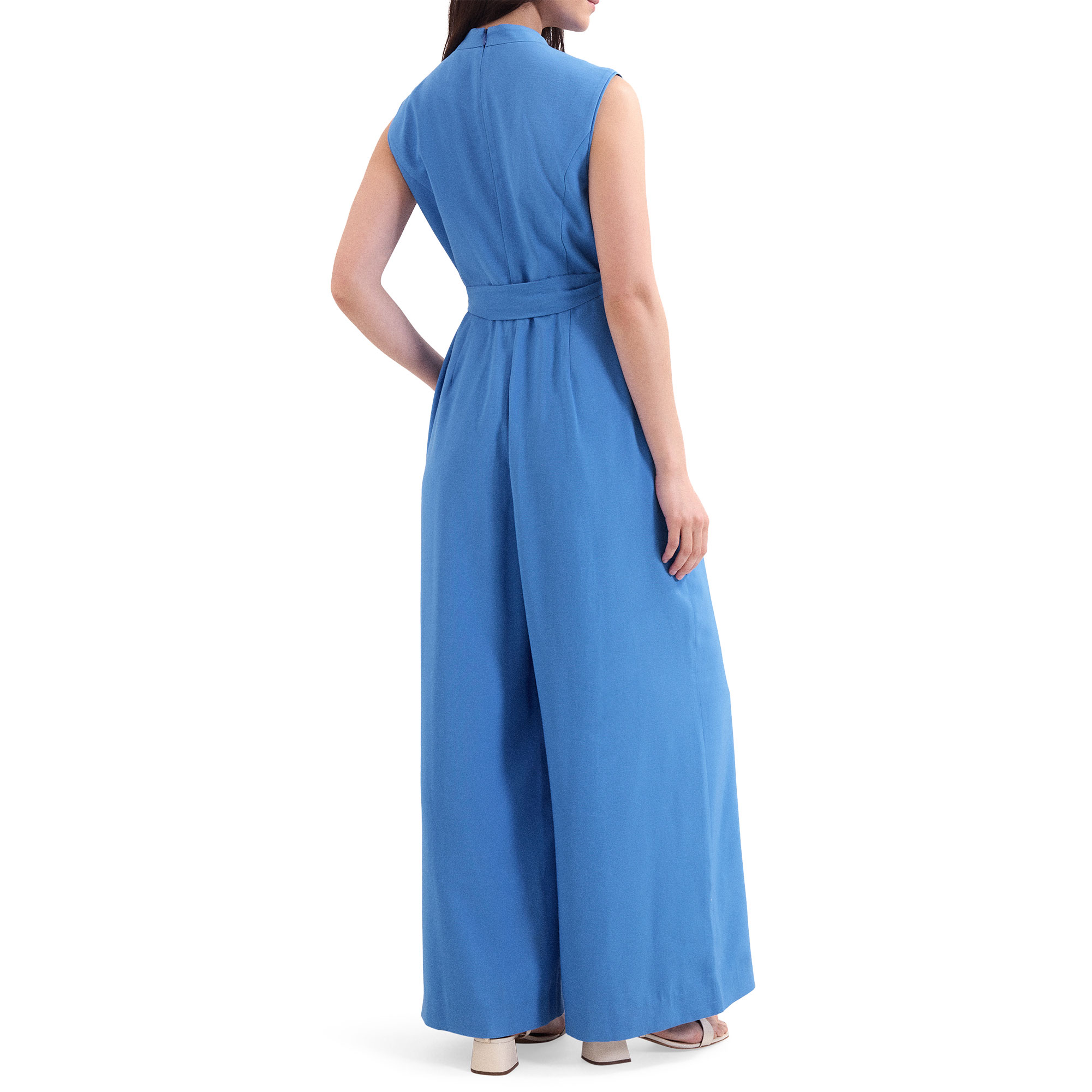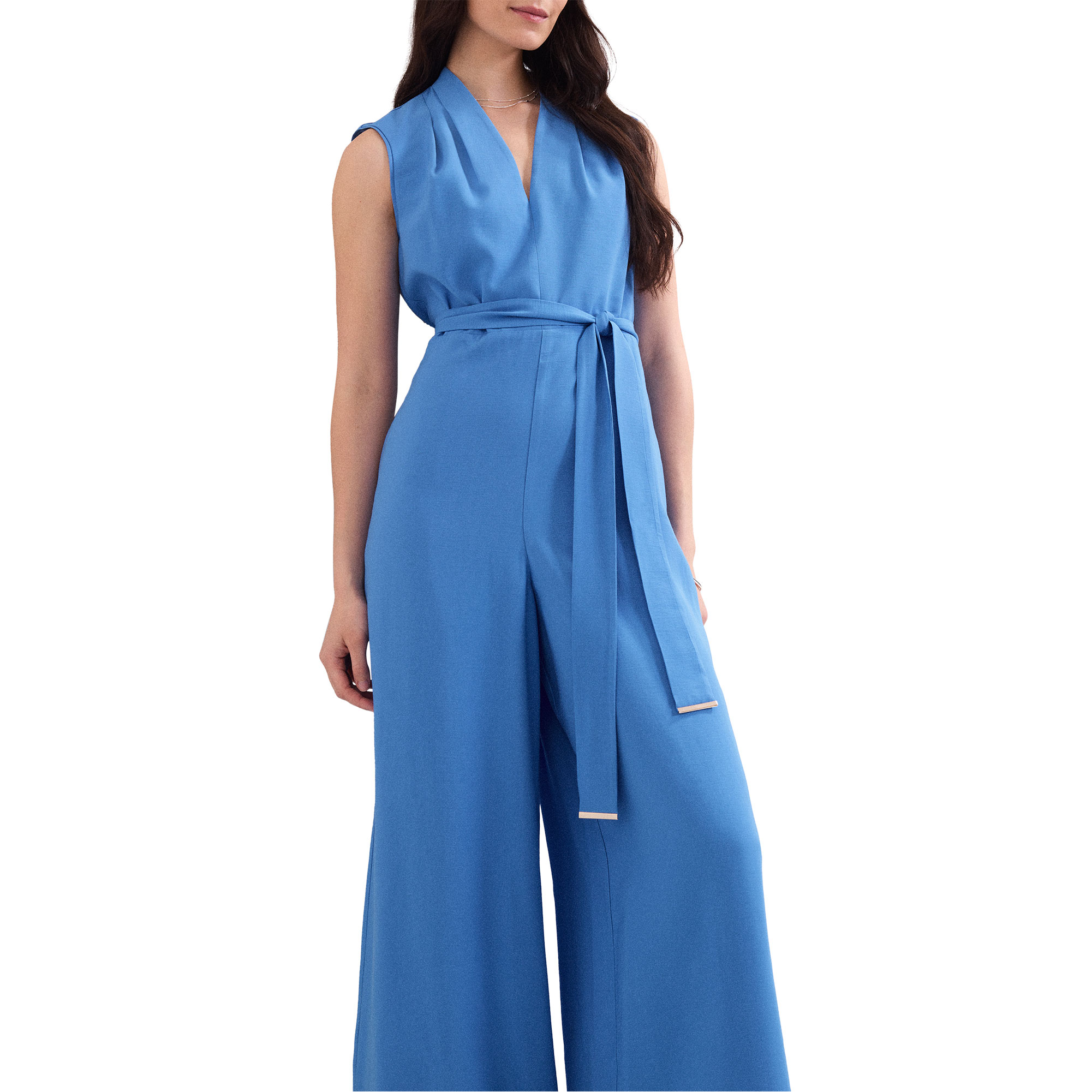 • Concealed zip fastening, sleeveless, wide-leg silhouette, ruching, matching tie belt
