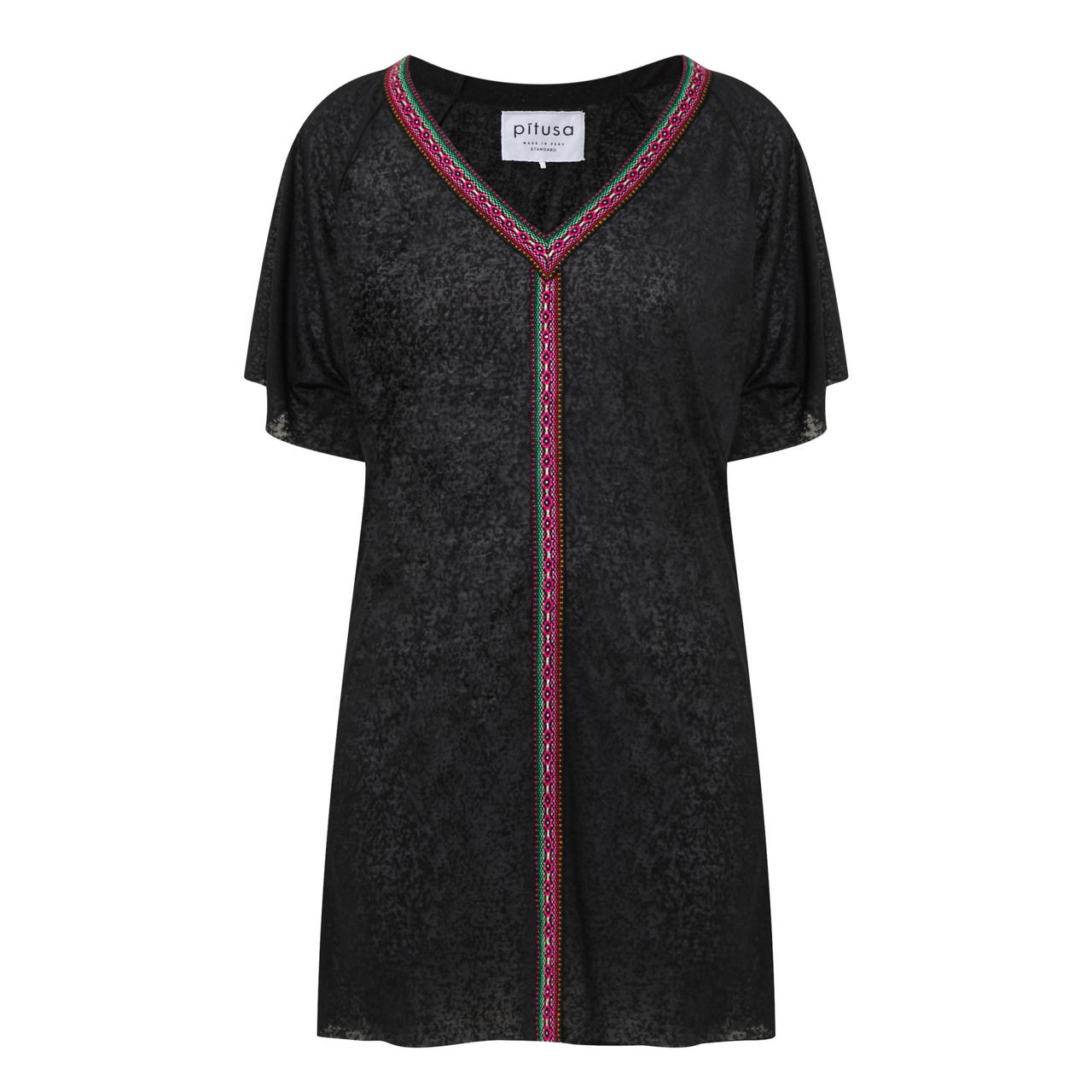 - V-neckline, short sleeves, embroidered trim, slip-on style, marled finish