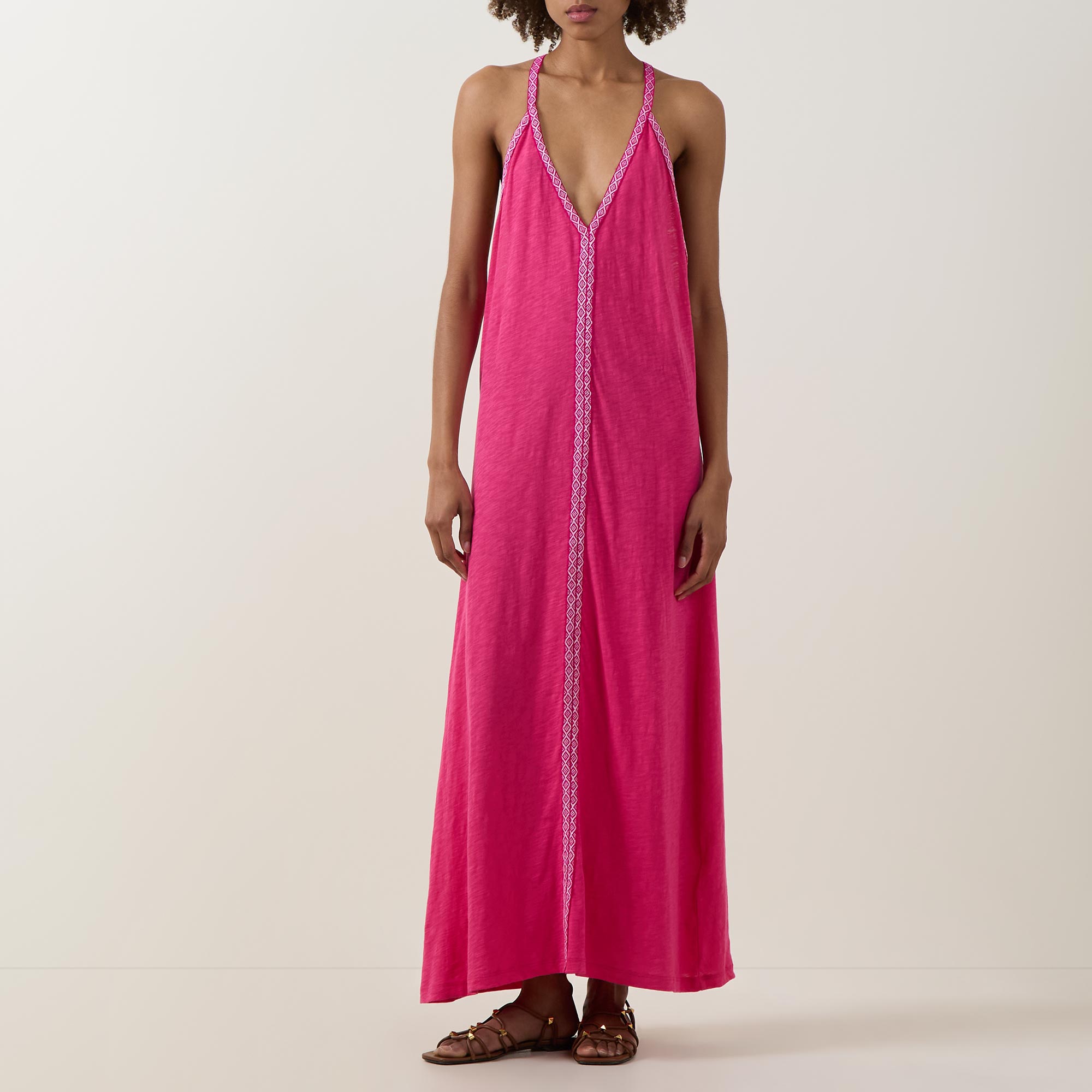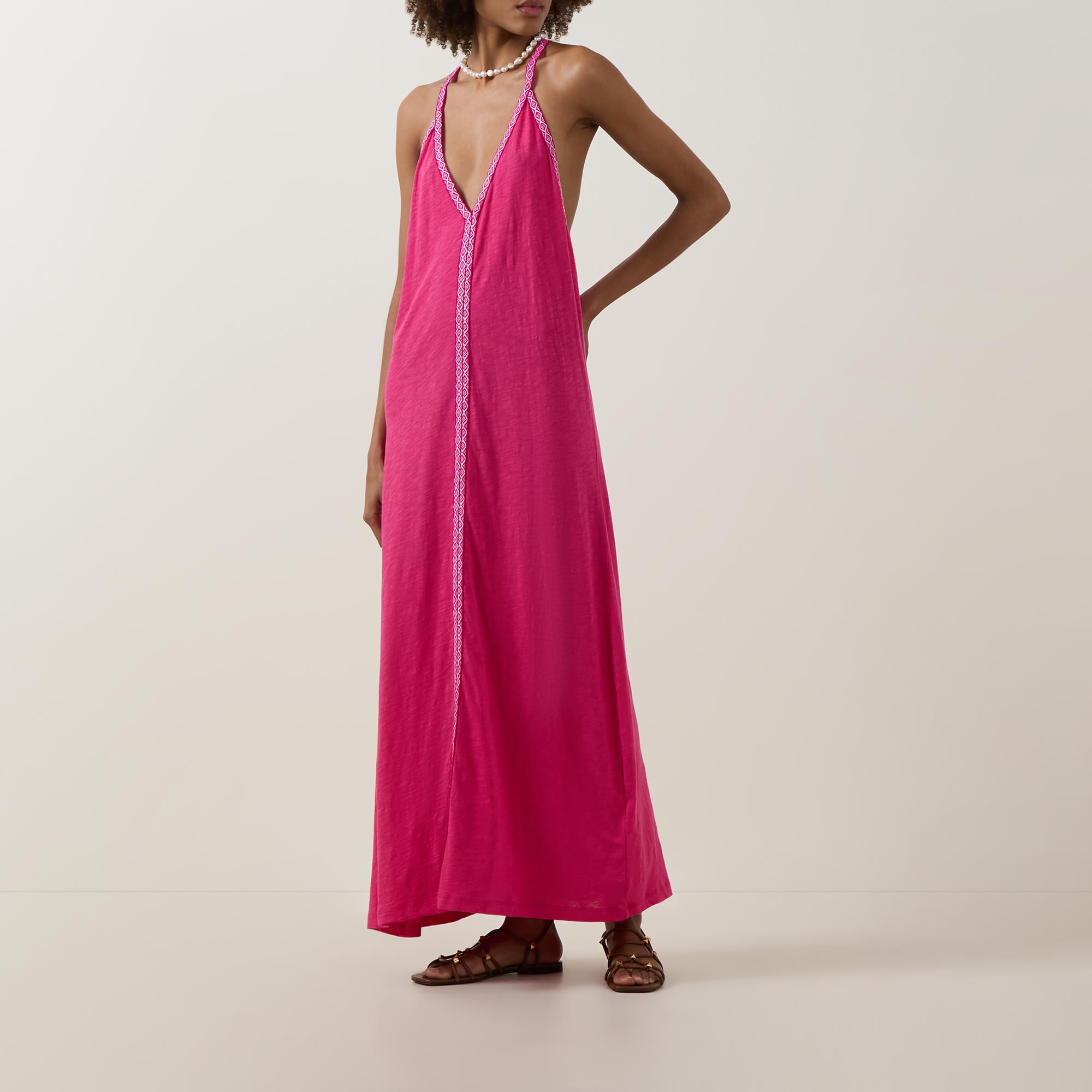 - Plunge neckline, sleeveless, maxi length, braided details and straps