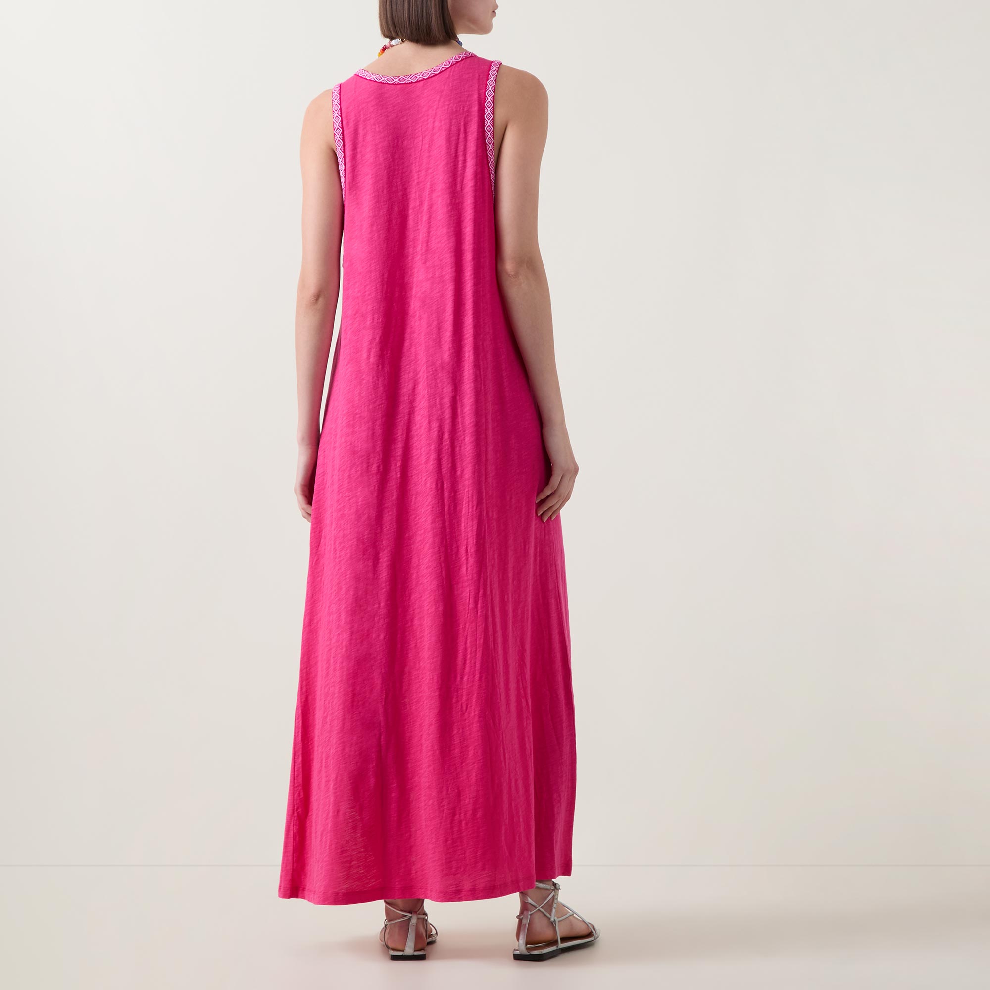 - U-shaped neckline, sleeveless design, side split, tassel detailing, straight hem, trim detailing, lightweight, breathable