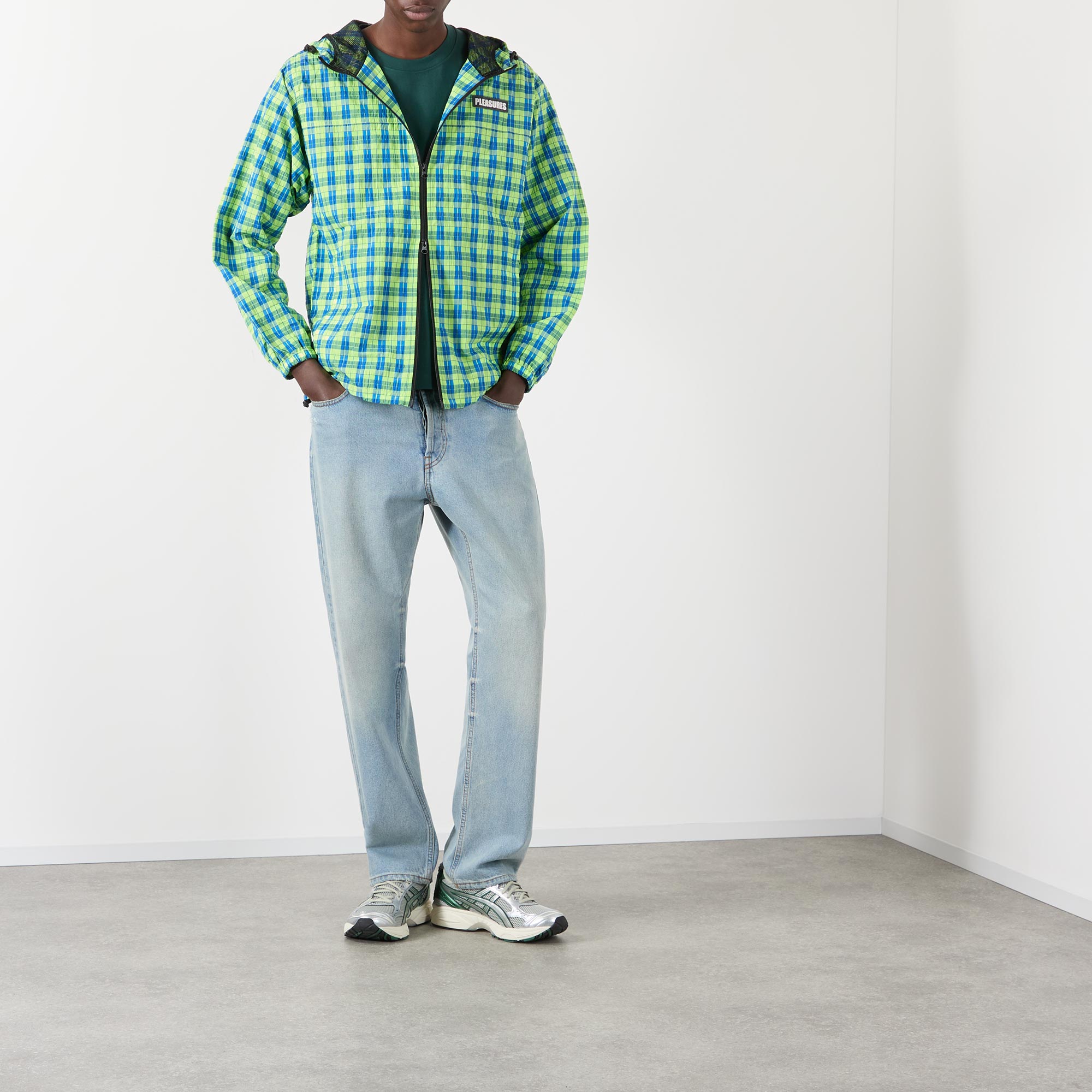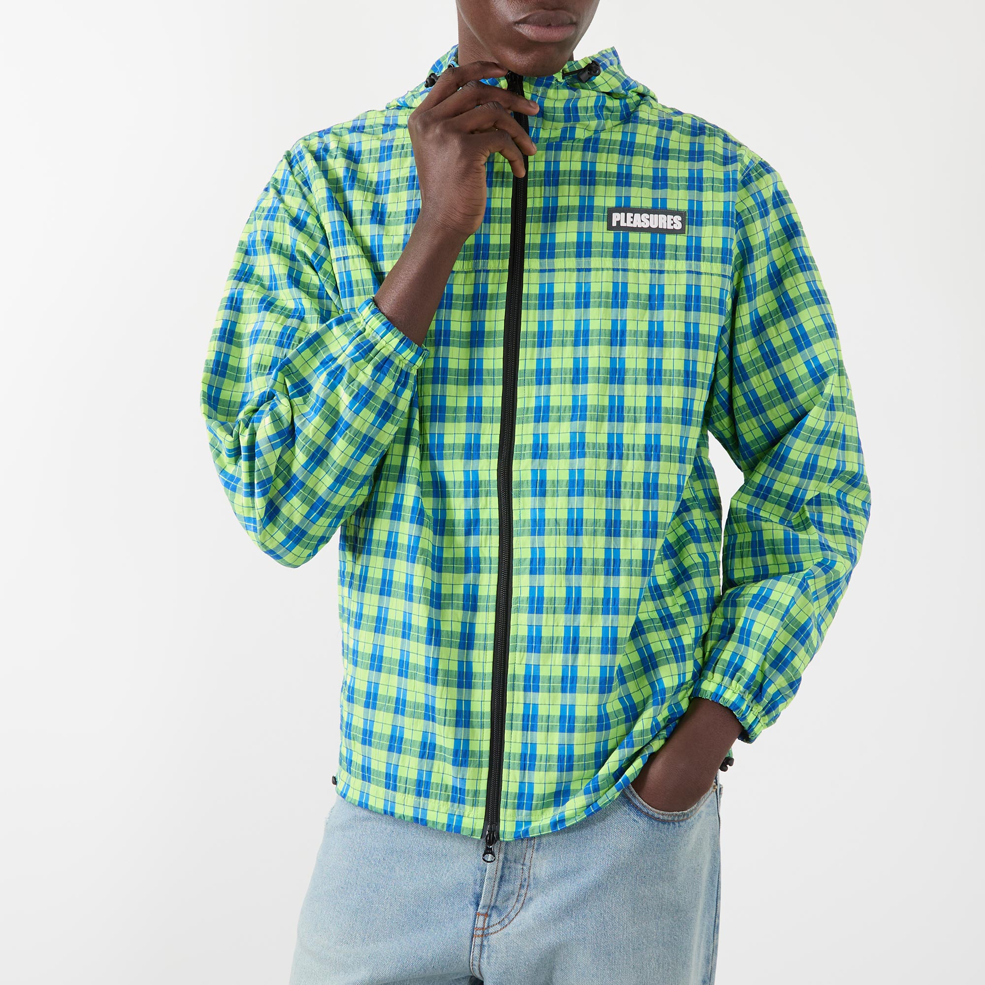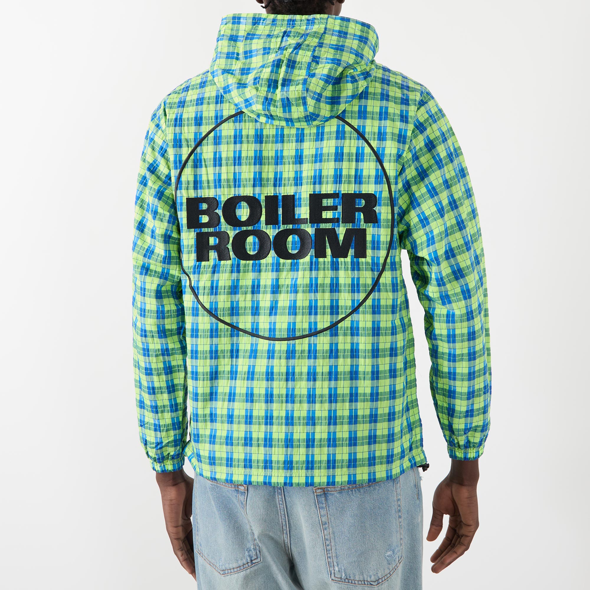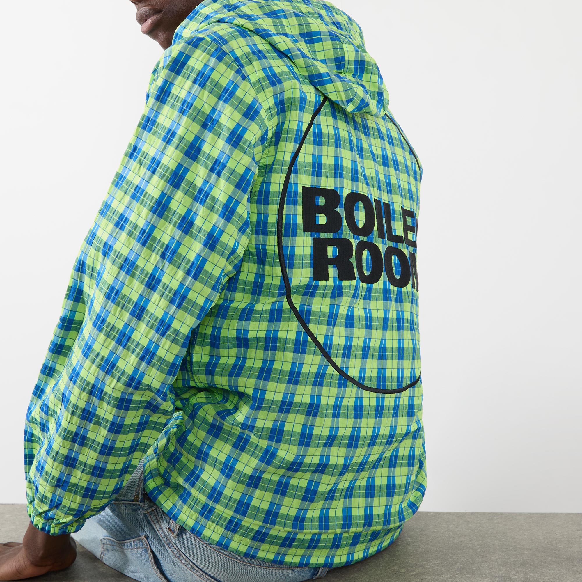 - Adjustable drawcord hood, dropped shoulders, long sleeves, elasticated cuffs, full zip-through fastening, front logo patch, elasticated cuffs, check pattern, rear Boiler Room graphic, lightweight