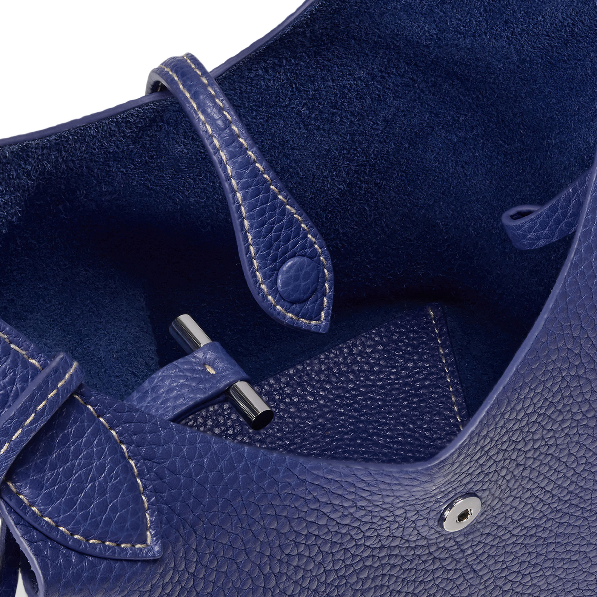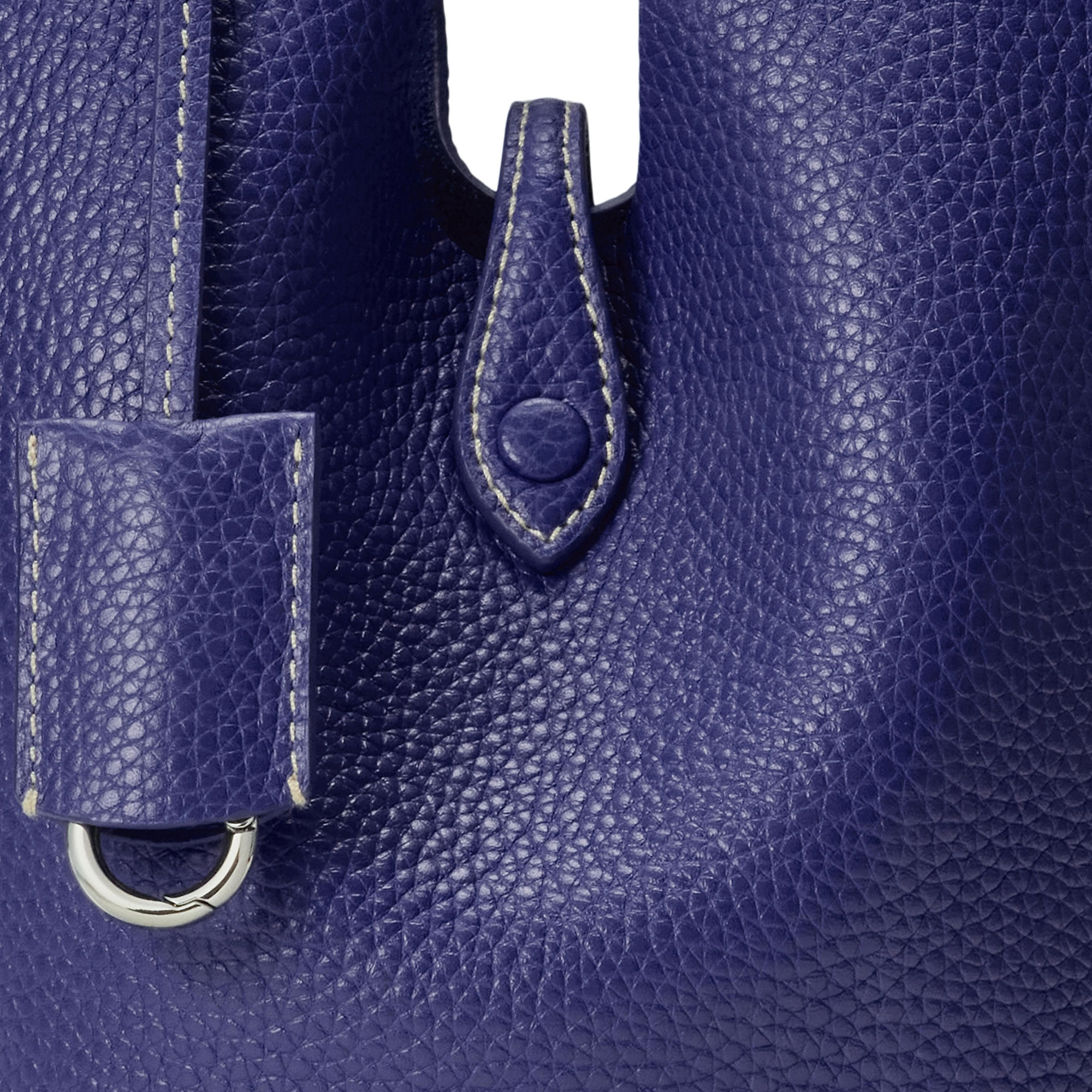 - Polo Play collection piece, Italian full-grain leather, pebbled finish, tote style, removable crossbody strap, two leather shoulder straps, bombé detailing, external snapped leather tab at the top opening, embossed signature Pony logo, detachable leather clochette, signature branding, engraved hardware, square envelope folded base, Polo Play dust bag