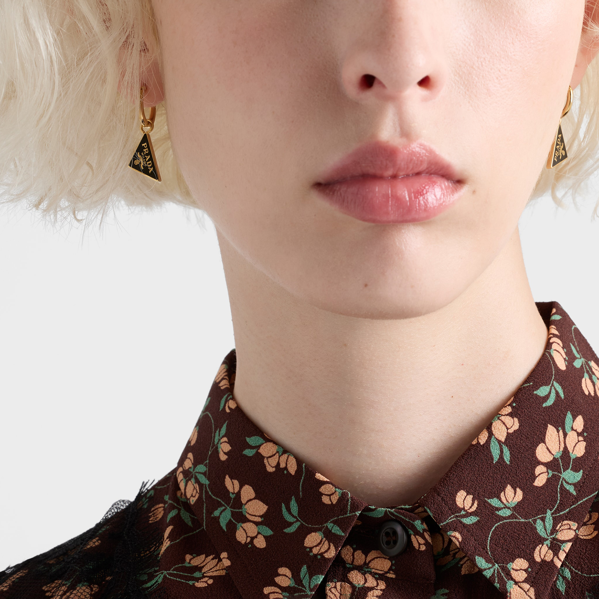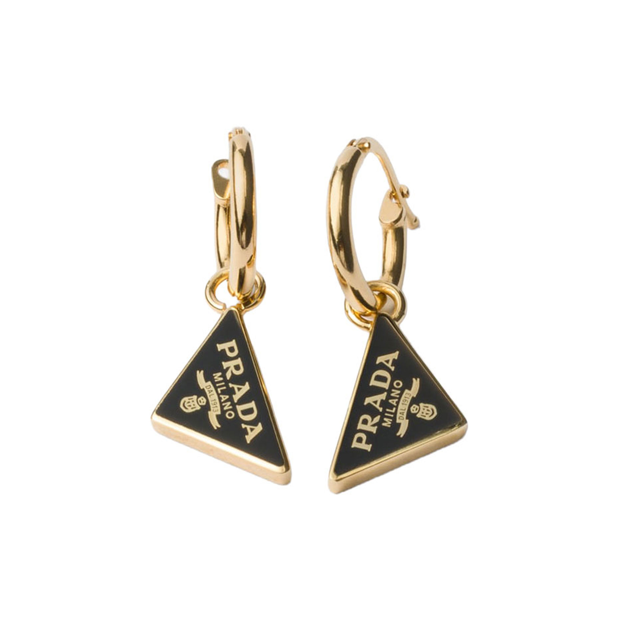 PRADA Enamelled Triangle Logo Hoop Earrings