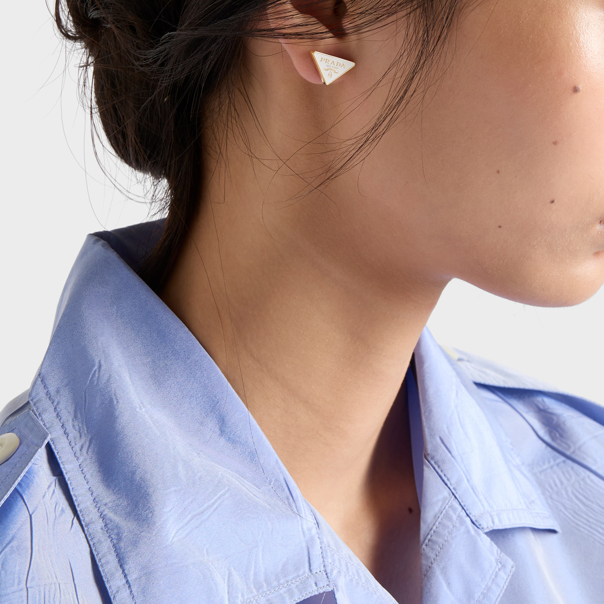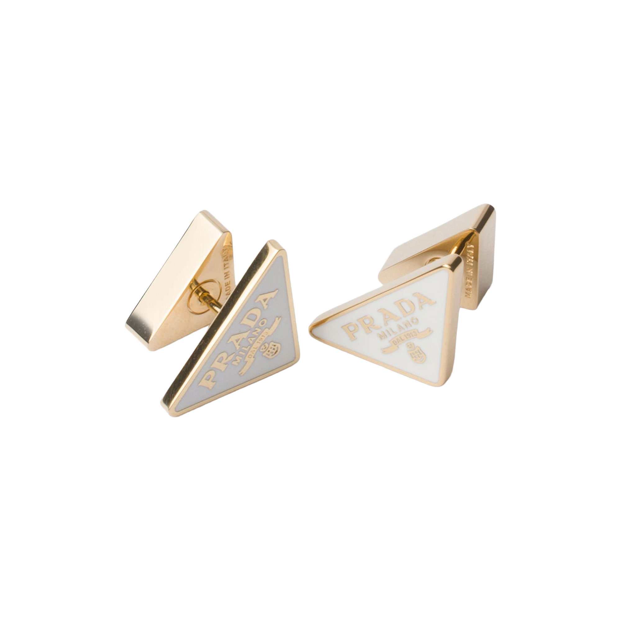 PRADA Enamelled Triangle Logo Stud Earrings