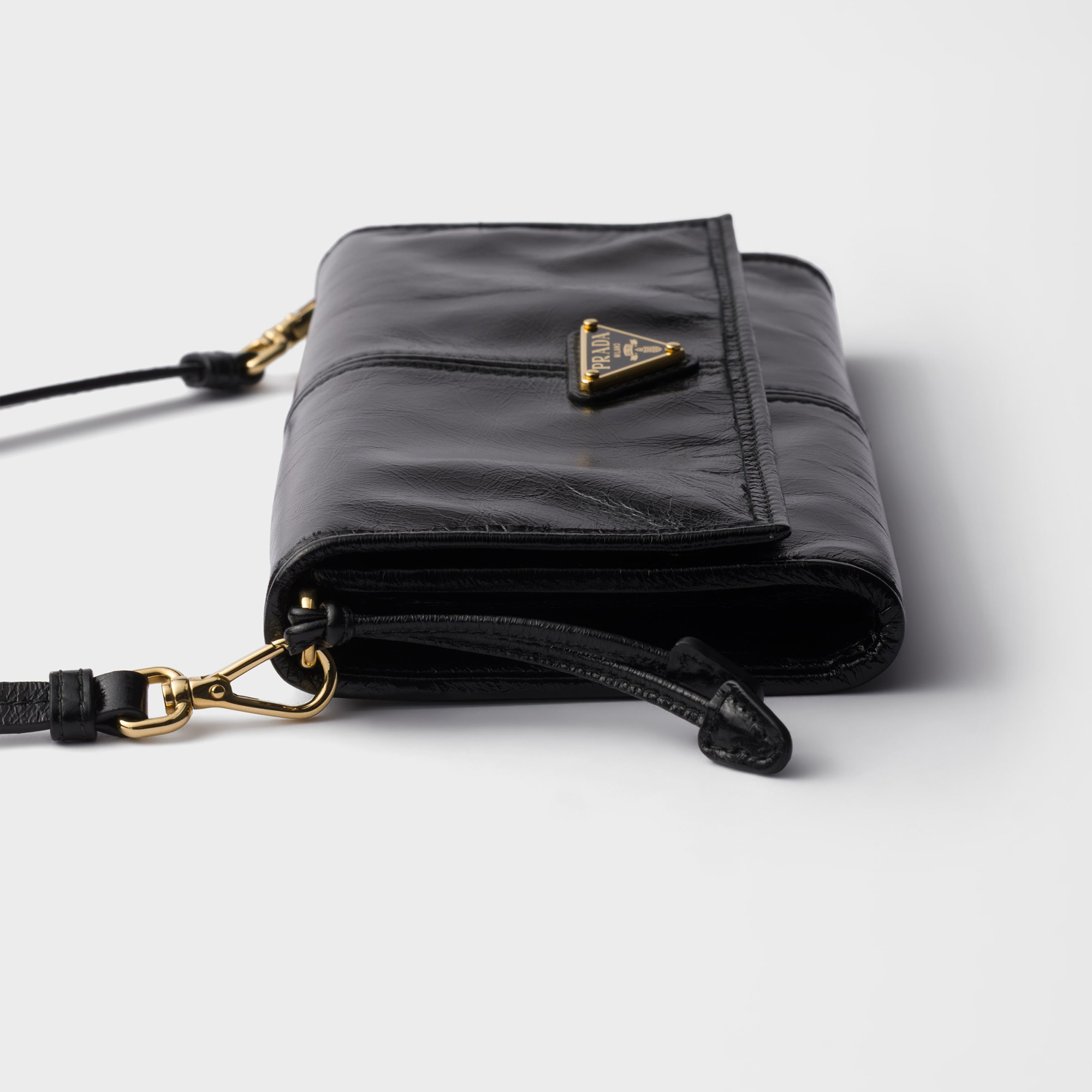 - Snap closure, enamelled metal triangle logo detail, adjustable detachable leather shoulder strap