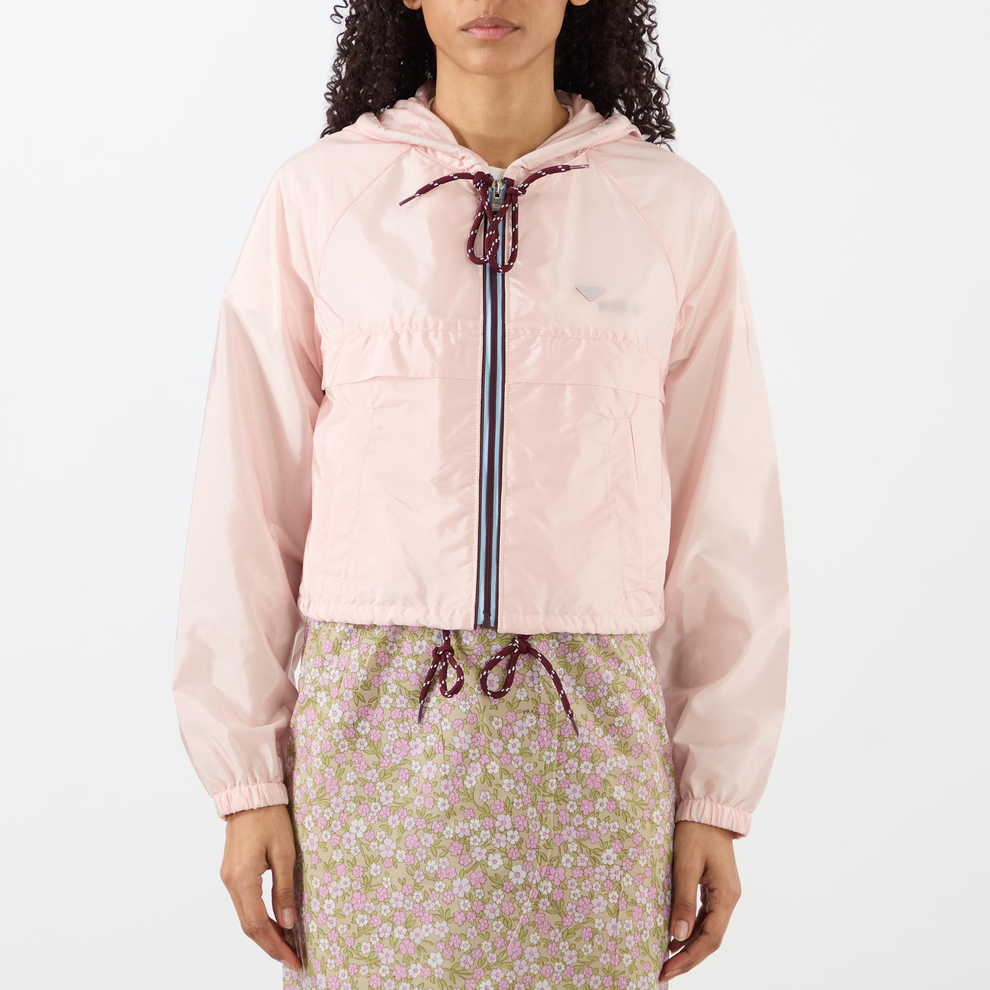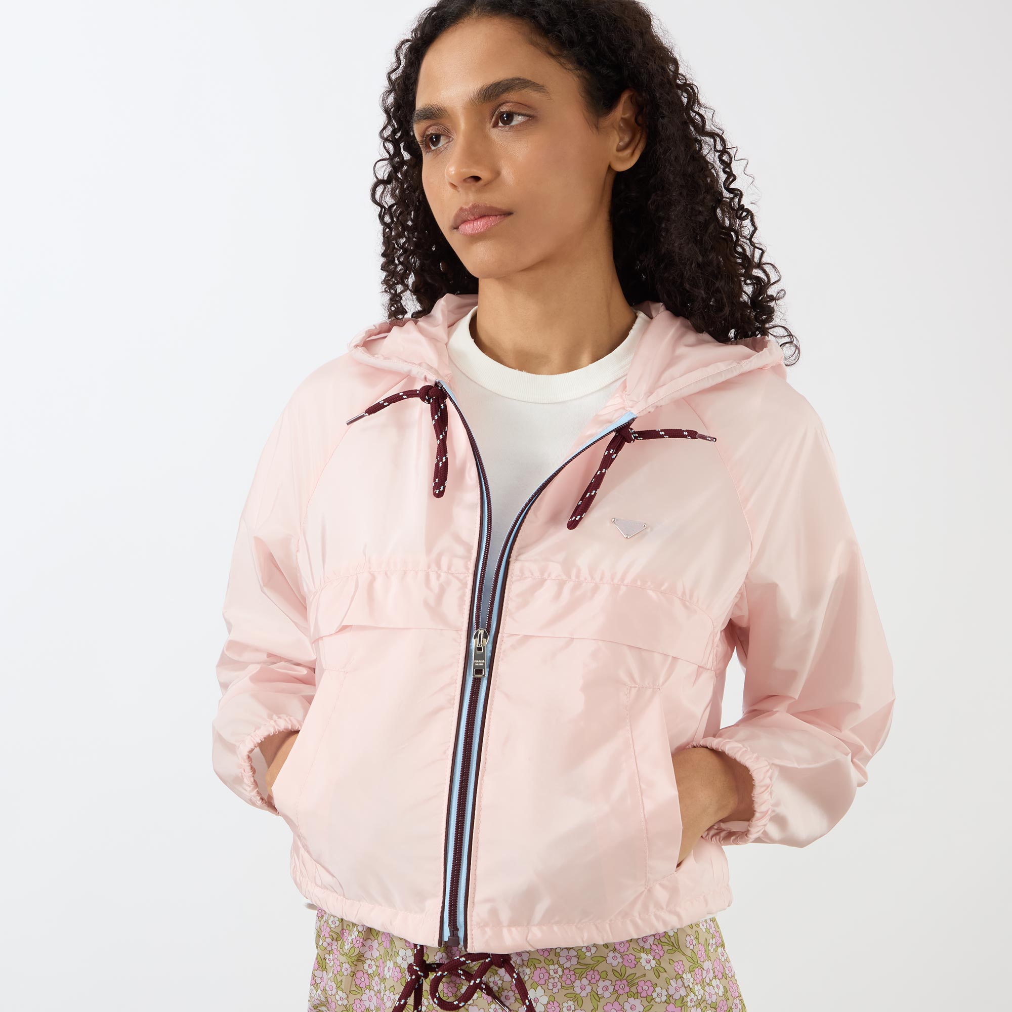 - Adjustable drawstring hood, long sleeves, full zip-through fastening, two side in-seam pockets, adjustable drawstring hemline, elasticated cuffs, signature triangle logo plaque to the front, re-nylon fabric