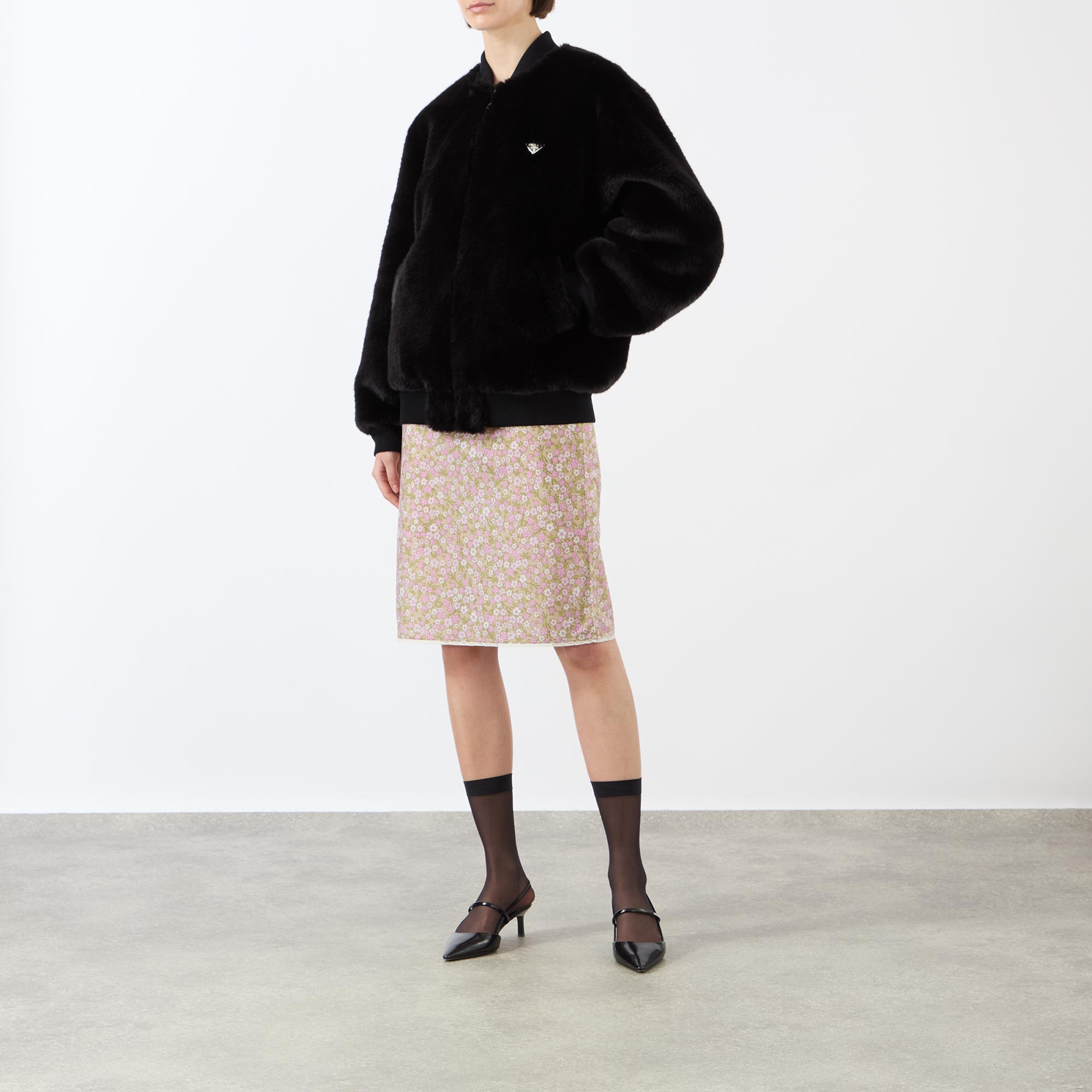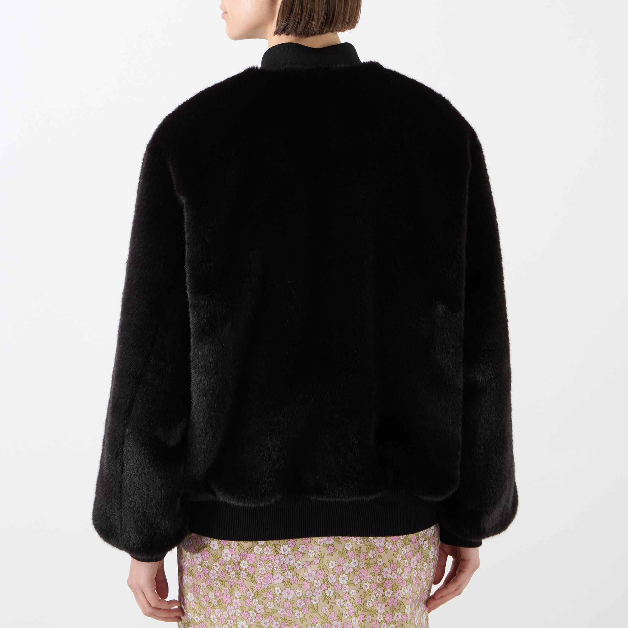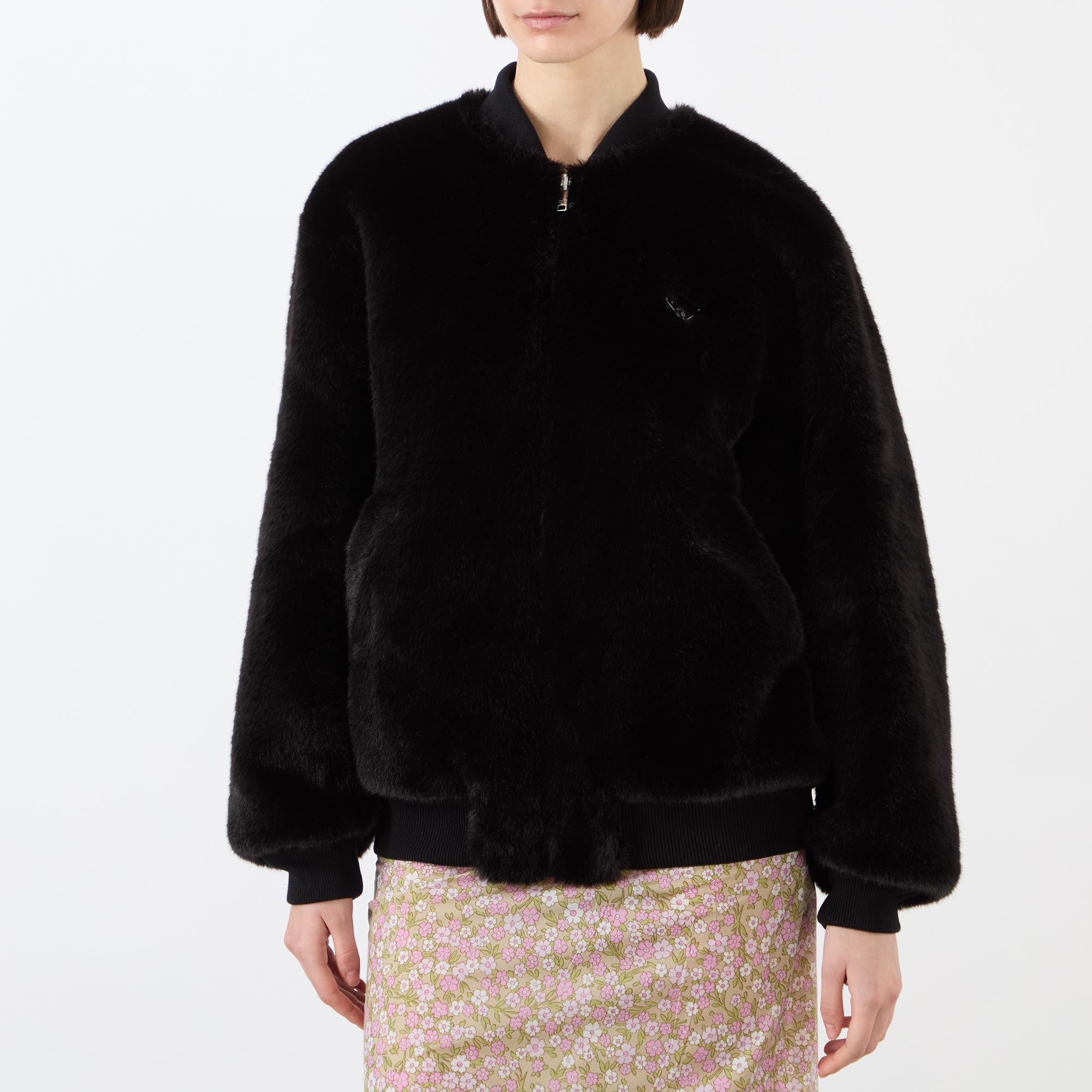 - Bomber collar, long sleeves, dropped shoulders, full zip-through fastening, two side in-seam pockets, signature triangle logo plaque, elasticated hem and cuffs, soft shearling finish