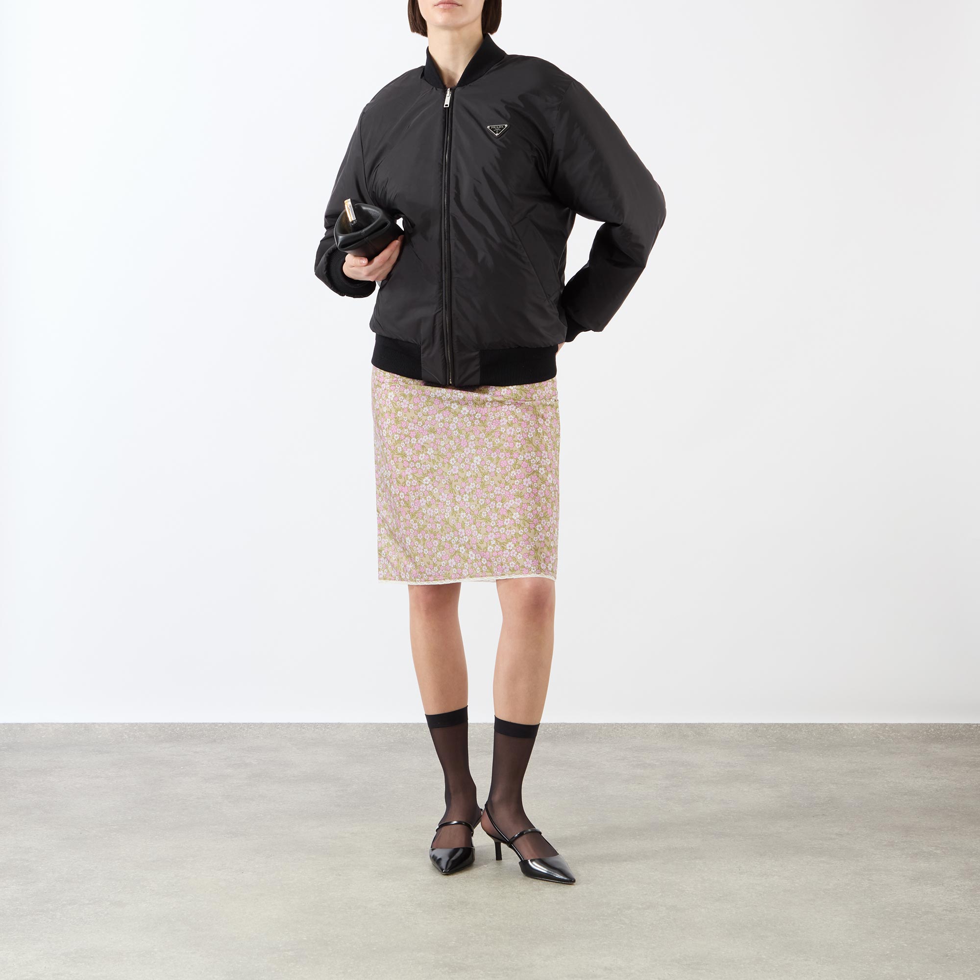 The new SS26 line from Prada marks a shift away from the strict power dressing the brand is known for, in favour of more relaxed, fluid silhouettes. This coat, for example, is cut to a relaxed fit with slouchy, dropped shoulders. Designed with a bomber collar, it features two practical in-seam pockets and is finished in soft shearling for warmth, while the label’s signature triangle logo plaque adorns the chest.