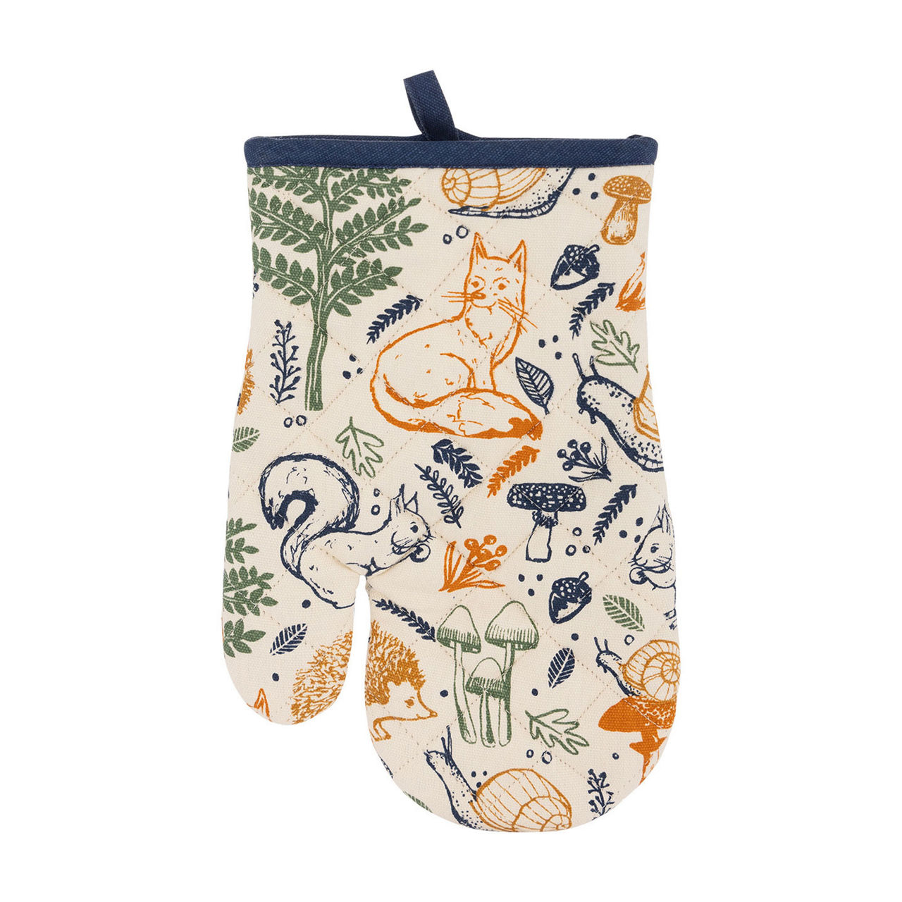 The Price & Kensington Woodland Single Oven Glove is the perfect addition to your kitchen for a rustic, nature inspired feel. Featuring novelty woodland illustrations in a hand drawn style, our glove is designed to protect hands from burns when cooking. Printed onto 100% cotton with a comfortable fit for ease when handling hot pots and pans, this single oven glove is a must have kitchen companion and can be machine washed.