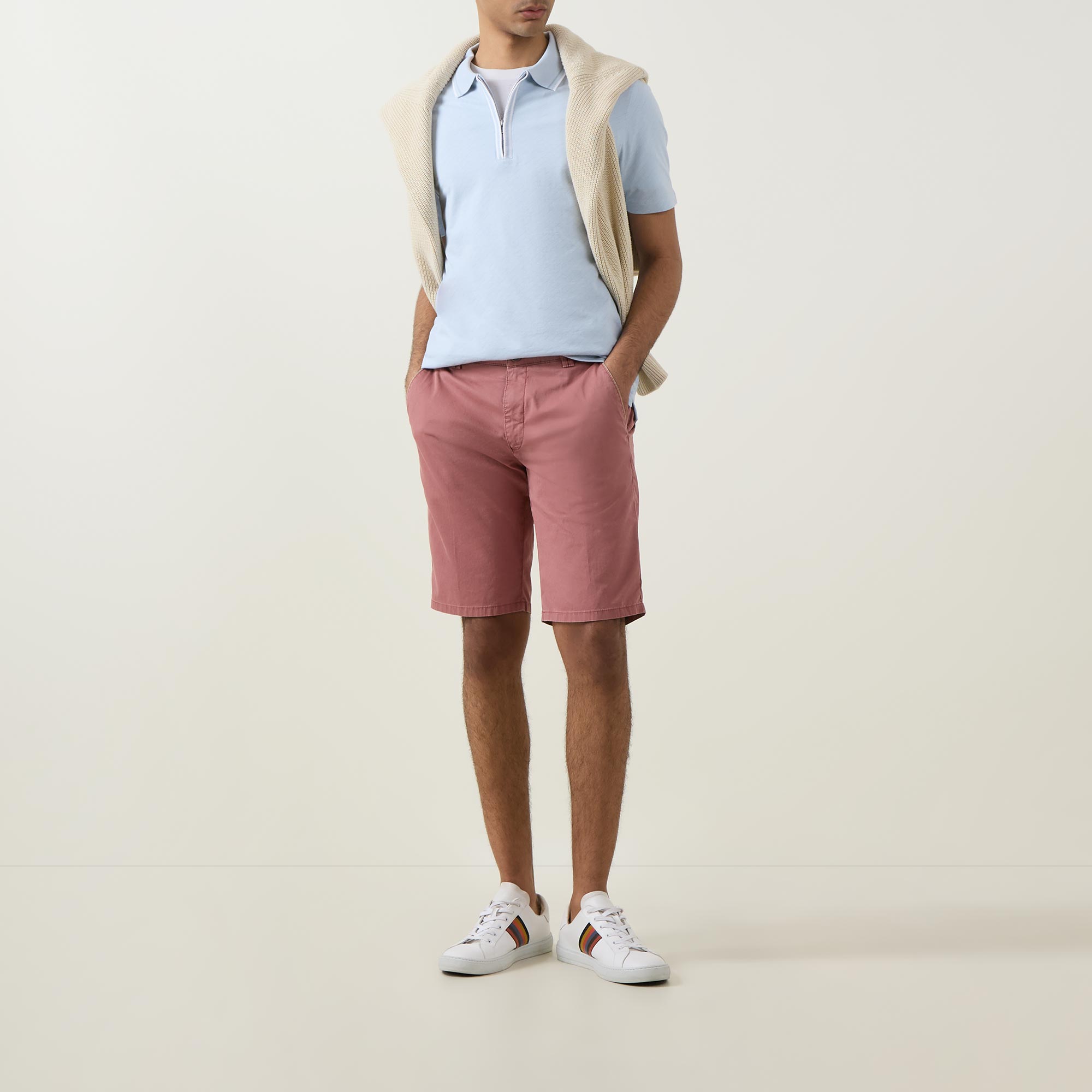 - Polo collar, short sleeves, zip fastening, straight hemline