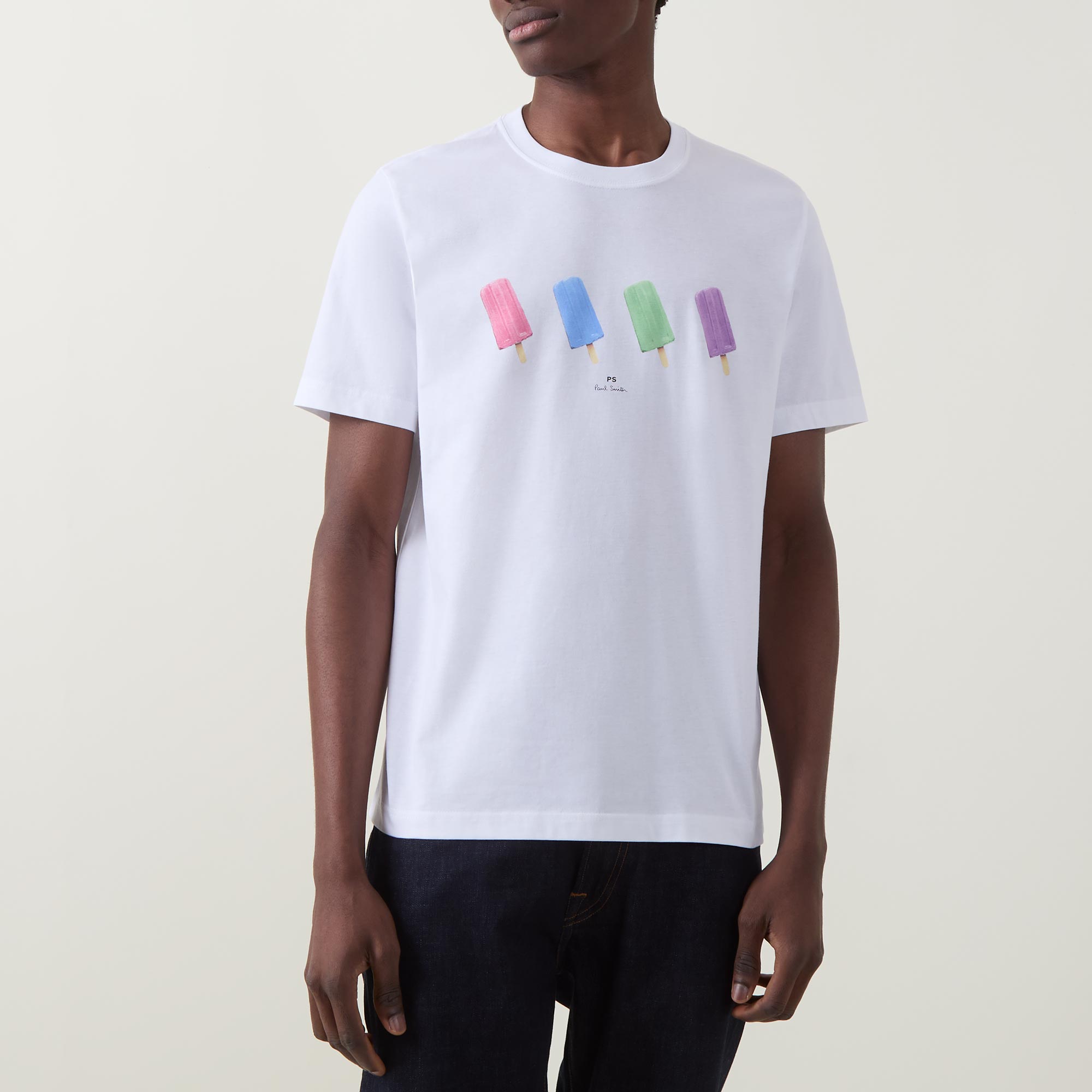 • Lolly print, round neck, short sleeves, straight hemline, logo detail