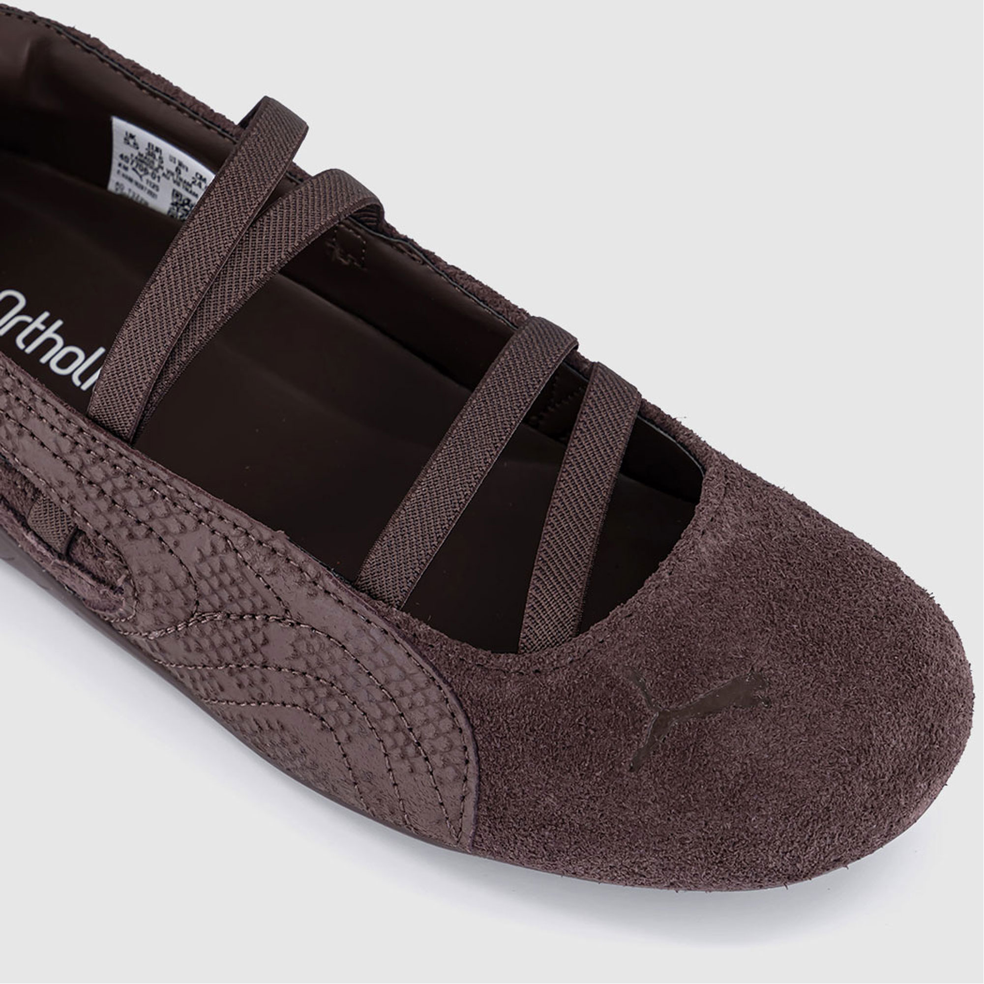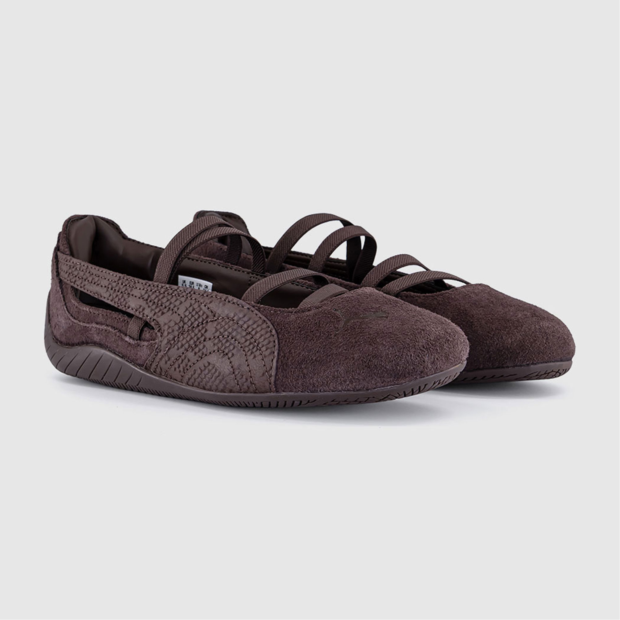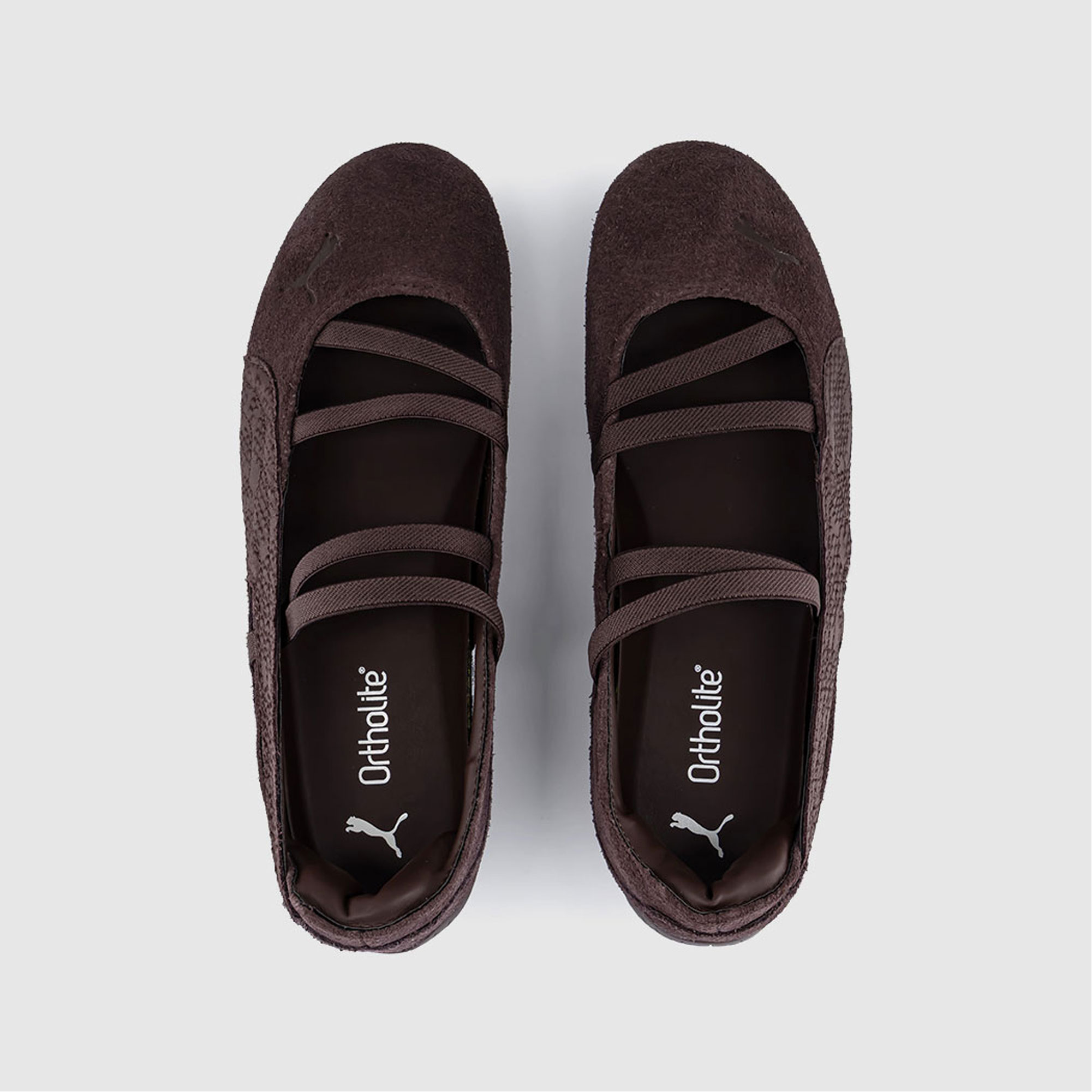 Step into the spotlight with the PUMA Speedcat Ballet, a bold blend of motorsport heritage and high-fashion flair. Originally designed for race car drivers, the Speedcat silhouette is known for its sleek, low-profile shape and agile comfort. This reimagined version takes a trend led turn with a chocolate brown upper crafted from premium pony hair, delivering texture, attitude and trend-led appeal. A true statement piece, it’s perfect for fashion lovers who embrace individuality and want to add a playful yet luxe twist to their everyday look, a perfect transitional piece.