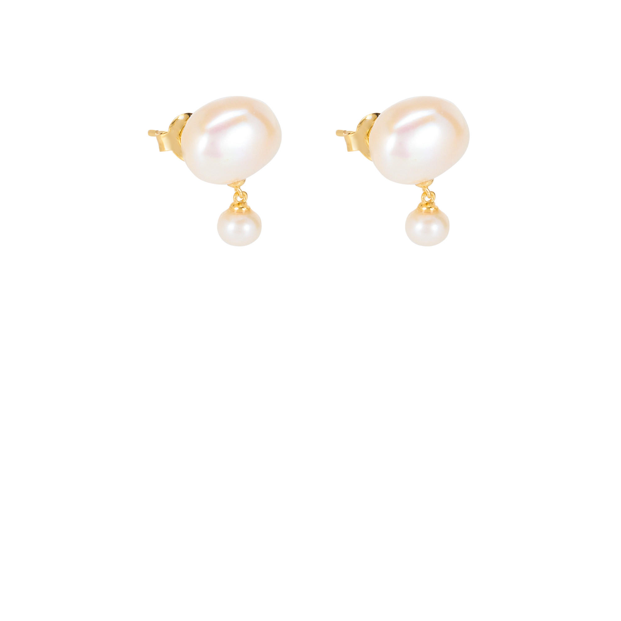 - Drop-stud style, post and pushback fastening, two freshwater pearl details, gold-plated finish